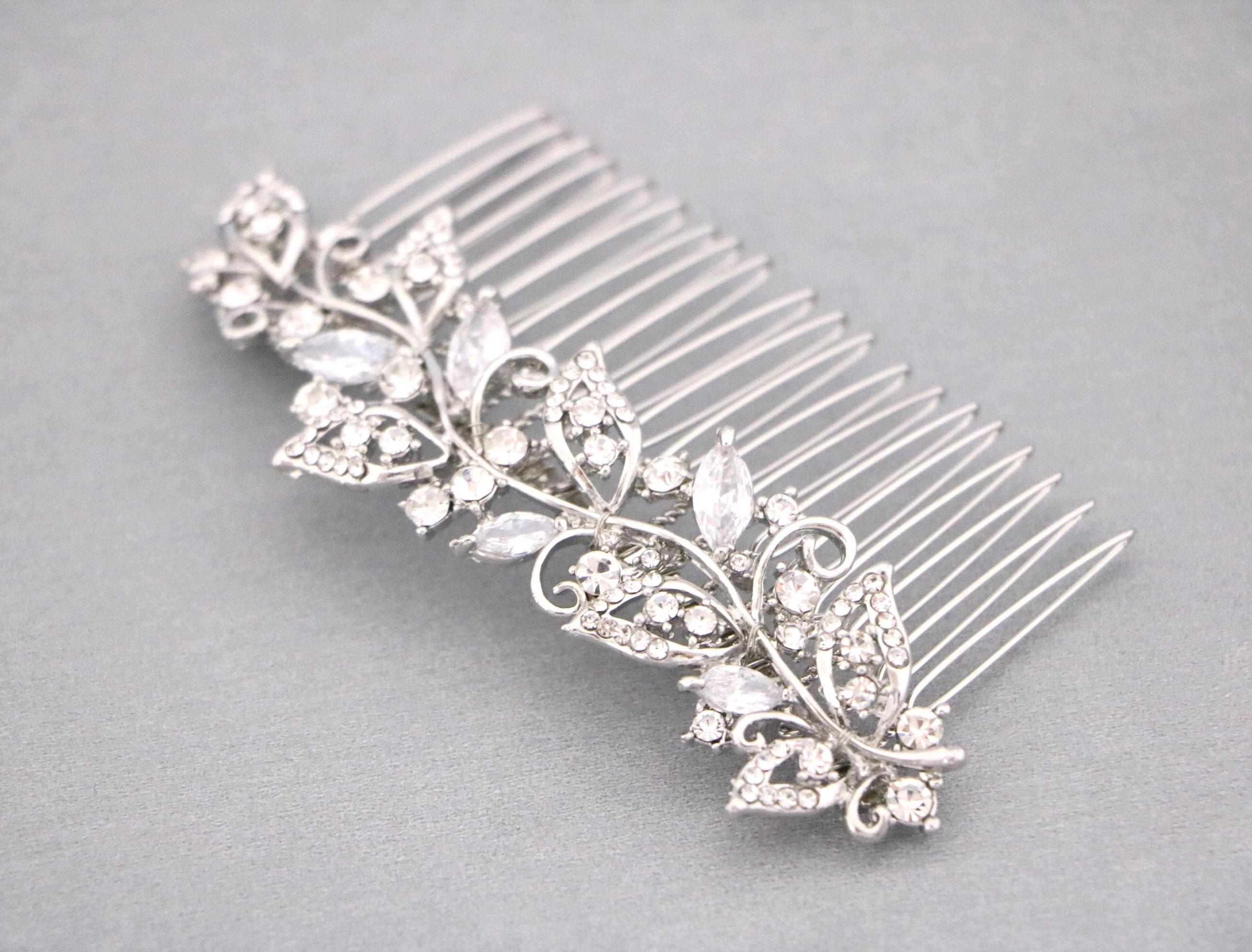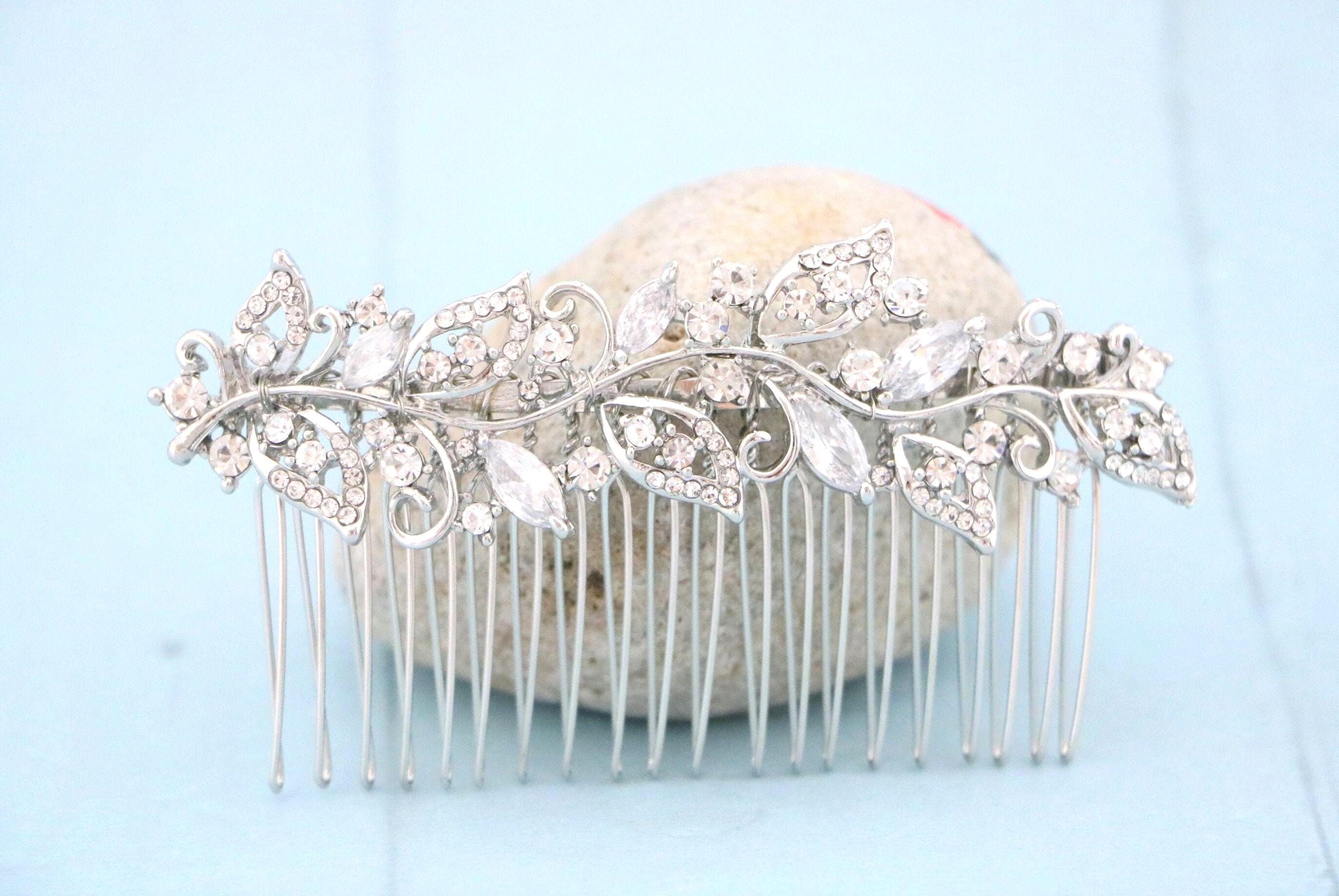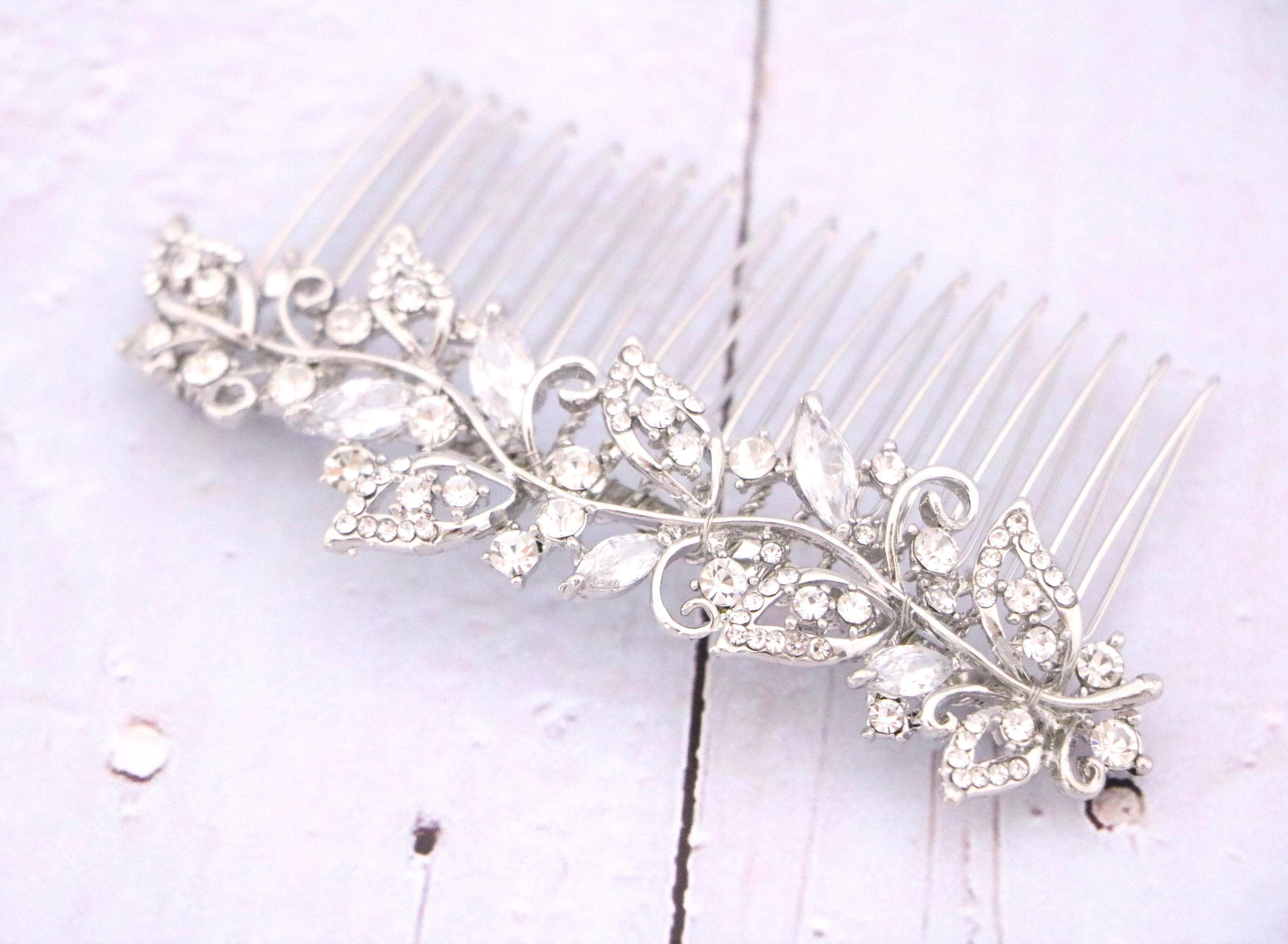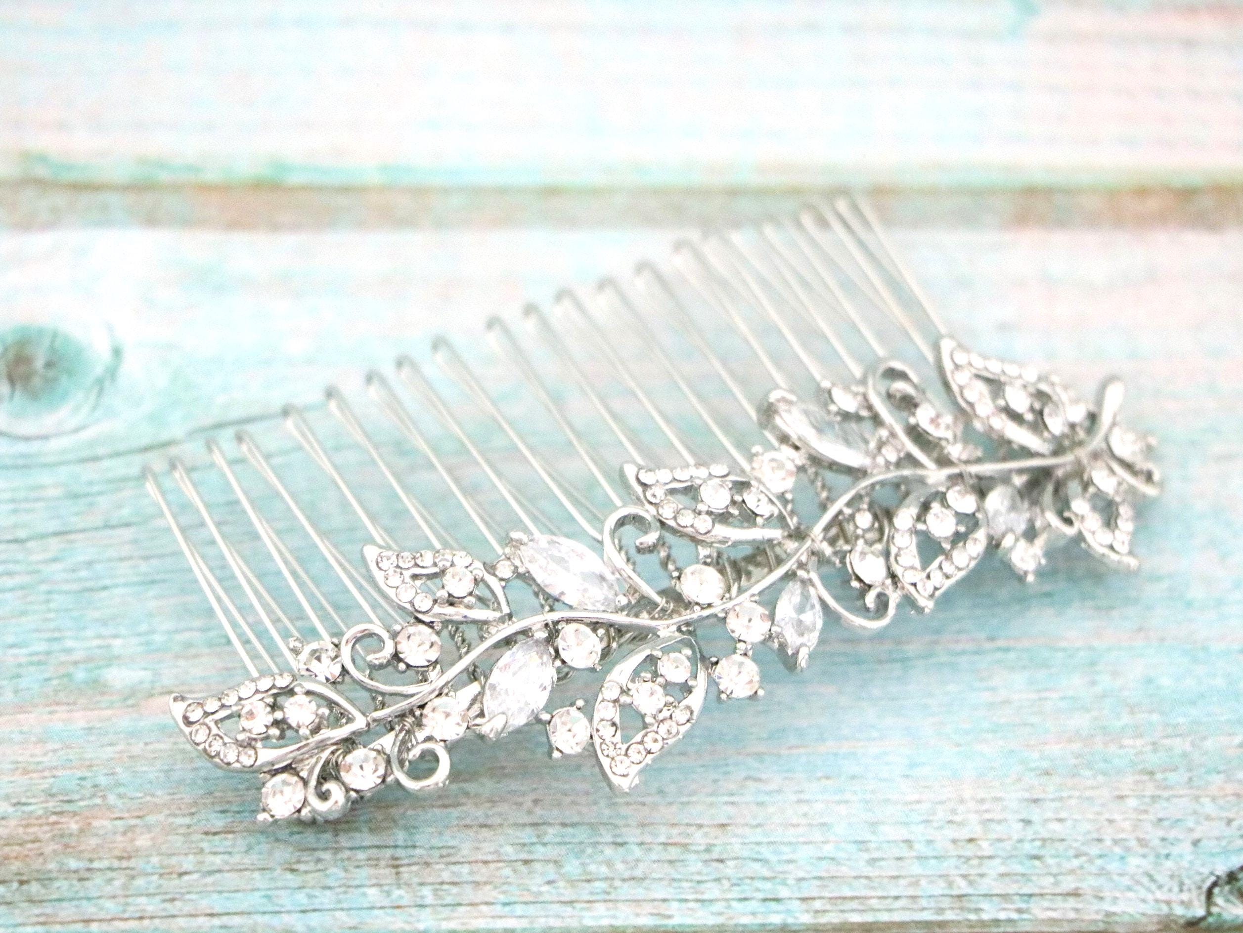 Crystal Hair Comb, Silver Wedding Hair Comb, Bridal Rhinestones Comb, Leaf Hair Comb, Bridesmaids Hair Piece, Wedding Hair Accessory