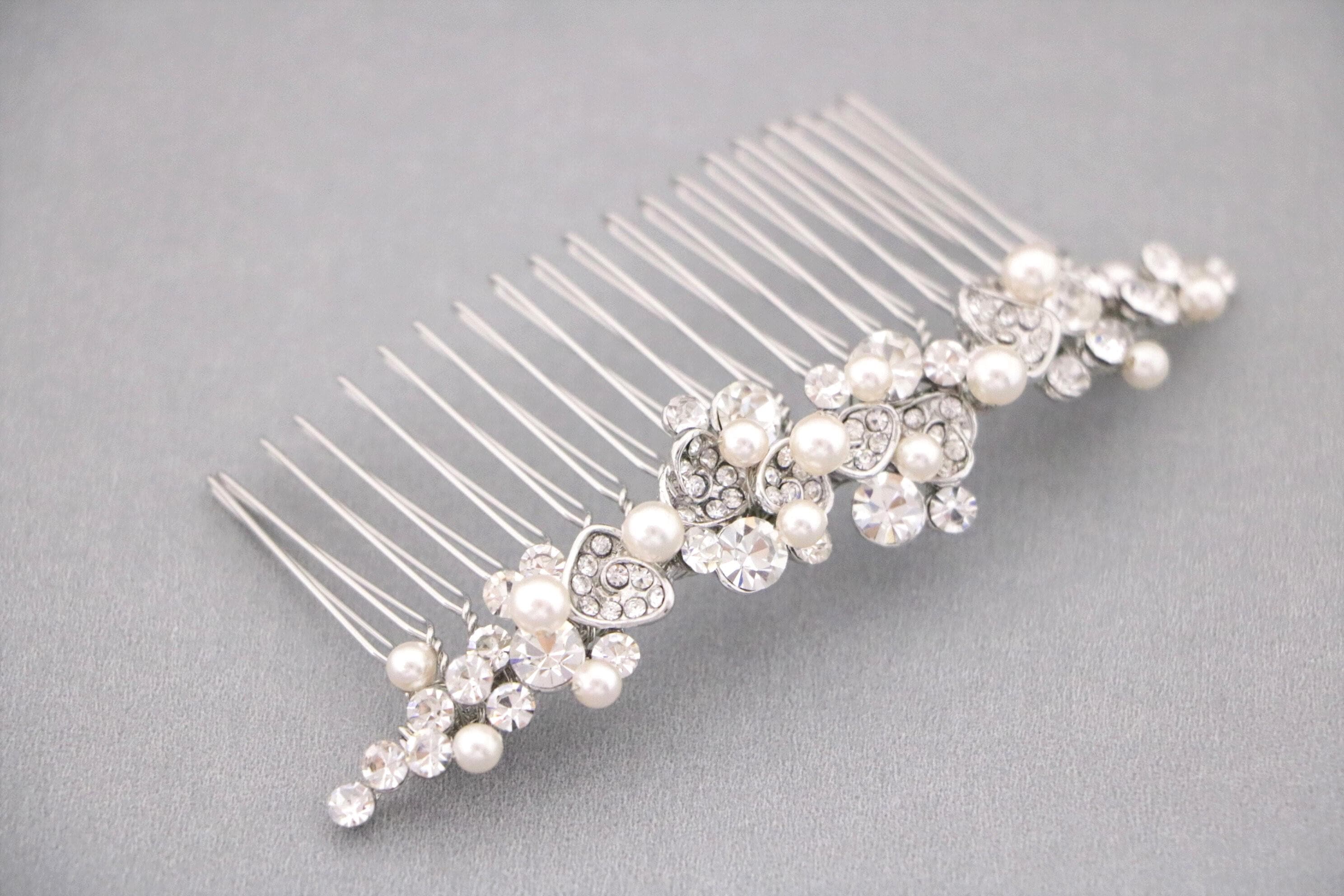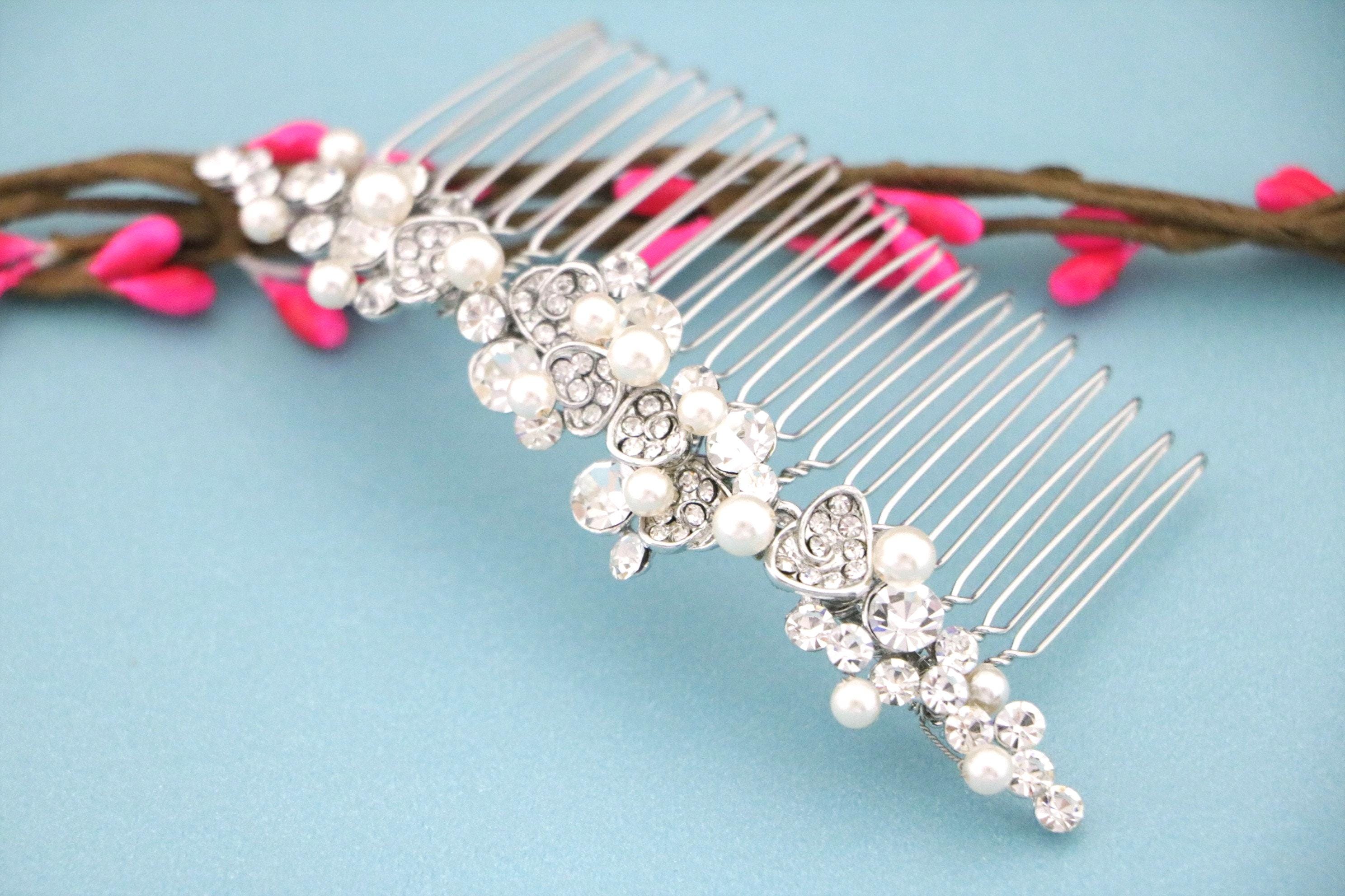 This sparkle rhinestone hair comb features a very beautiful vintage style rhinestone piece and Swarovski ivory pearls.