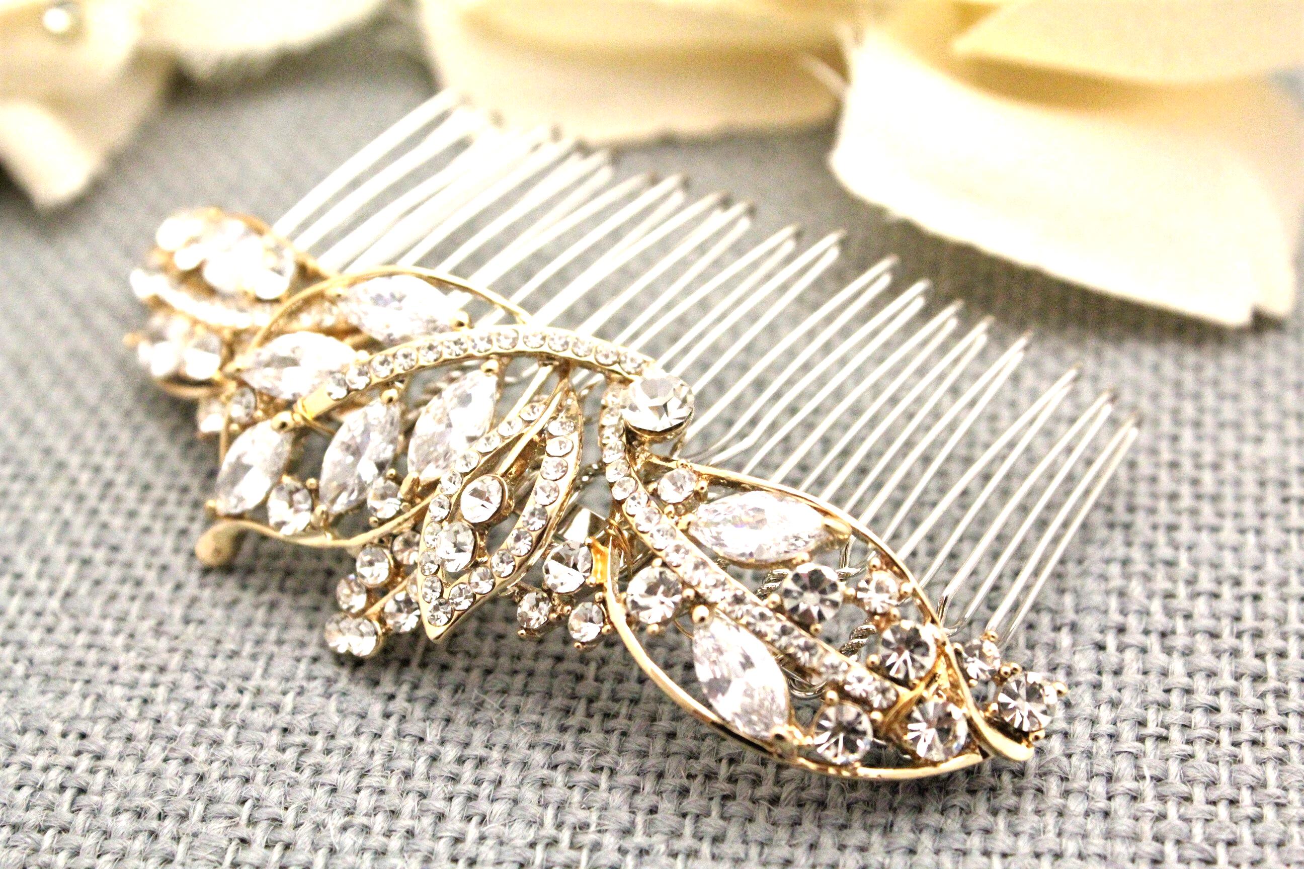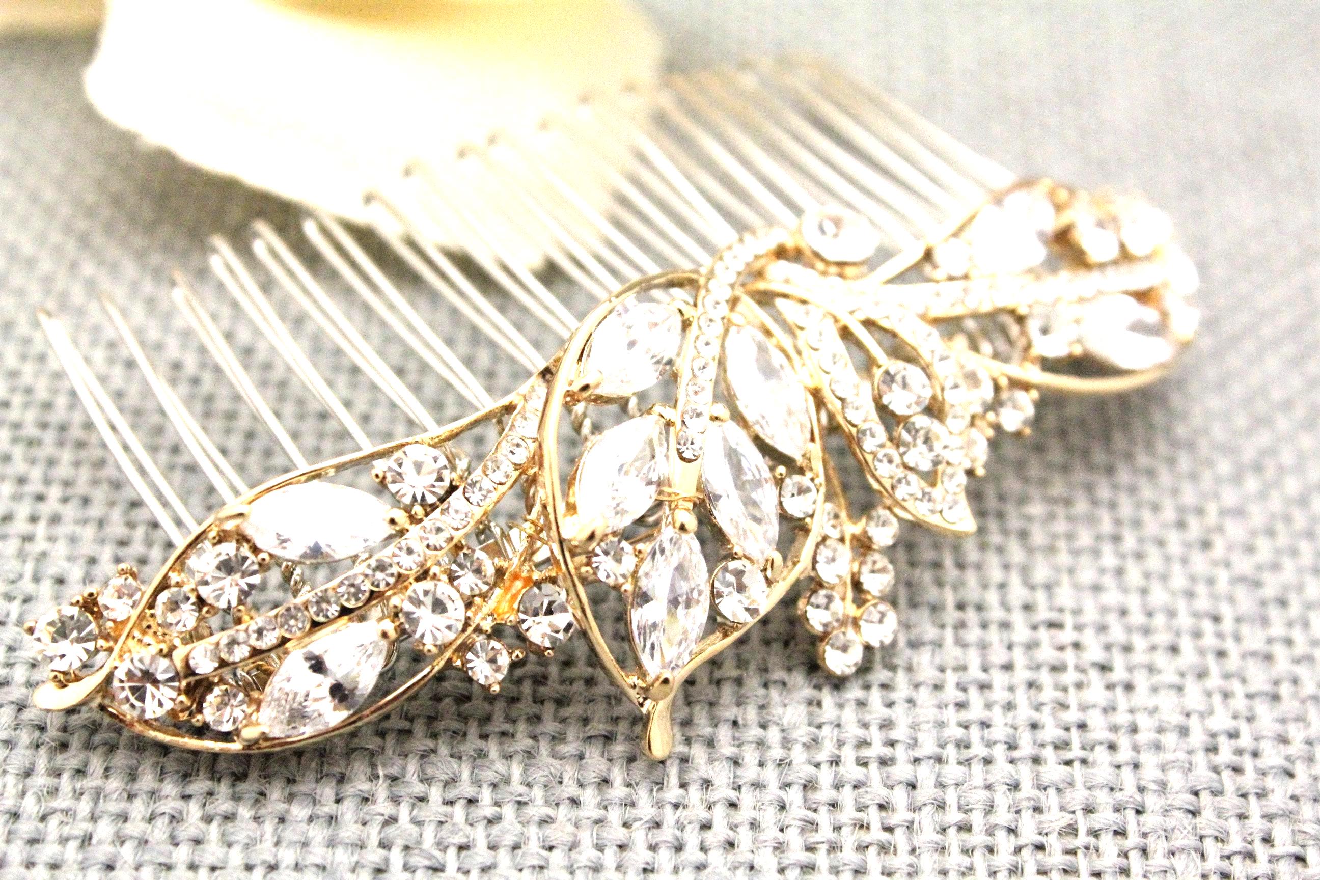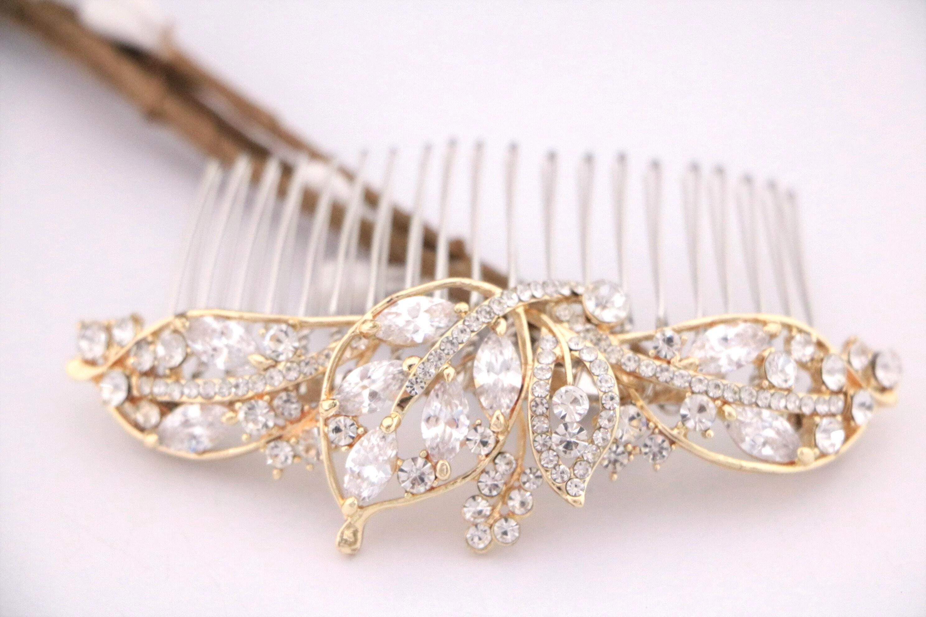 Gold Boho Flower Leaf Wedding Hair Comb, Wedding Hair comb, Wedding Gold Hair vine leaves, Boho Headpiece