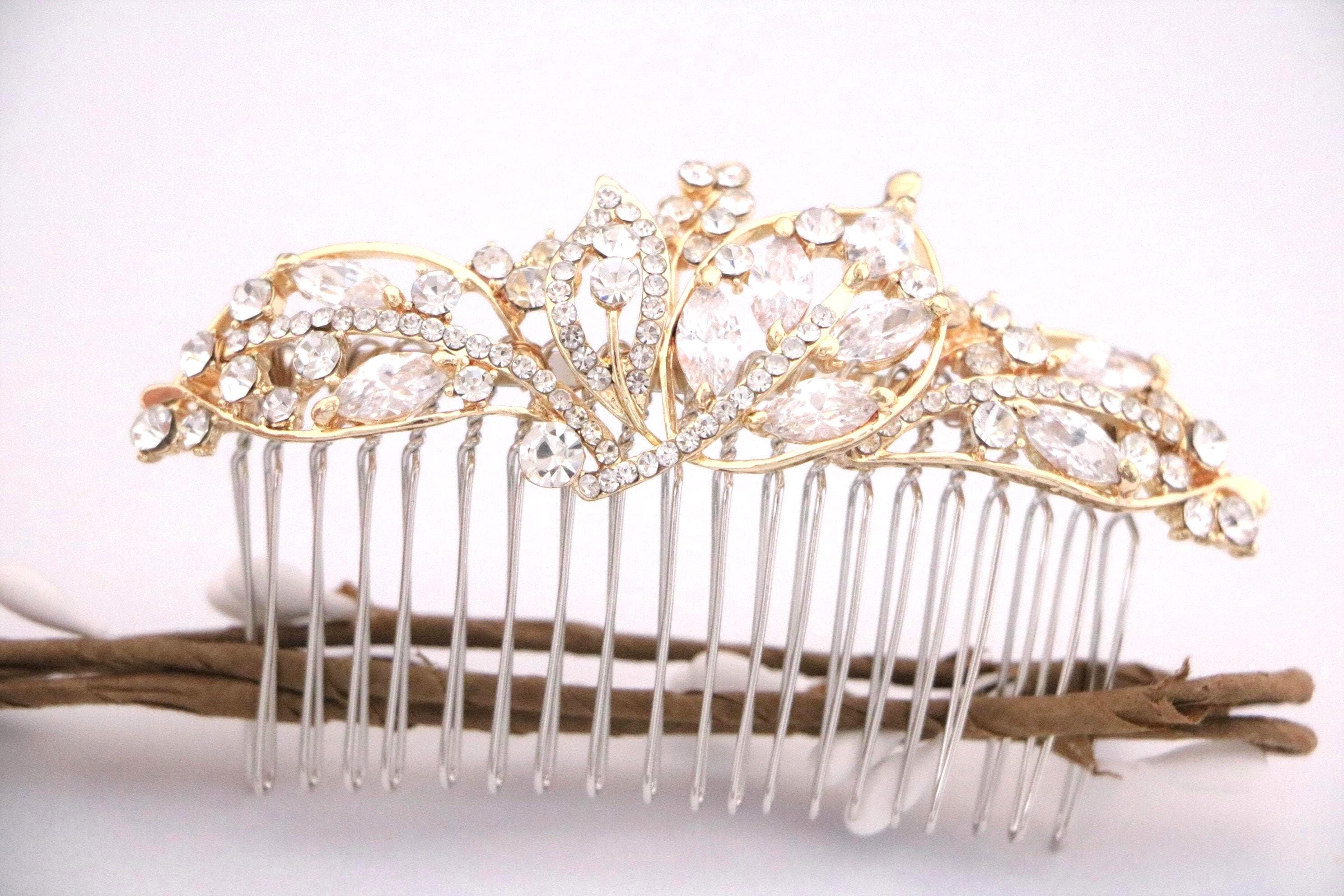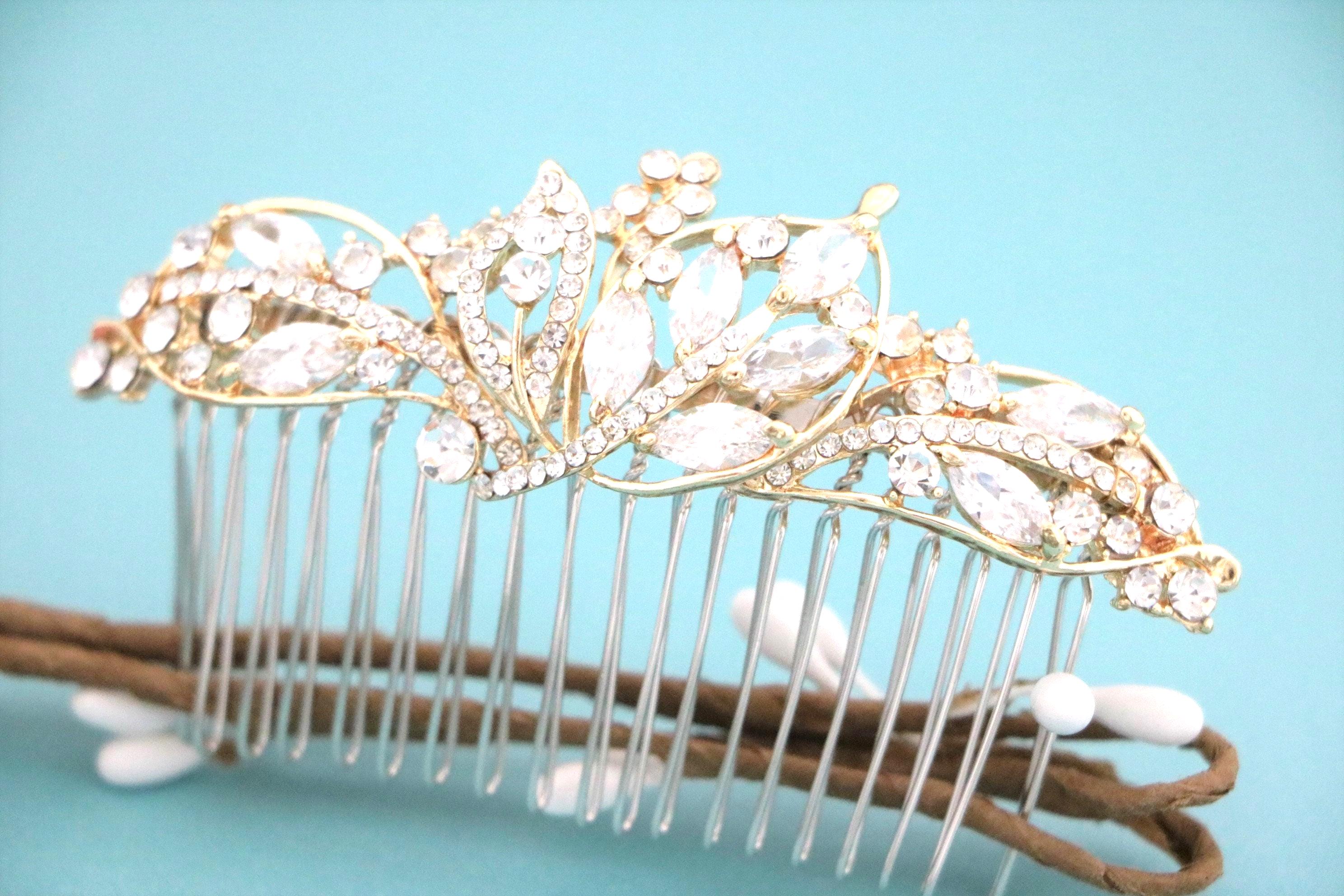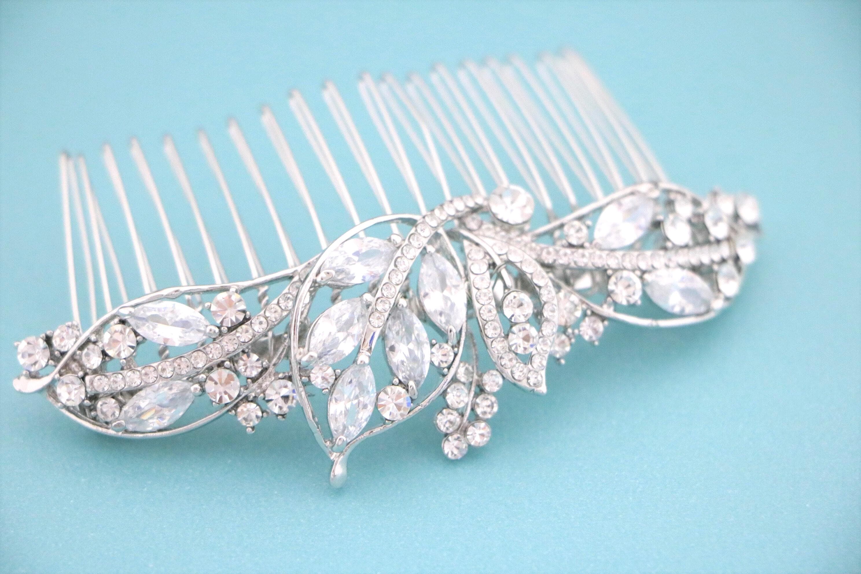 This sparkle rhinestone hair comb features a very beautiful vintage style rhinestone hair comb. Rhinestone piece are set it on a metal barrette or on a metal hair comb. The rhinestone part measures approximately 4.25 X 1.25 inches.