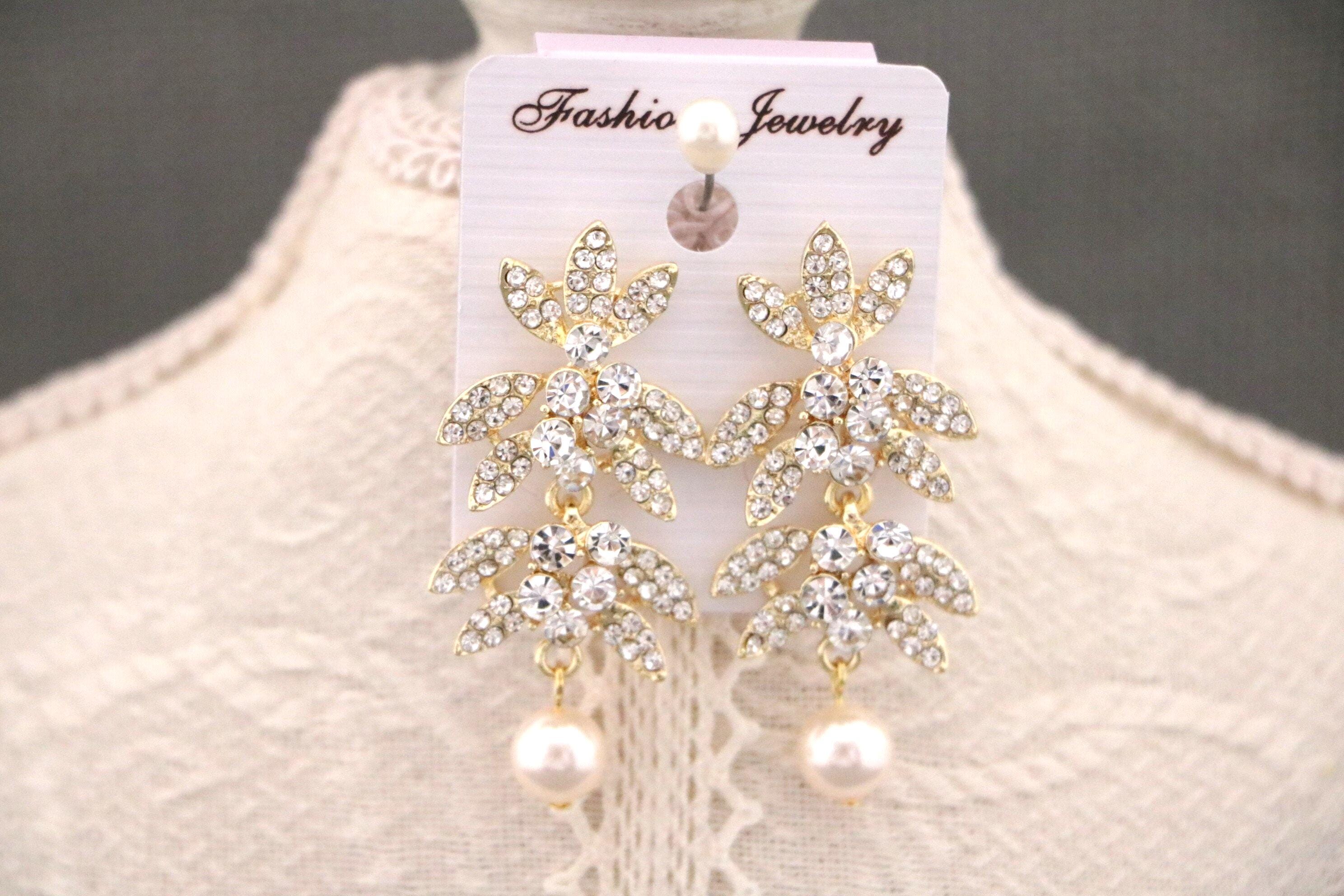 This vintage inspired stunning Pearl and Rhinestone earring is beautiful addition to your wedding day.