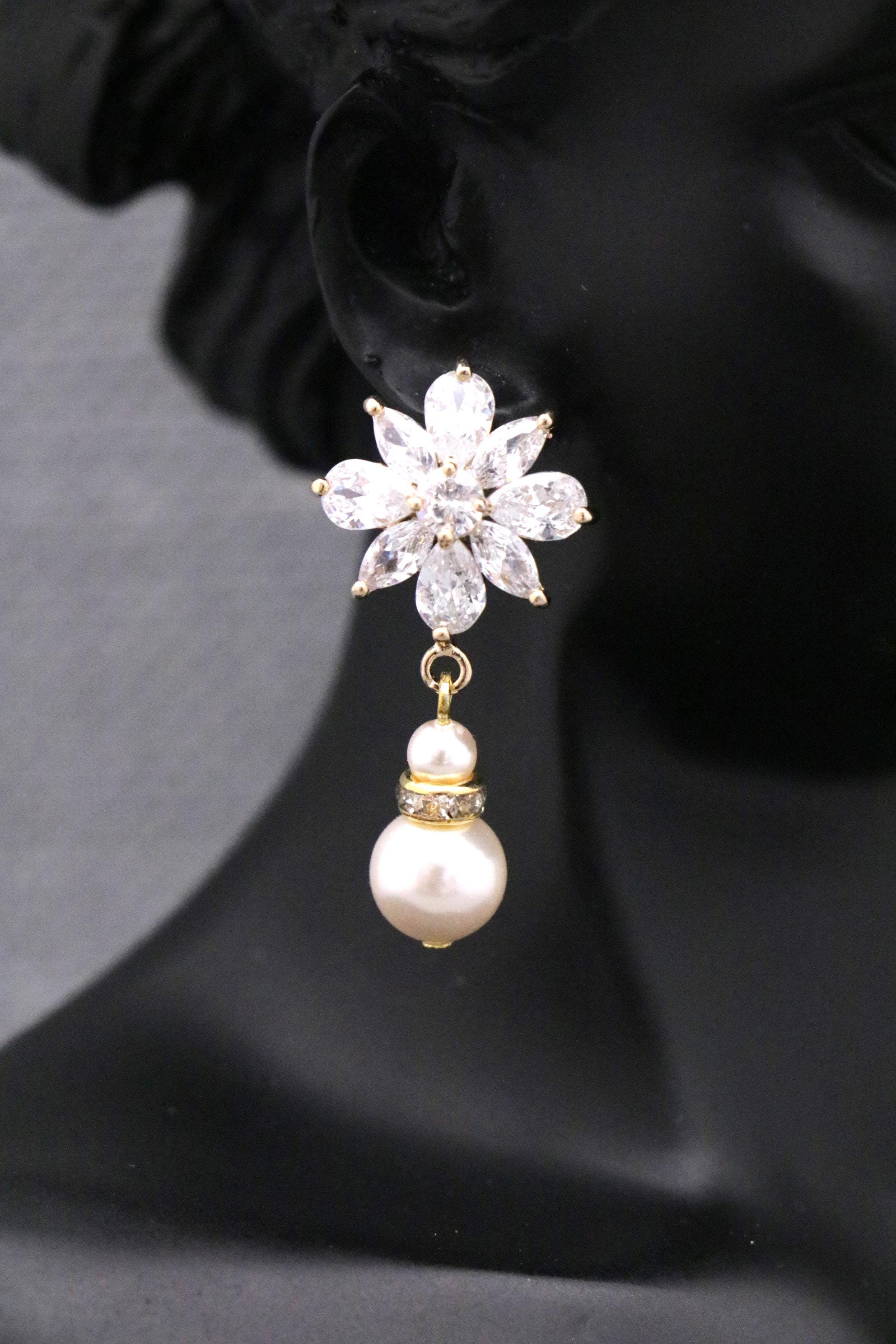 This vintage inspired stunning Swarovski Pearl and zircon earring is beautiful addition to your wedding day.