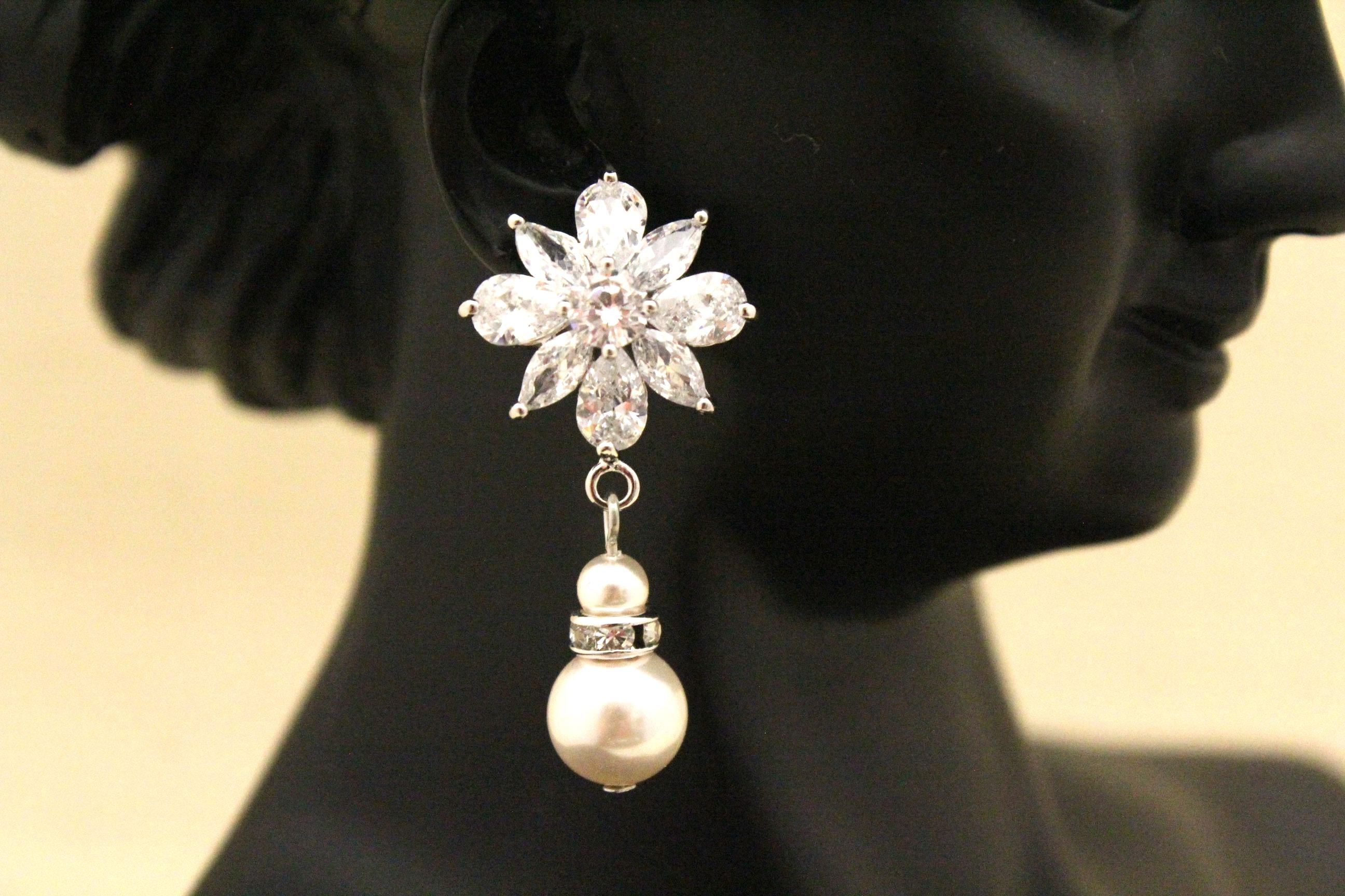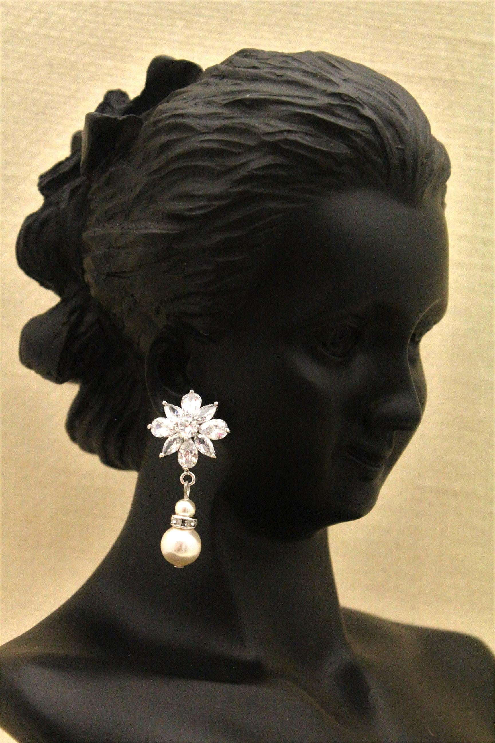 This vintage inspired stunning Swarovski  Pearl and zircon  earring is beautiful addition to your wedding day.