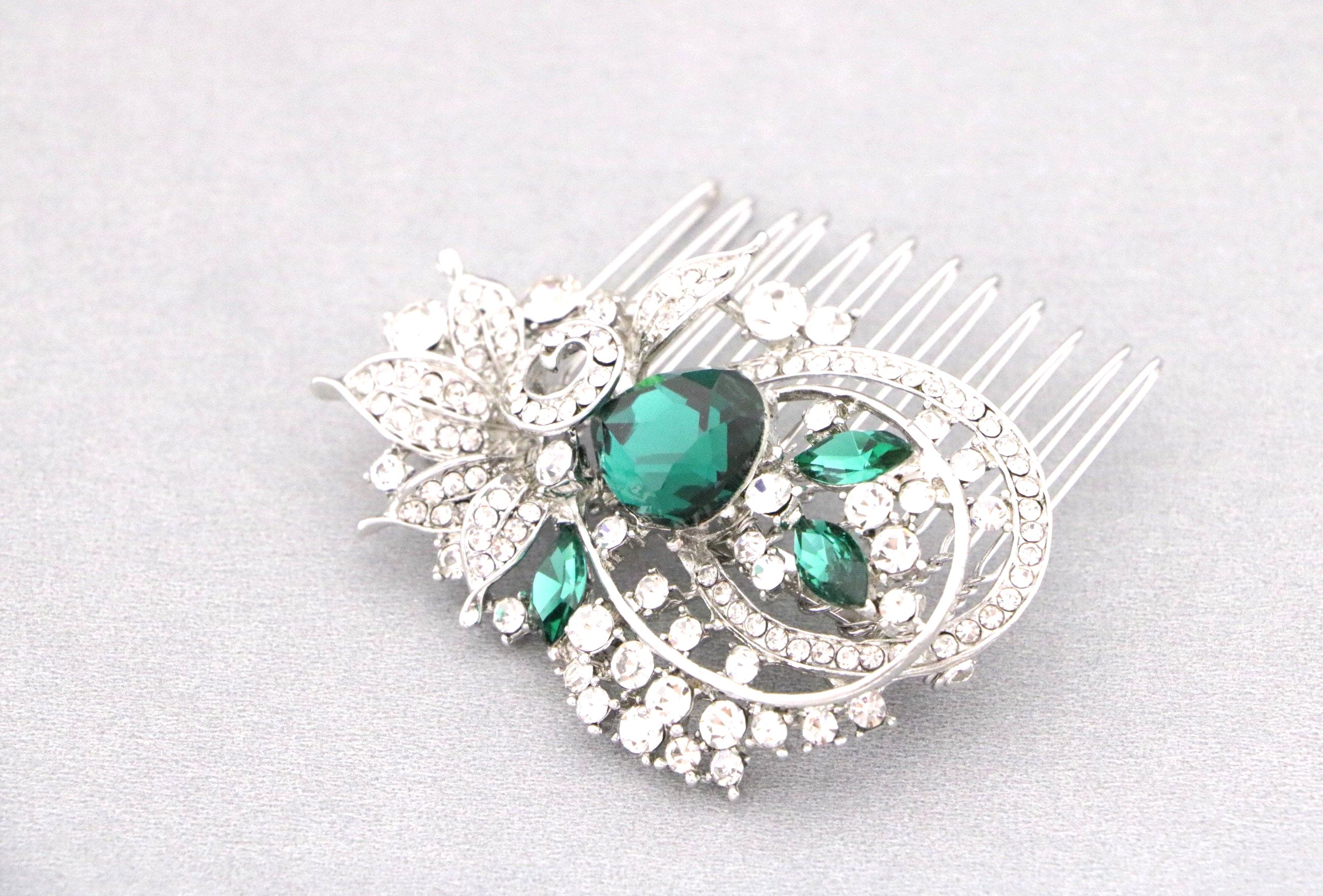 This beautiful Clear rhinestone and Sapphire Crystal hair comb is a perfect compliment for the wedding party and can easily fit into any hair style. The Rhinestone part measured approximately 2.75 X 1.75 inches. and the comb is approximately 2 inches wide.