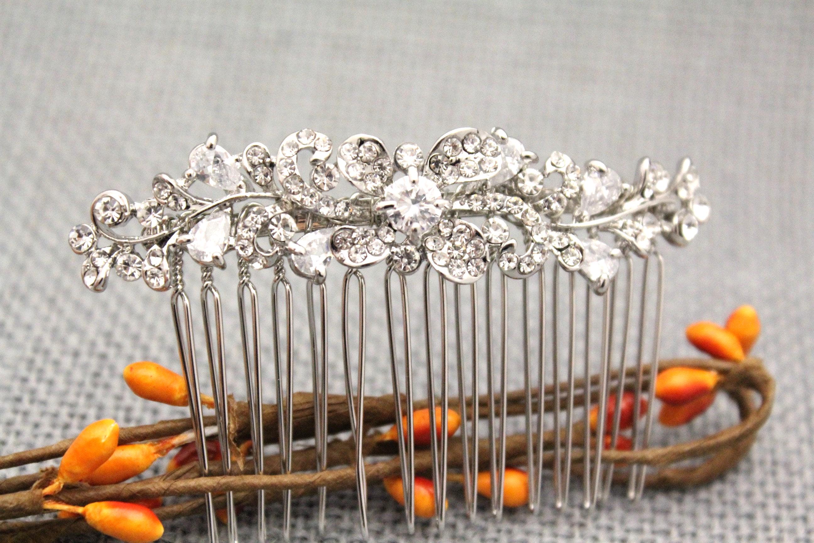 This sparkle rhinestone hair comb features a very beautiful vintage style rhinestone piece. Rhinestone piece can set on a metal barrette or on a metal hair comb. The rhinestone part measures approximately 1.75 X 0.75 inches.