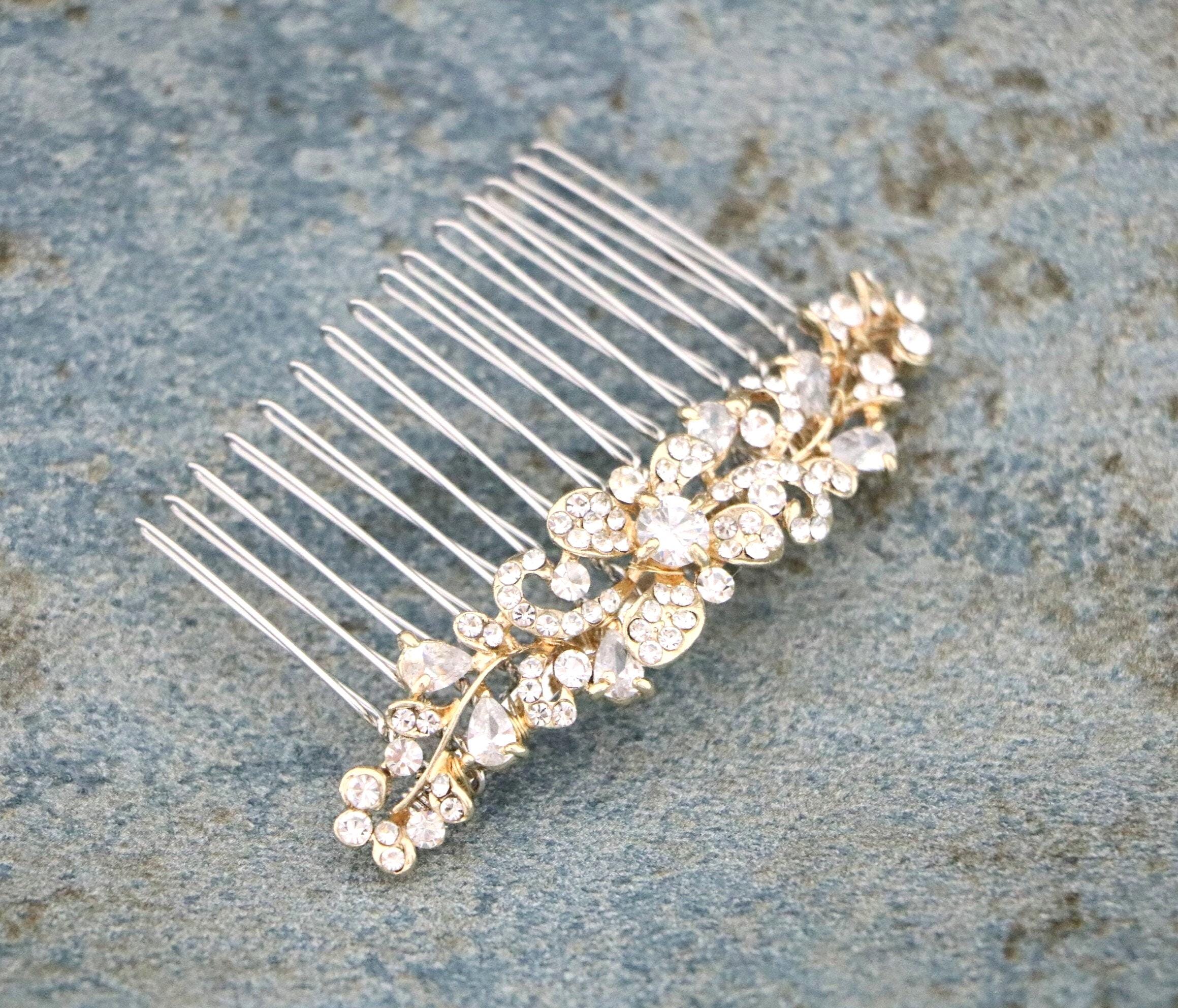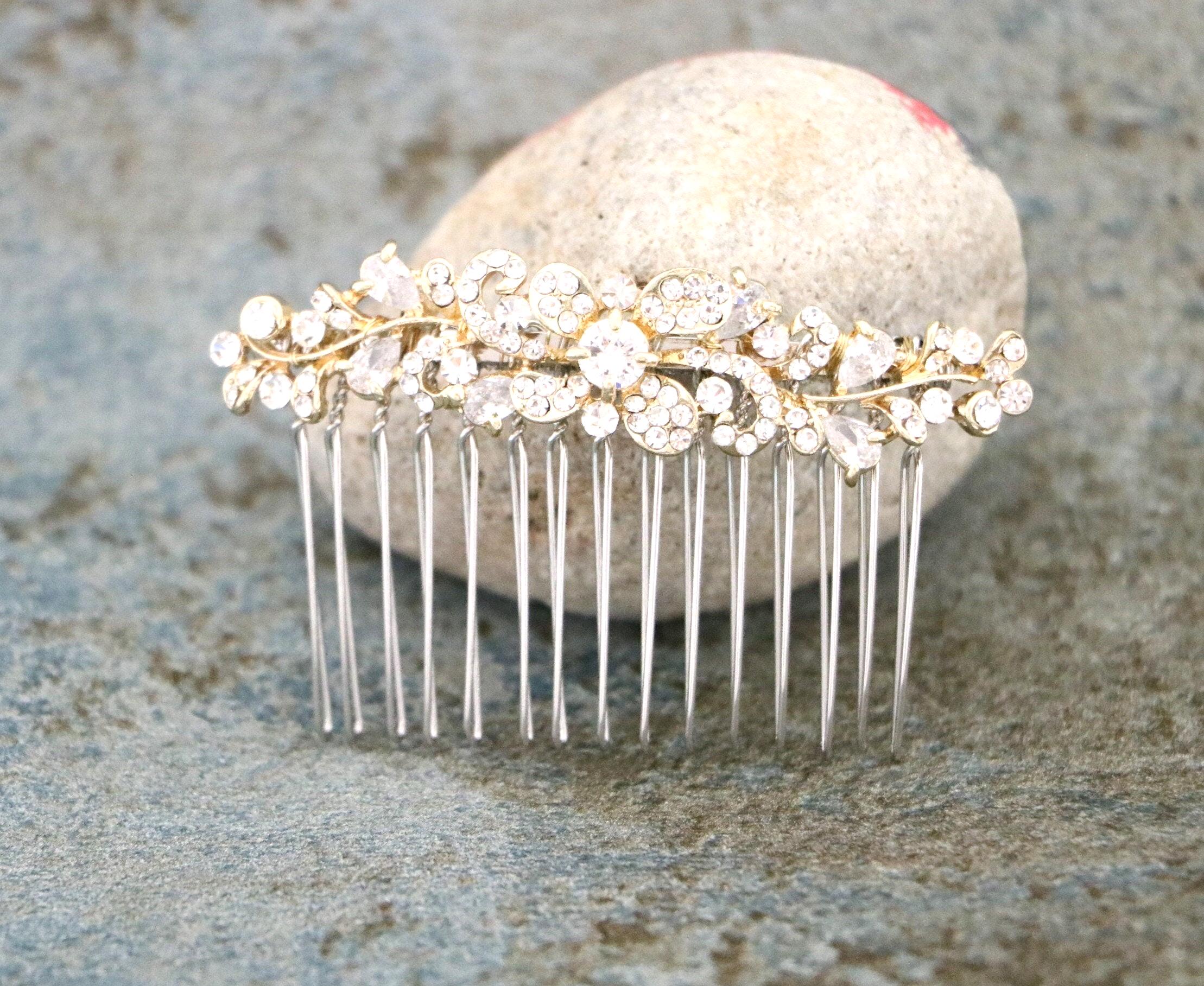 Bridal Barrette Gold, Gold Bridal Rhinestone Crystal Barrette, Bridal Comb Crystal, Wedding Hair Piece, Gold Crystal Hair Clip
