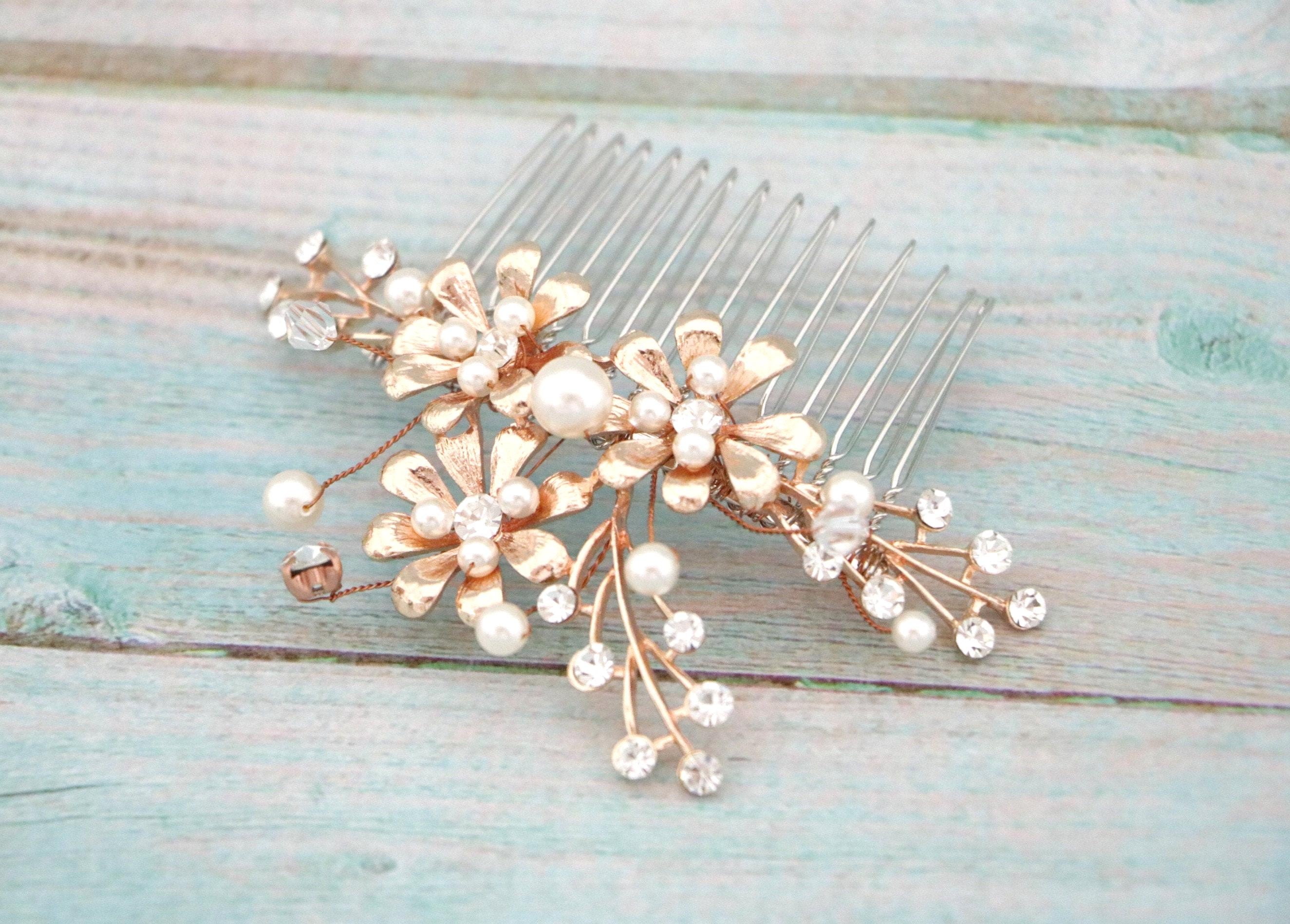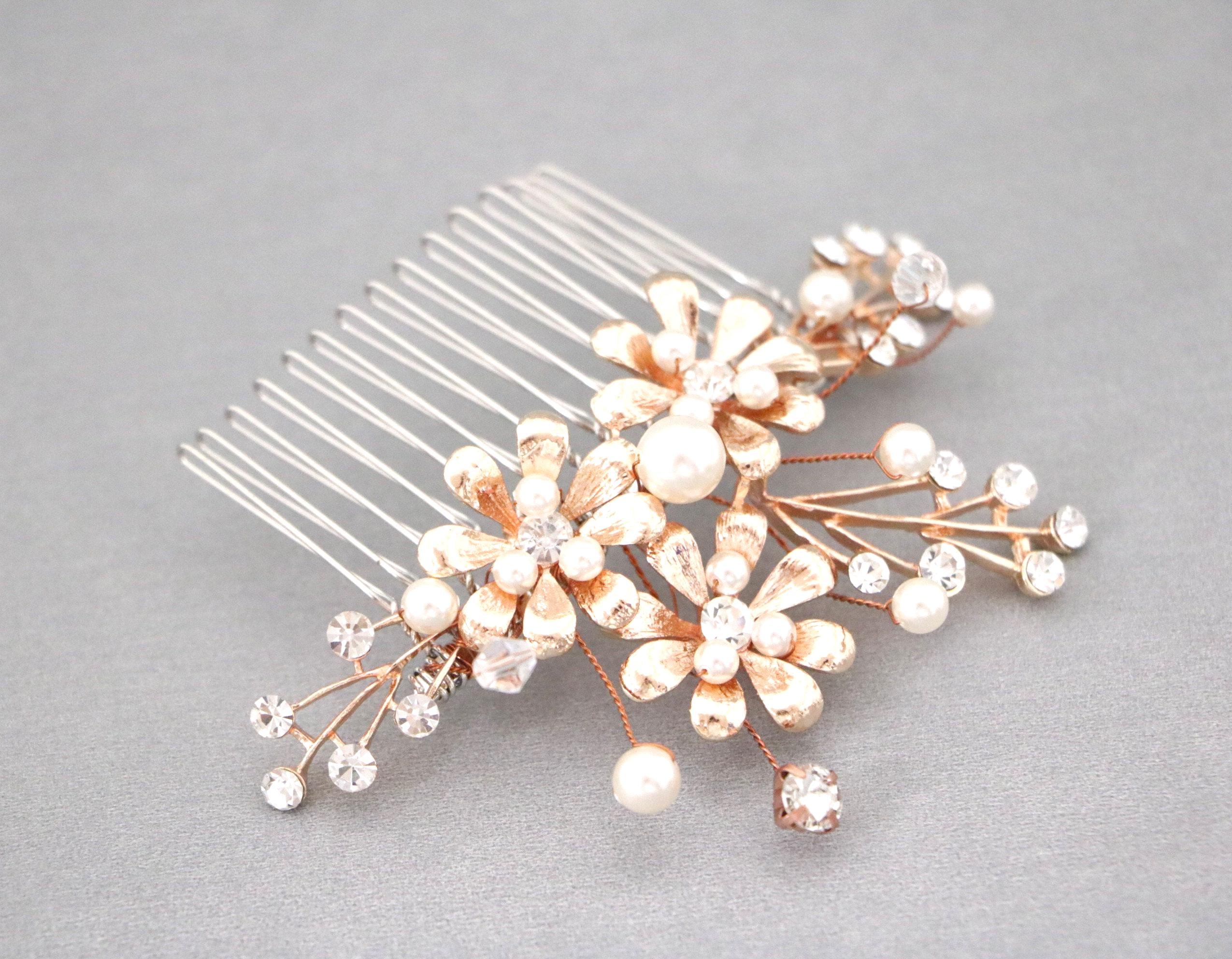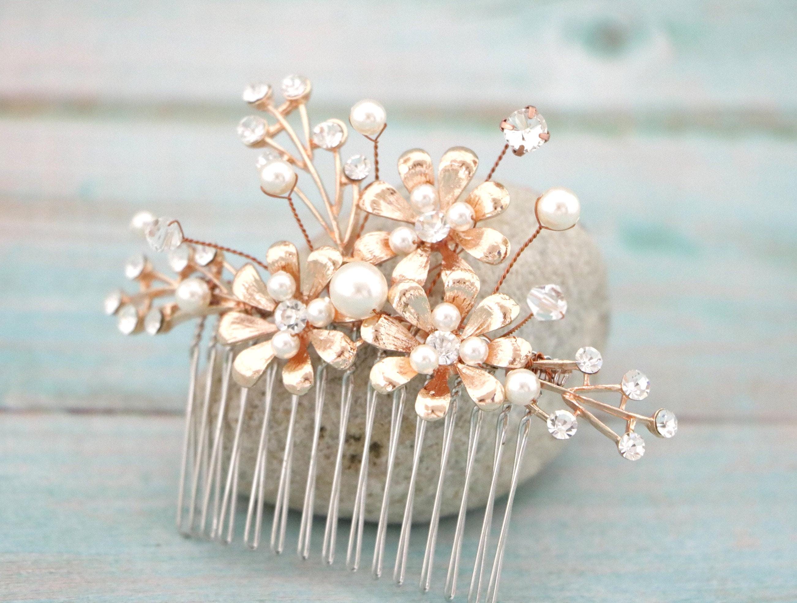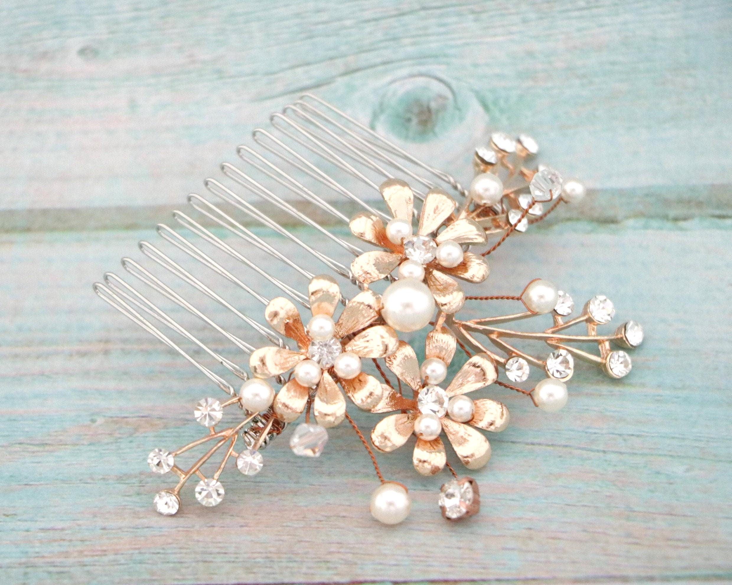 Wedding Hair Accessory Boho Bridal Hair Comb crystal pearl with leaves and flowers Wedding hair jewelry Vintage style hair comb