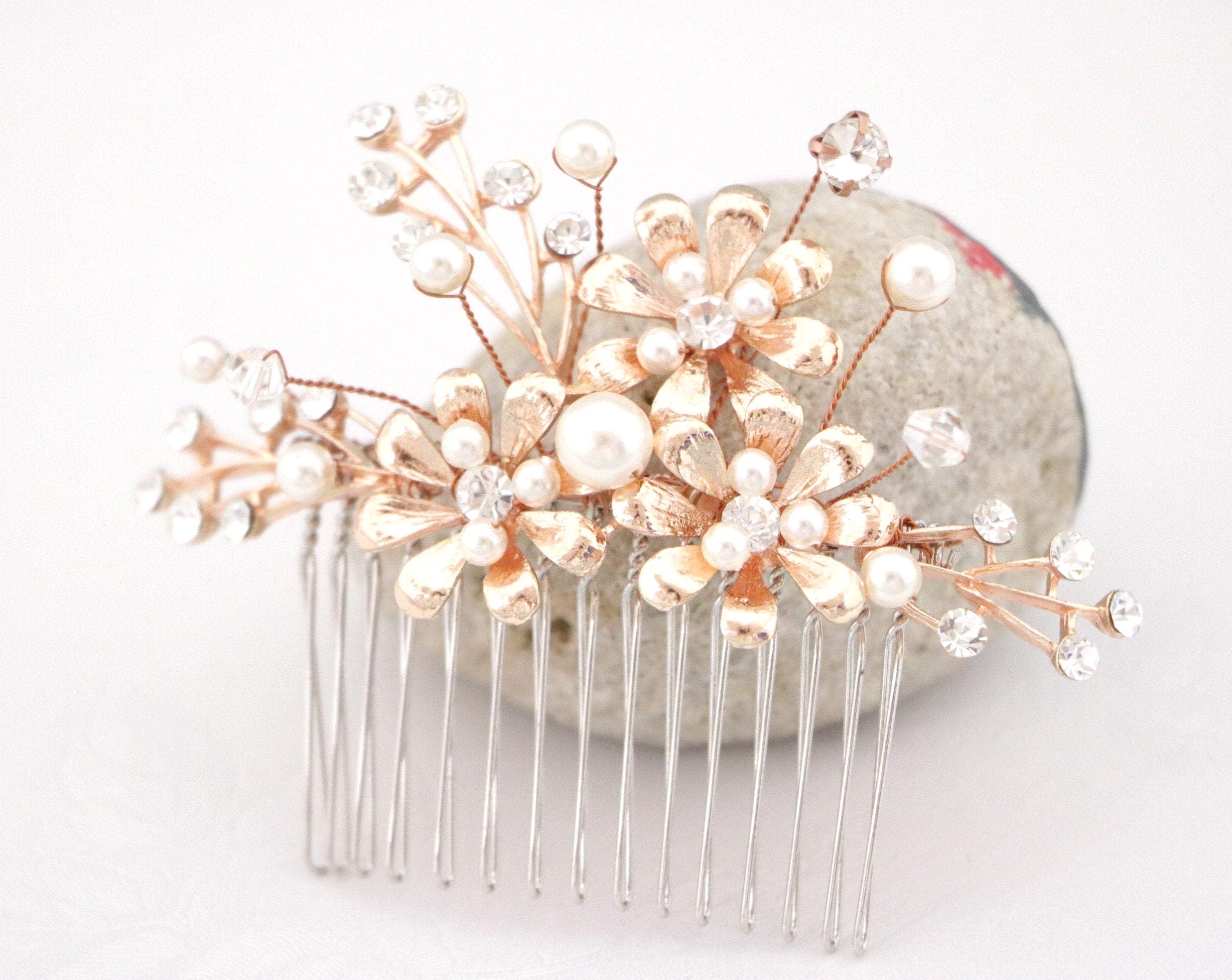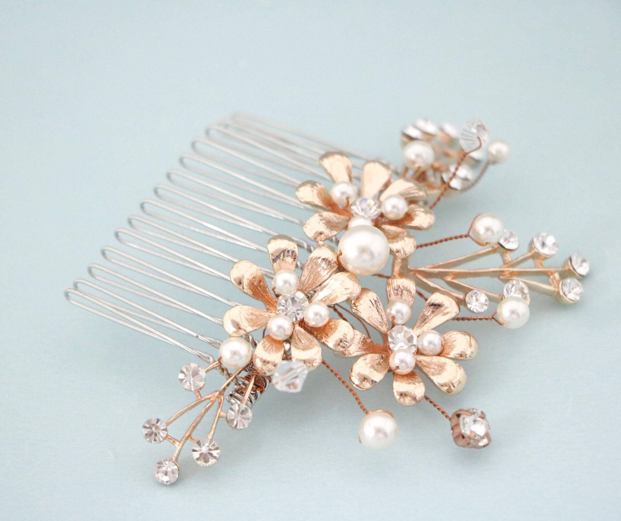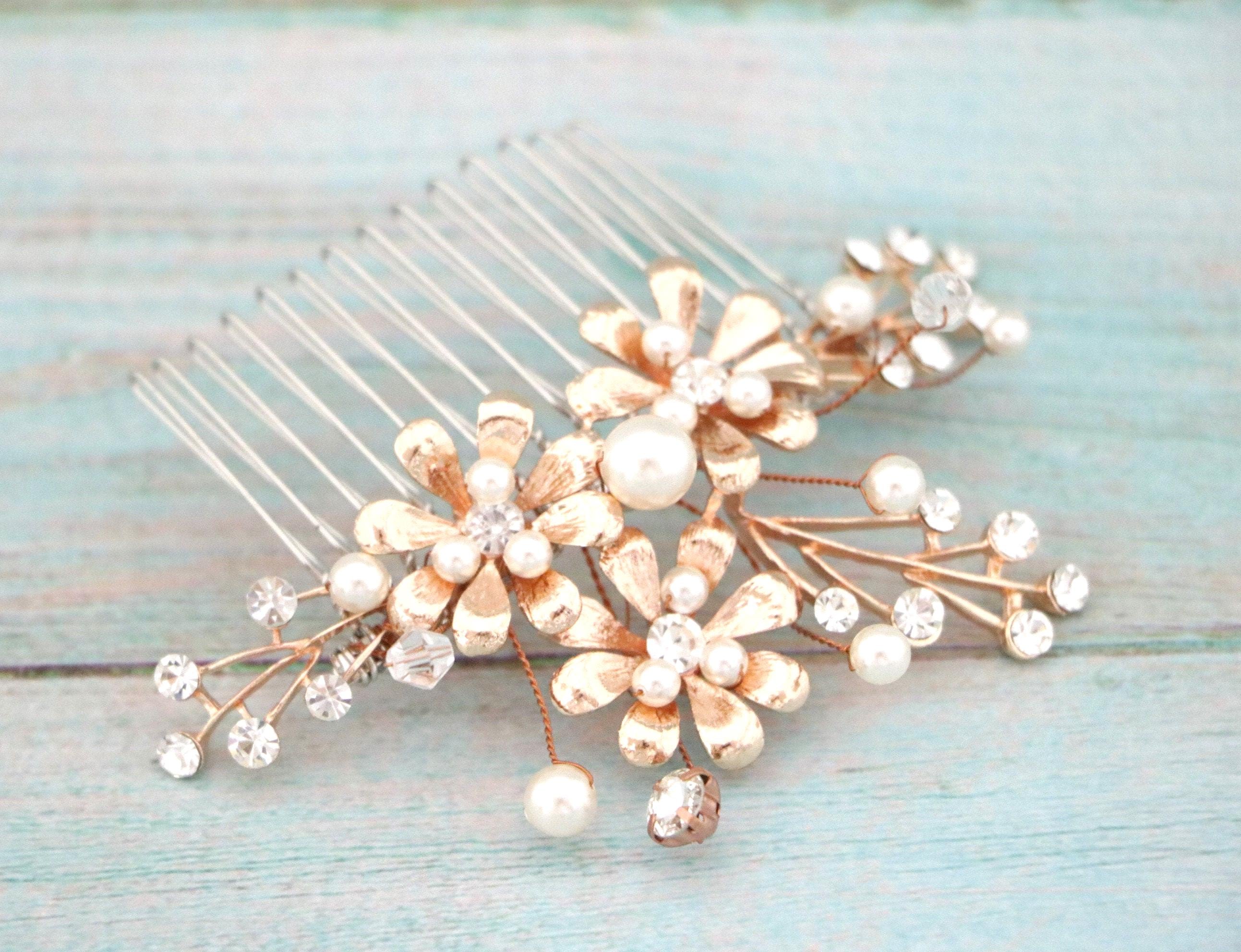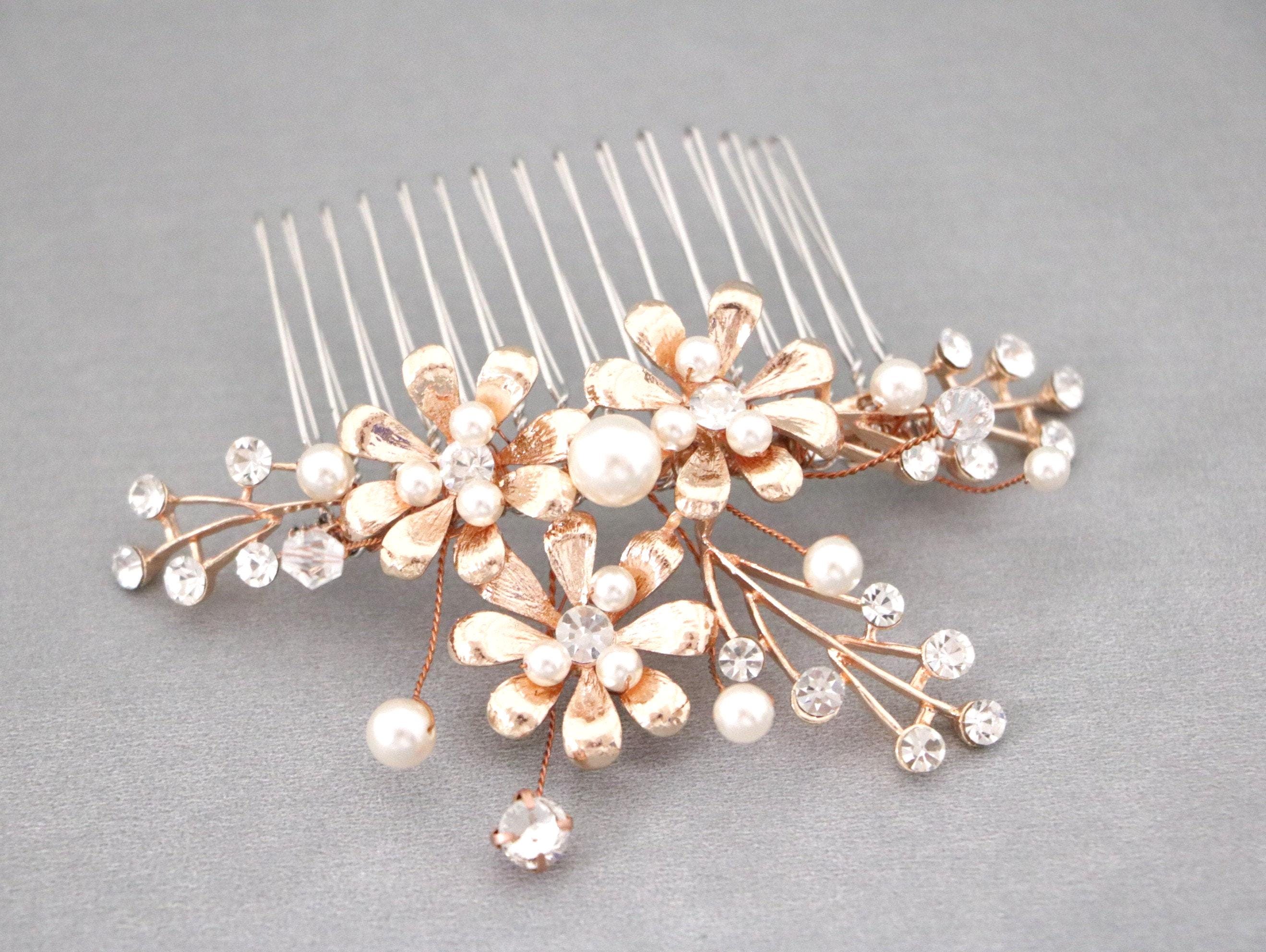 Wedding Hair Accessory Boho Bridal Hair Comb crystal pearl with leaves and flowers Wedding hair jewelry Vintage style hair comb