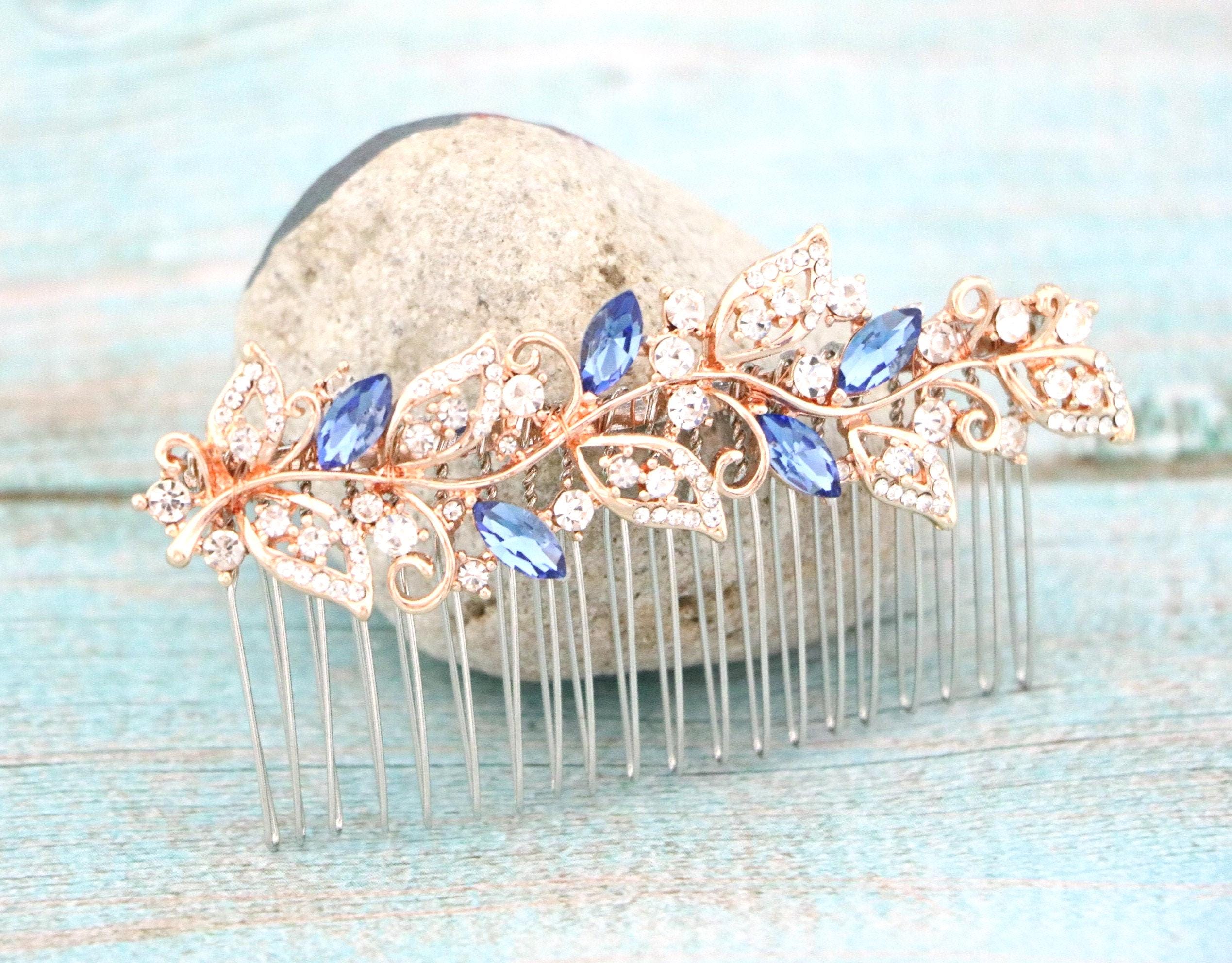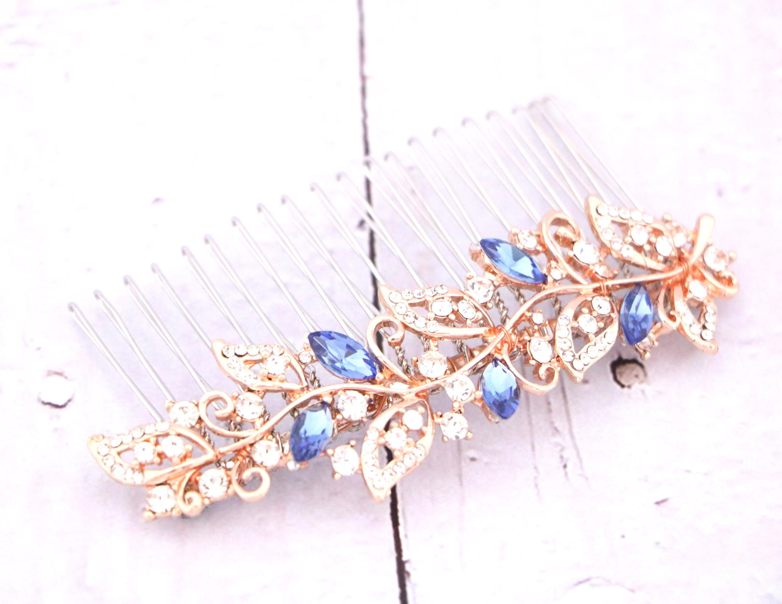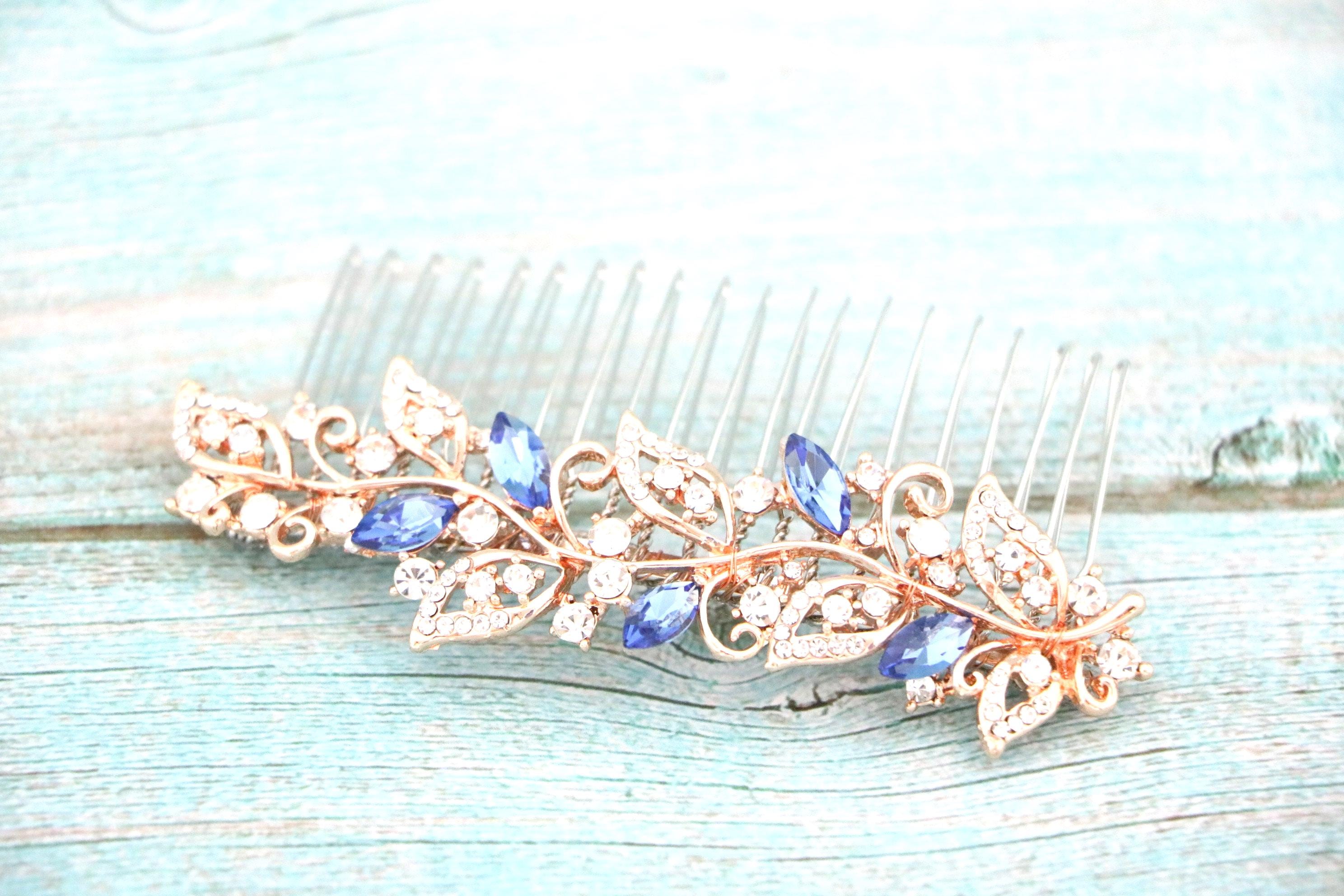 Blue bridal hair comb Something blue hair comb Sapphire blue Crystal hair comb Royal blue wedding Rhinestone hair comb Navy blue hair piece
