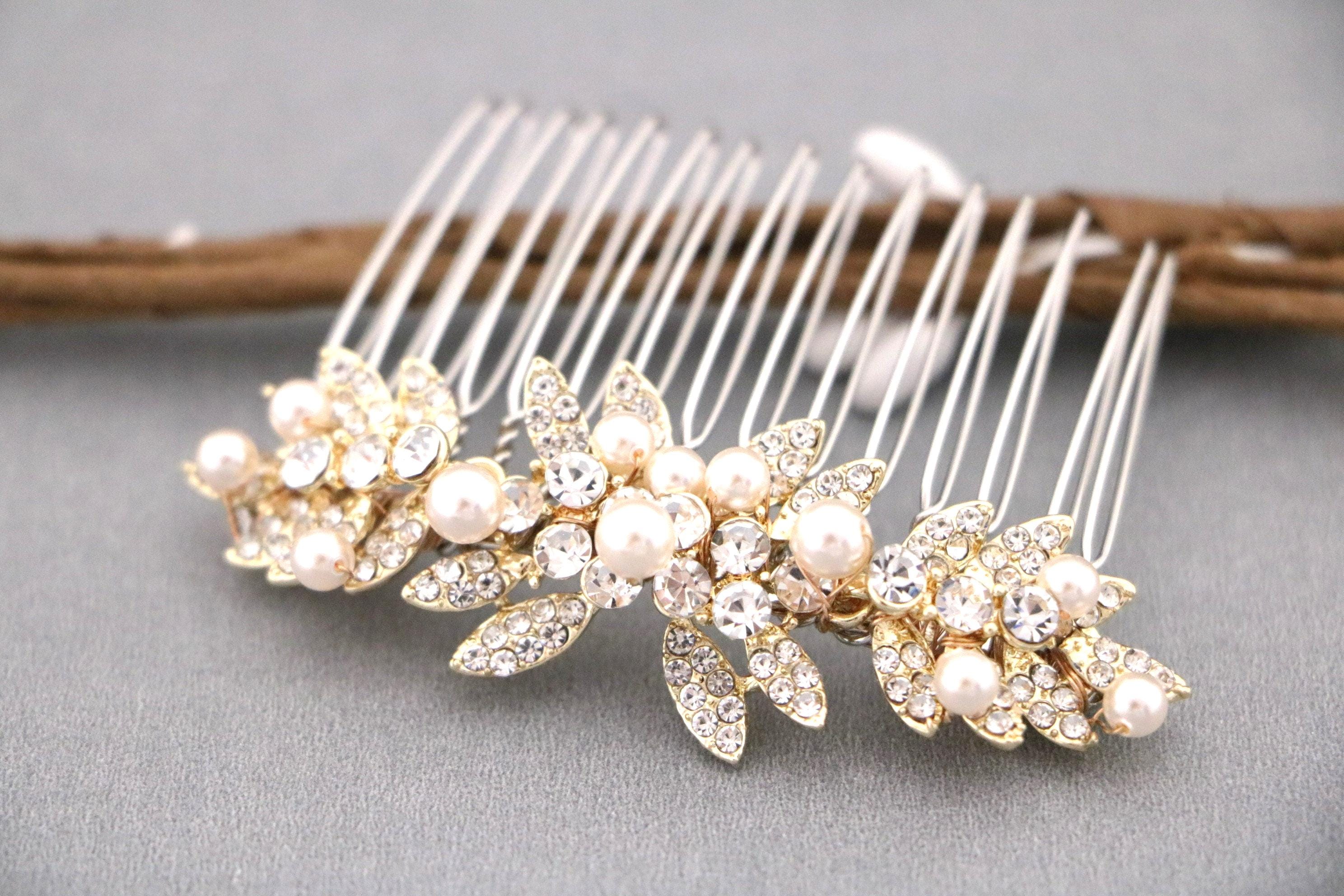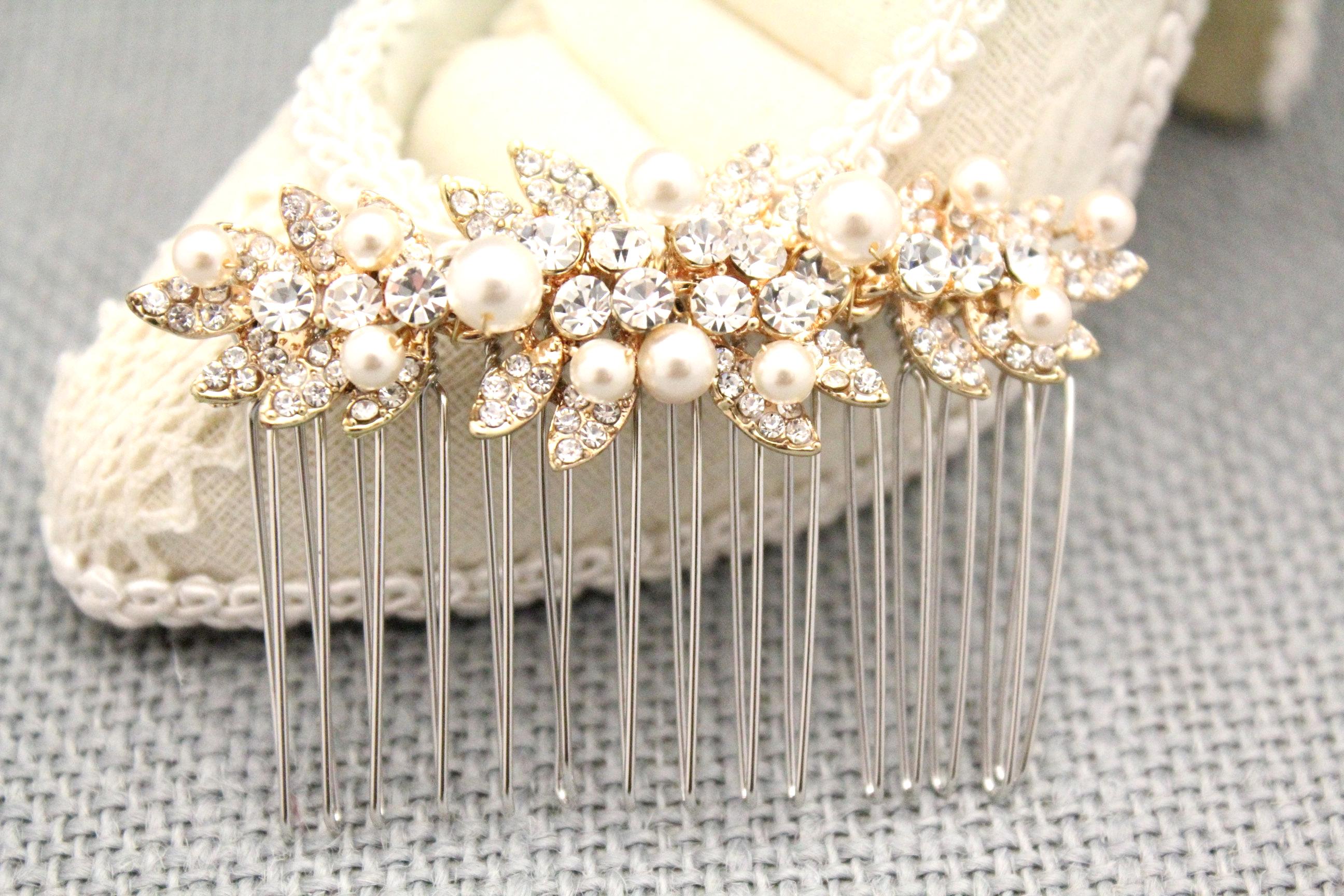 This beautiful Clear rhinestone Swarovski pearl hair comb is a perfect compliment for the wedding party and can easily fit into any hair style.