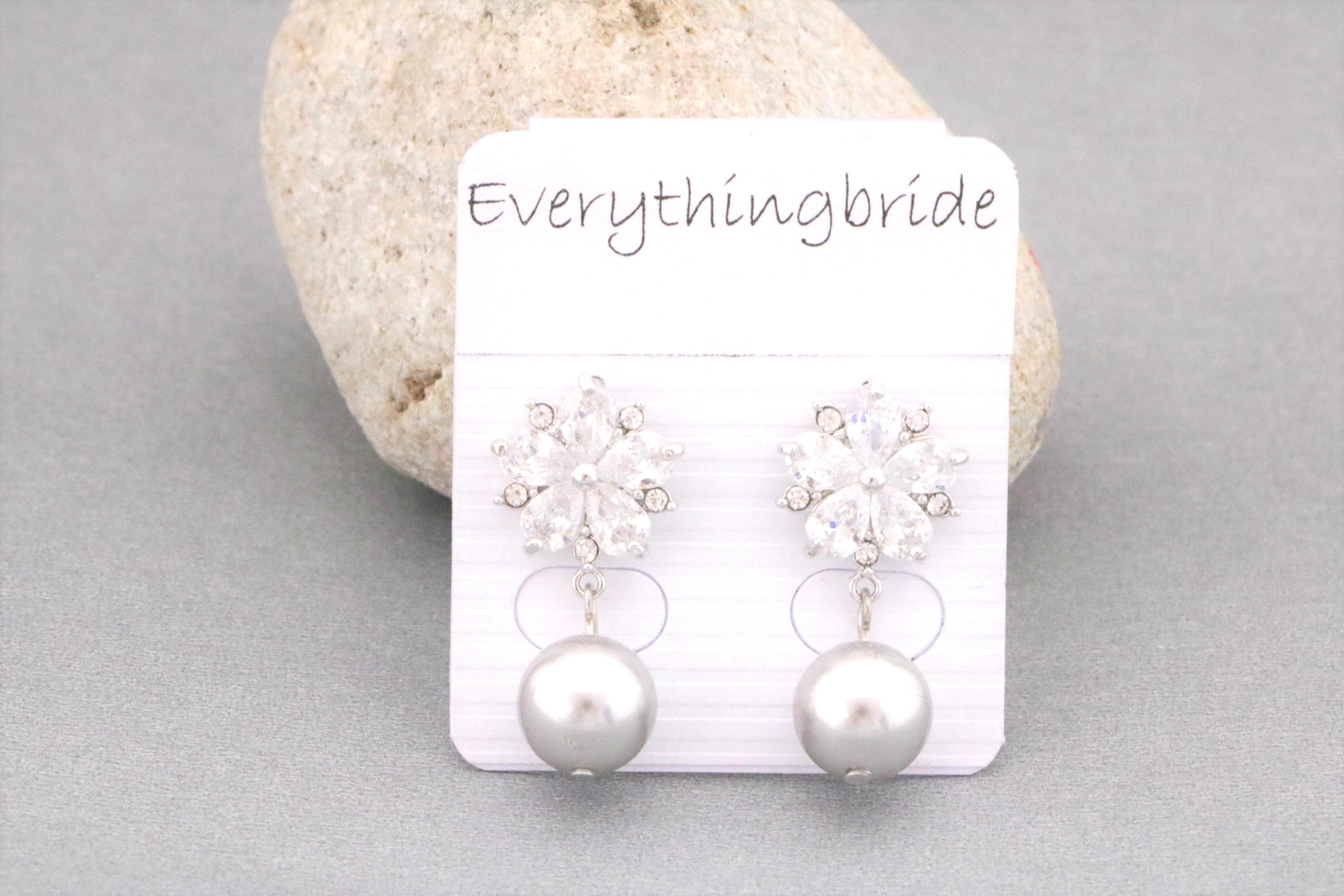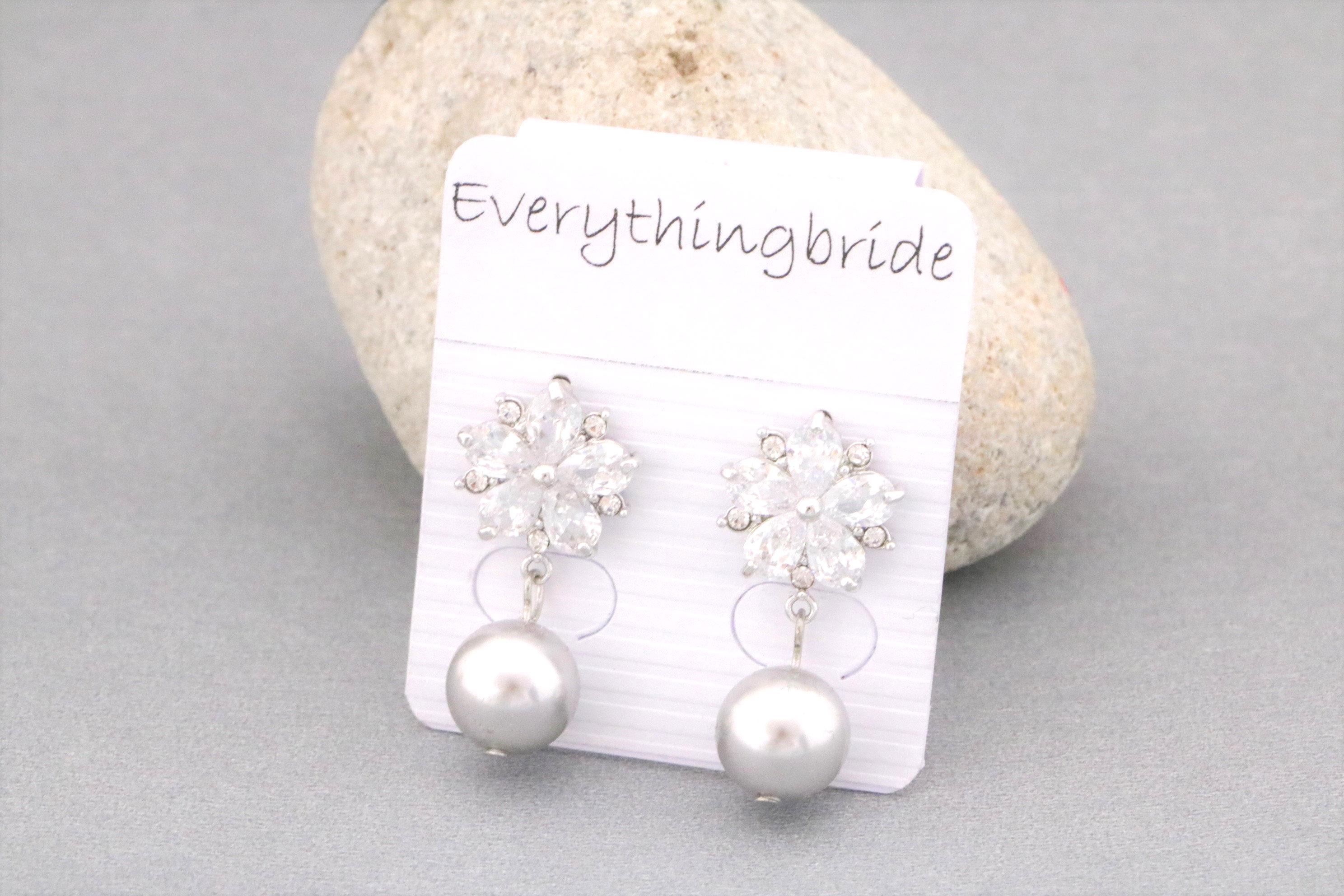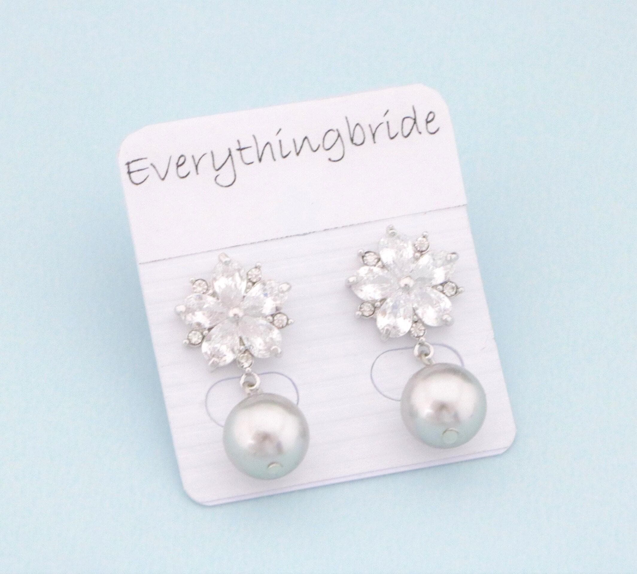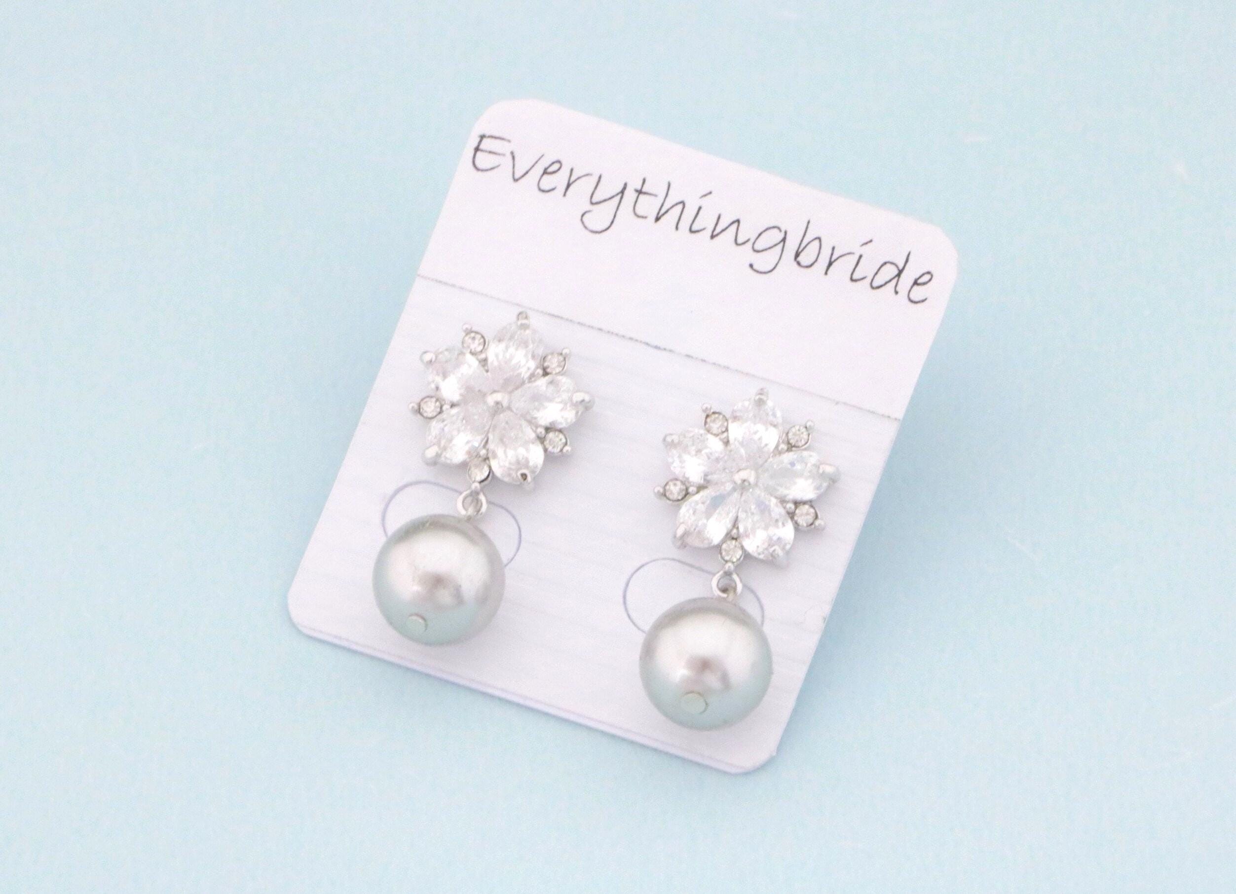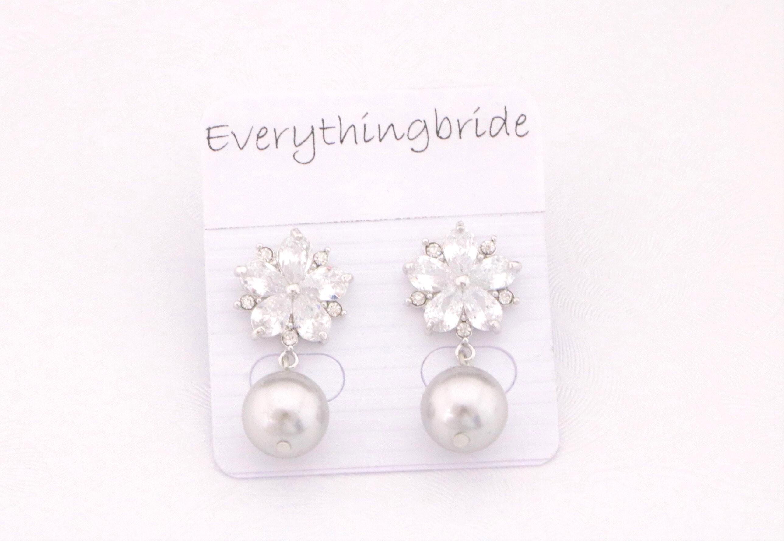 Grey pearl earrings Bridal pearl earrings wedding gray jewelry classic Swarovski light grey earrings Silver bridal jewelry Cubic Zirconia