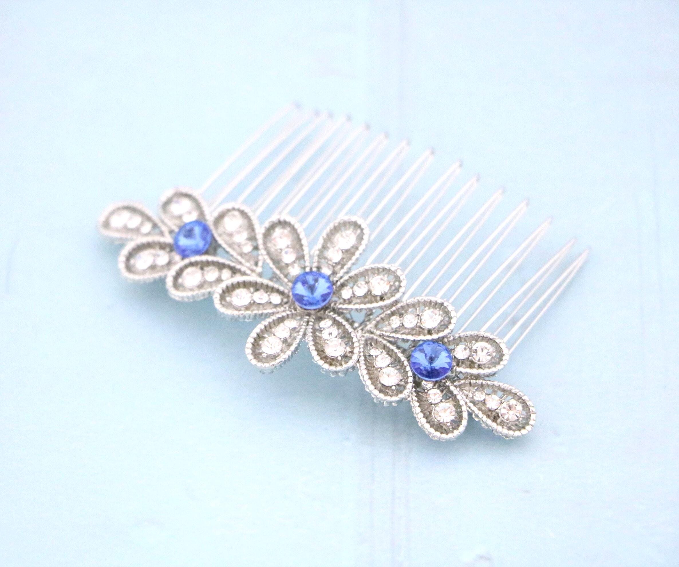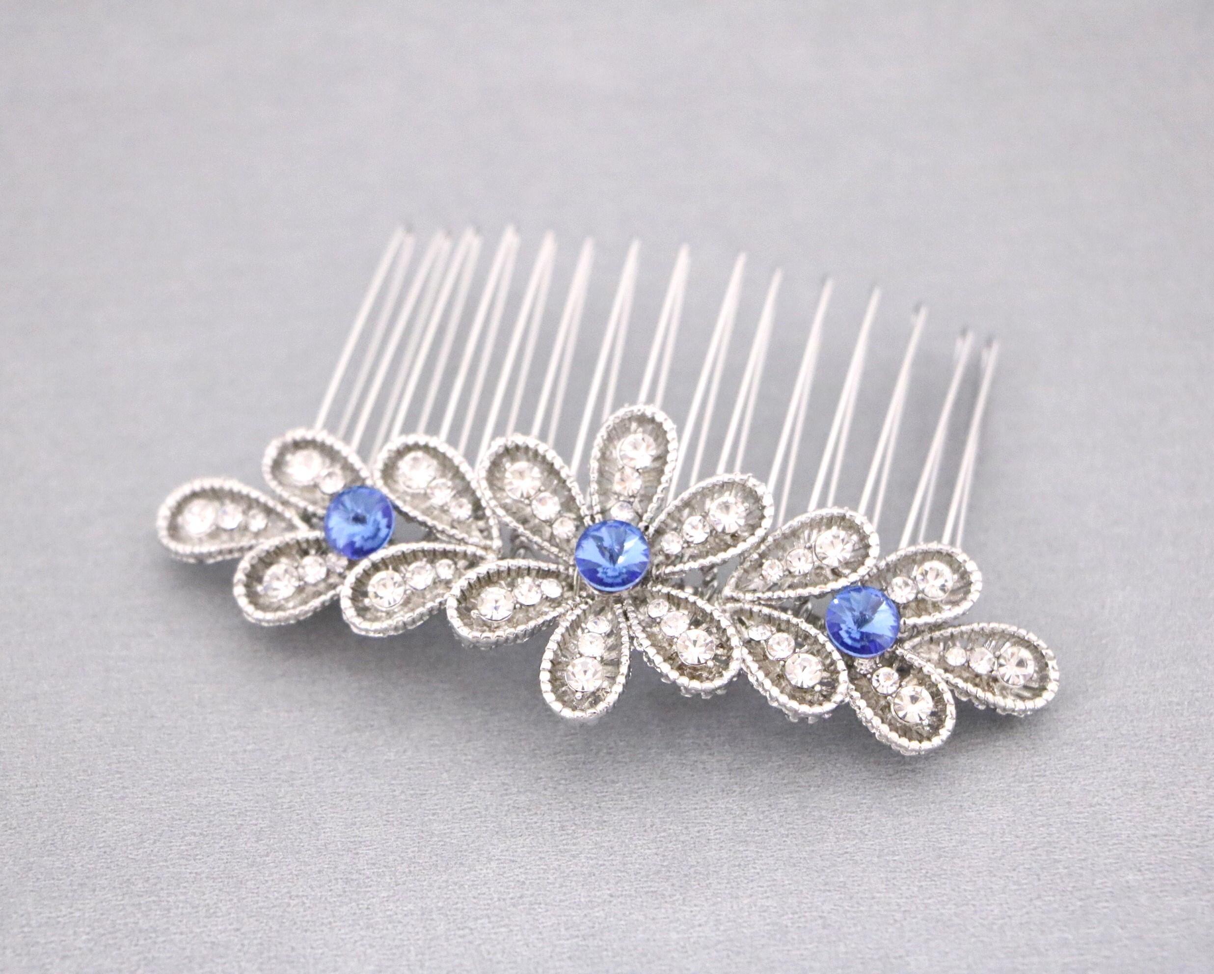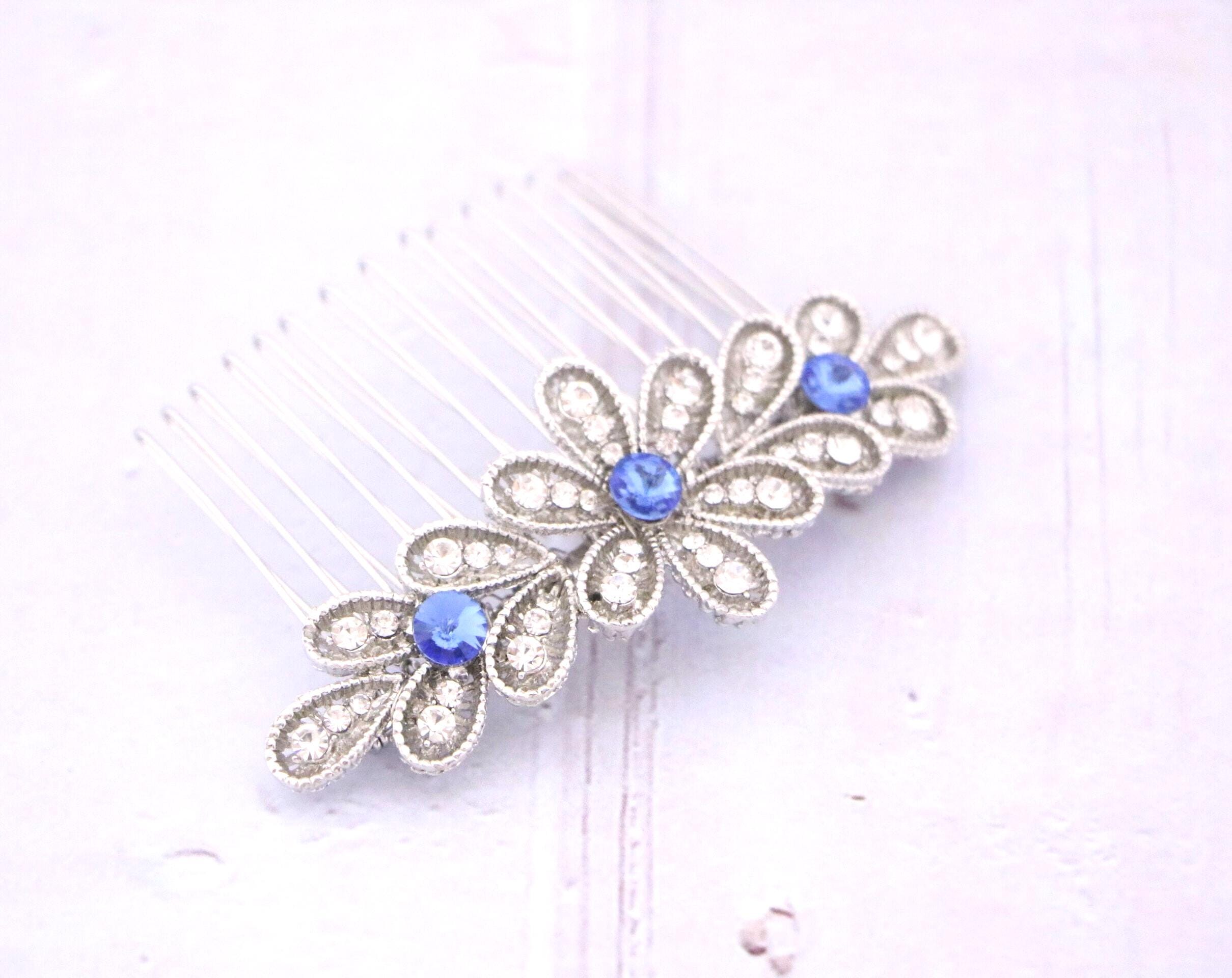 Blue Sapphire Wedding Comb, Rhinestone Comb, Bridal Comb Crystal, Wedding Crystal Hair Comb, Swarvoski Sapphire Blue Wedding Comb