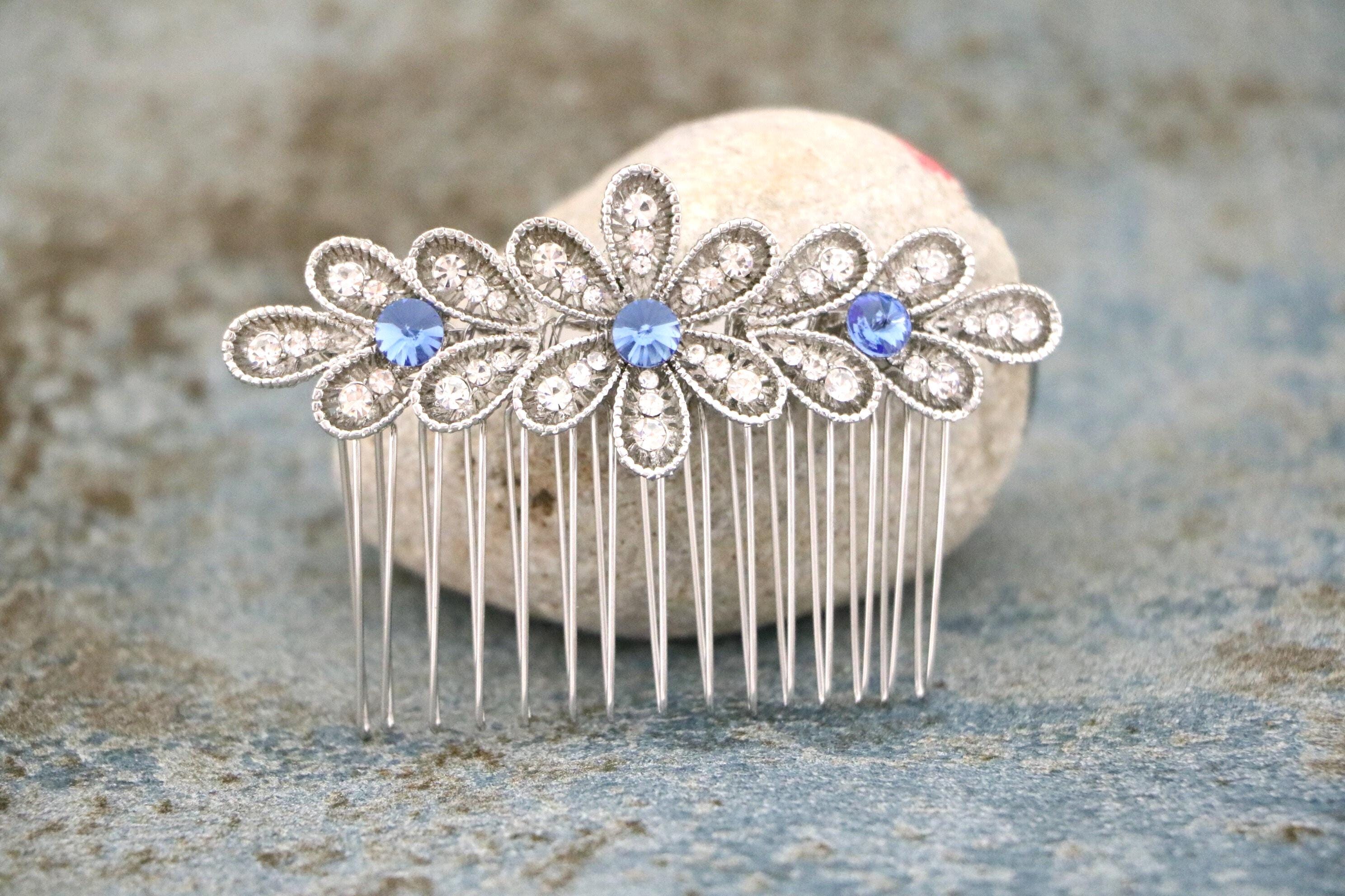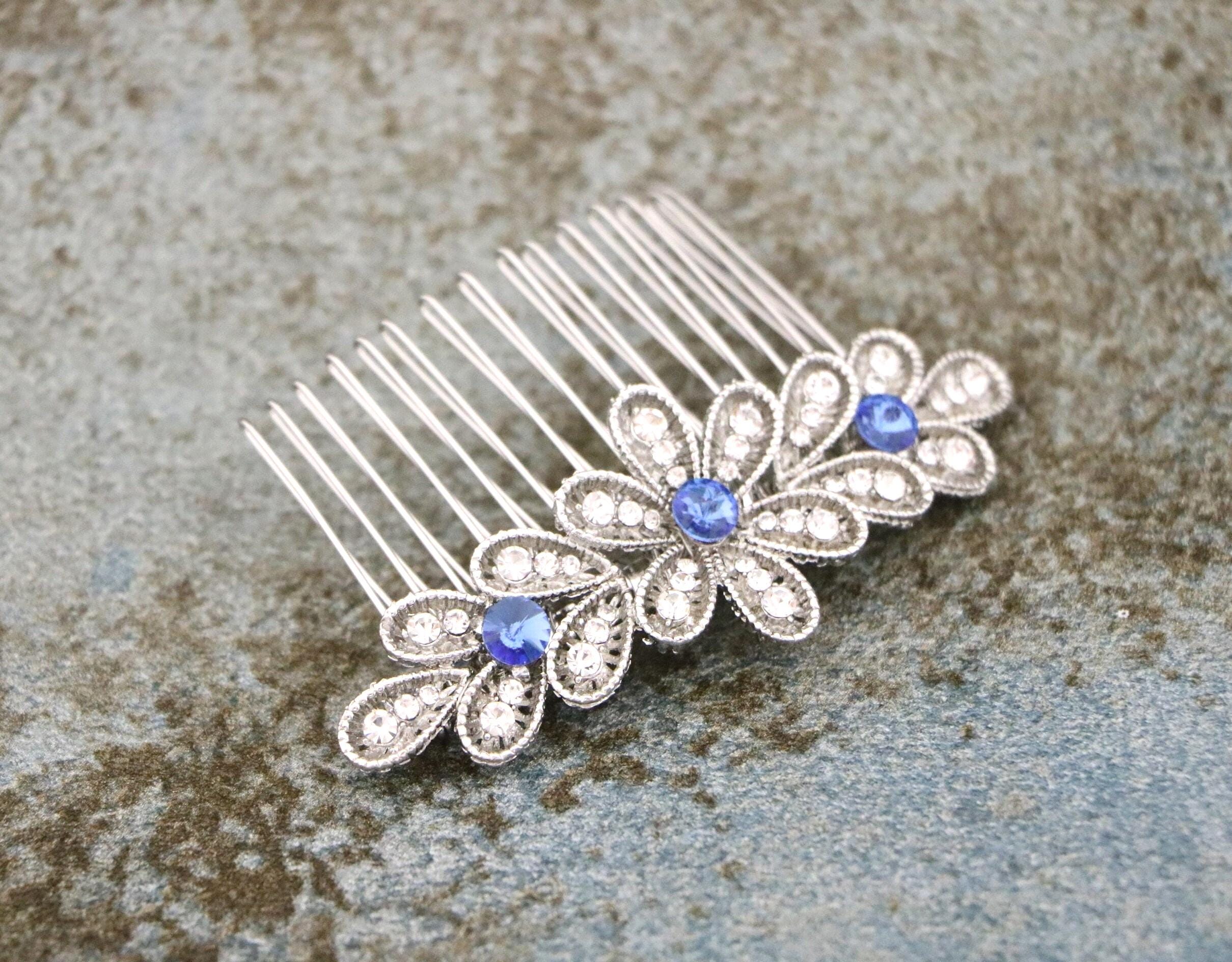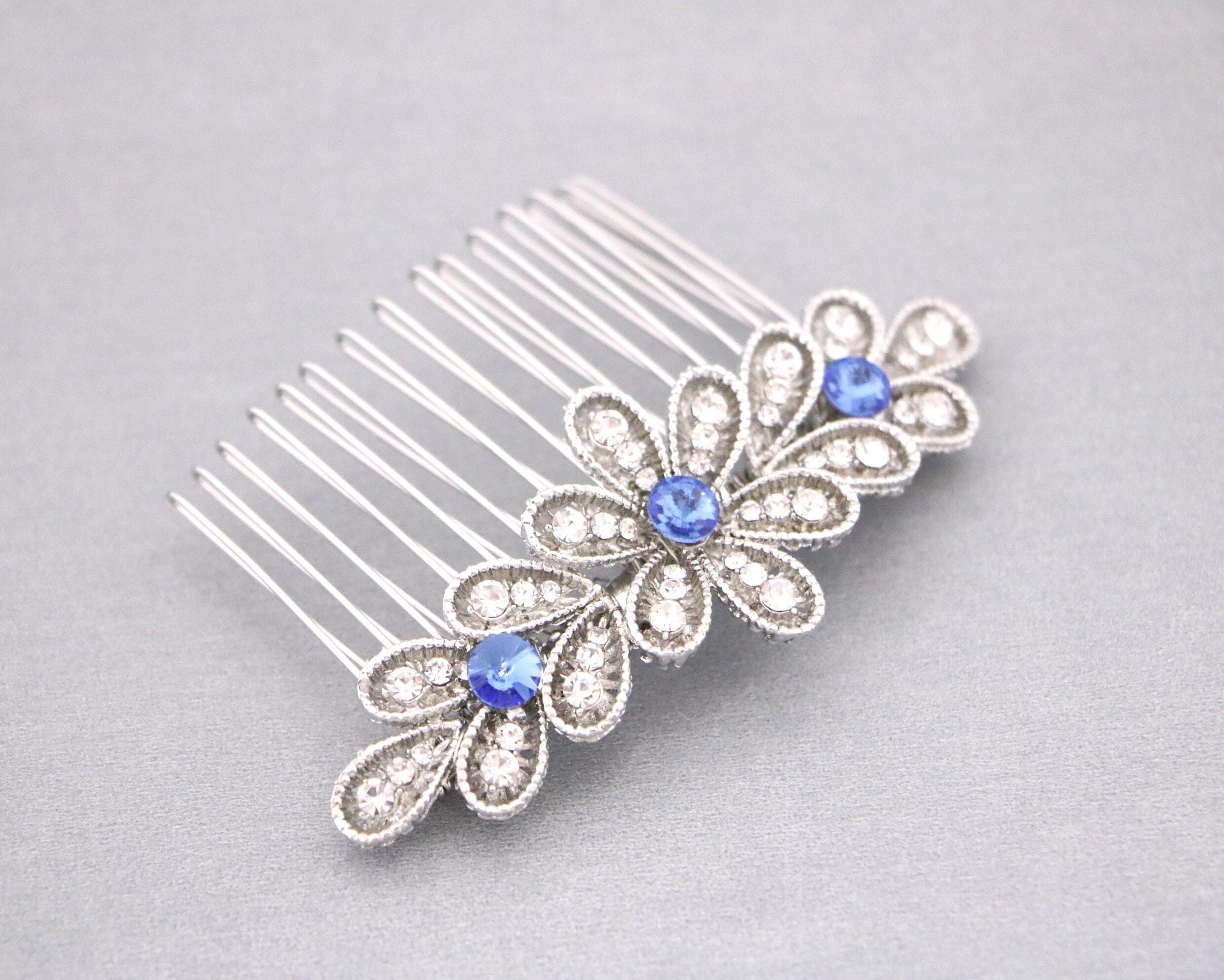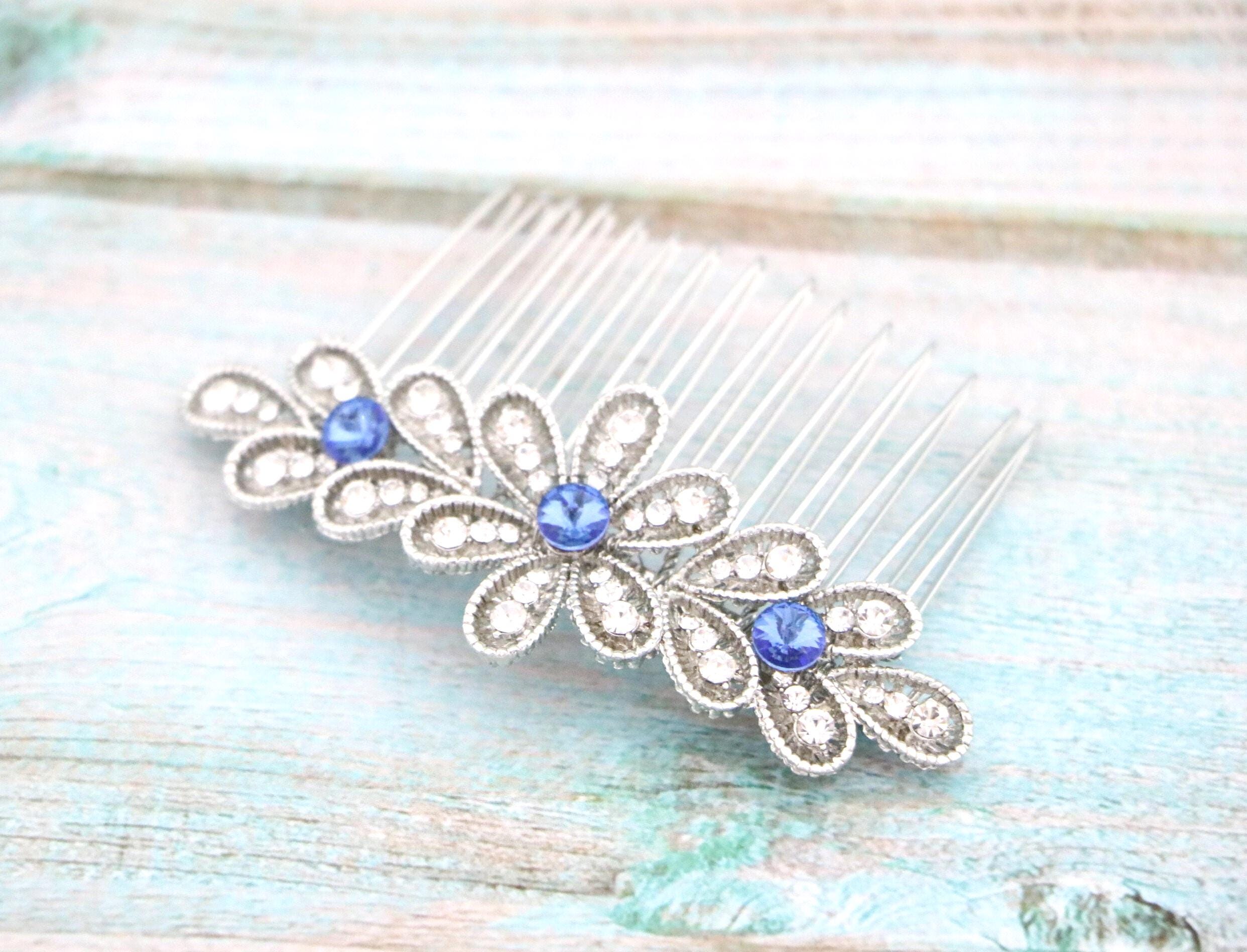 Blue Sapphire Wedding Comb, Rhinestone Comb, Bridal Comb Crystal, Wedding Crystal Hair Comb, Swarvoski Sapphire Blue Wedding Comb
