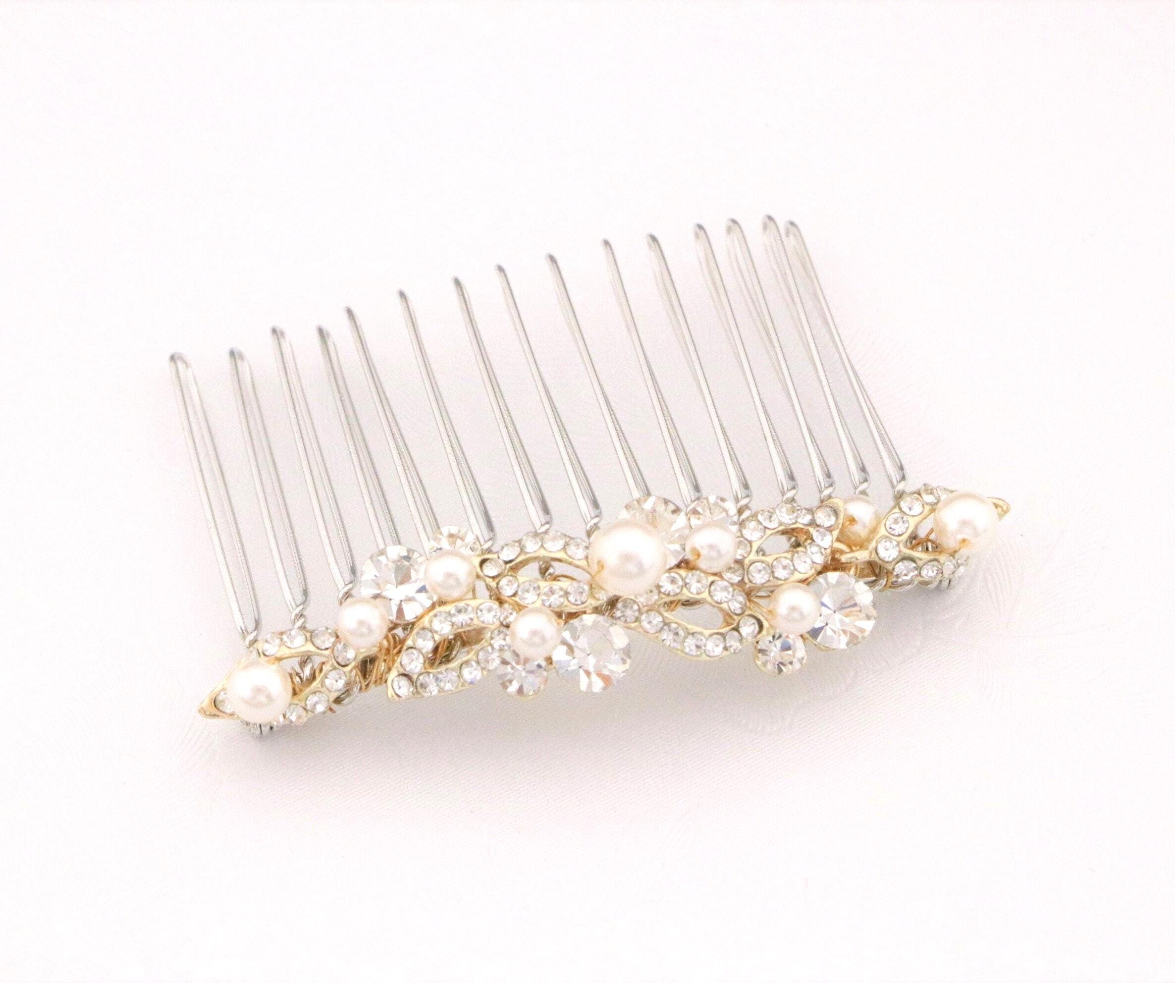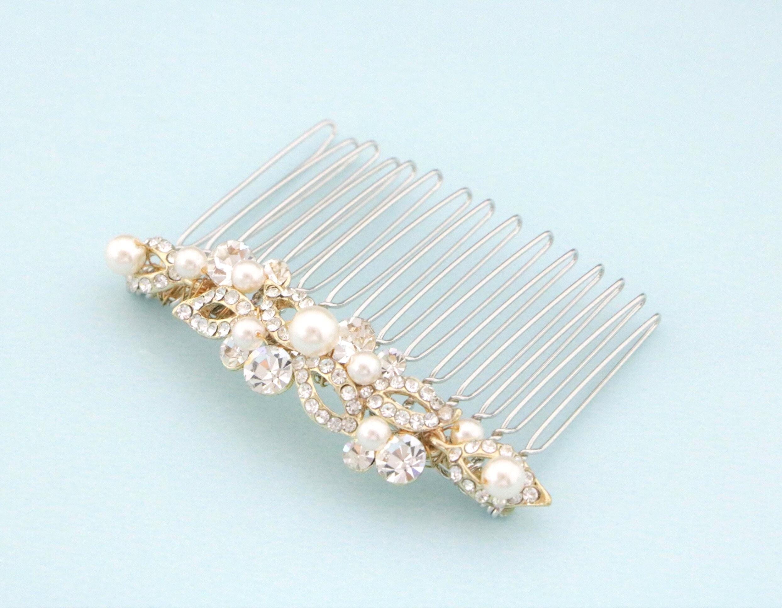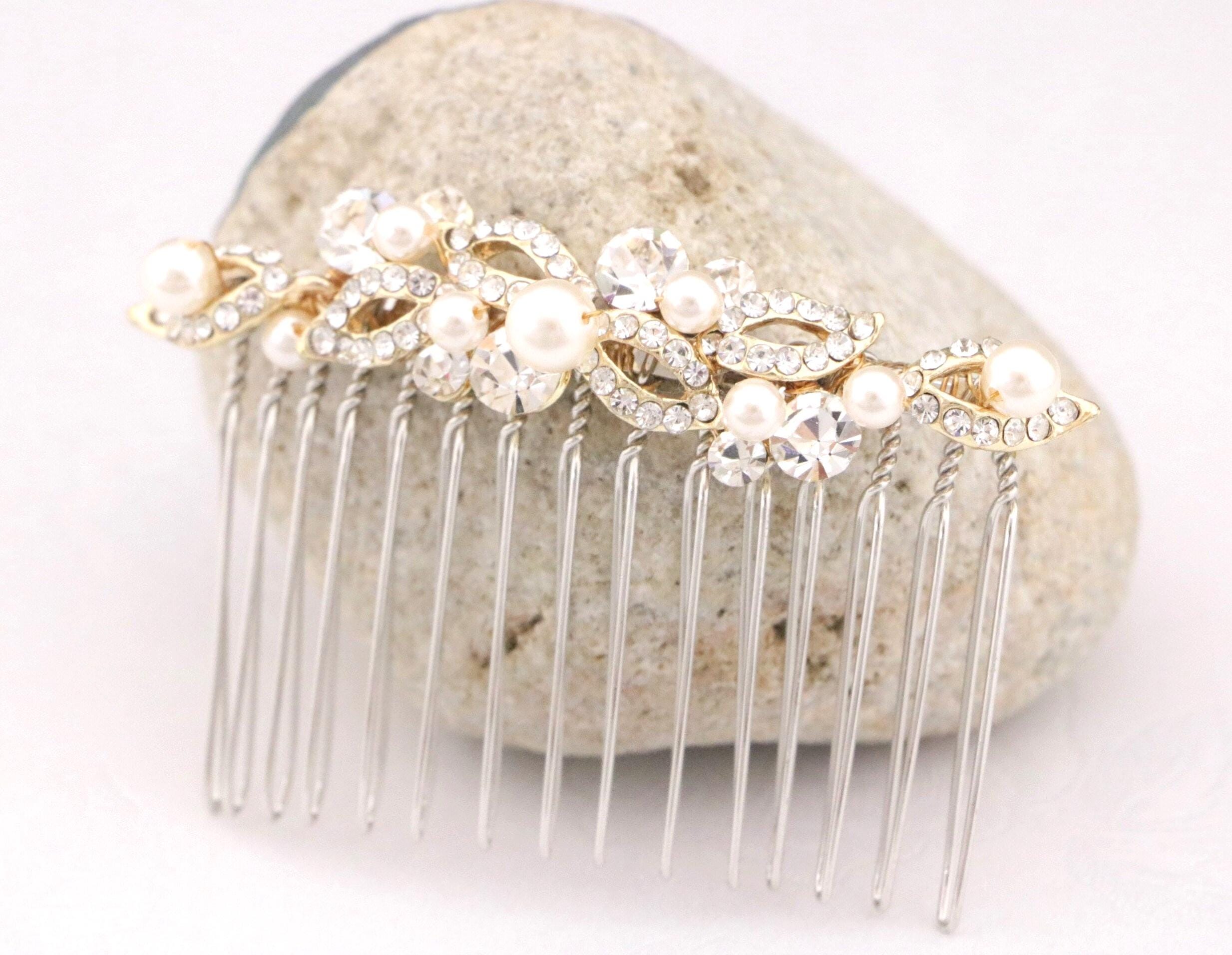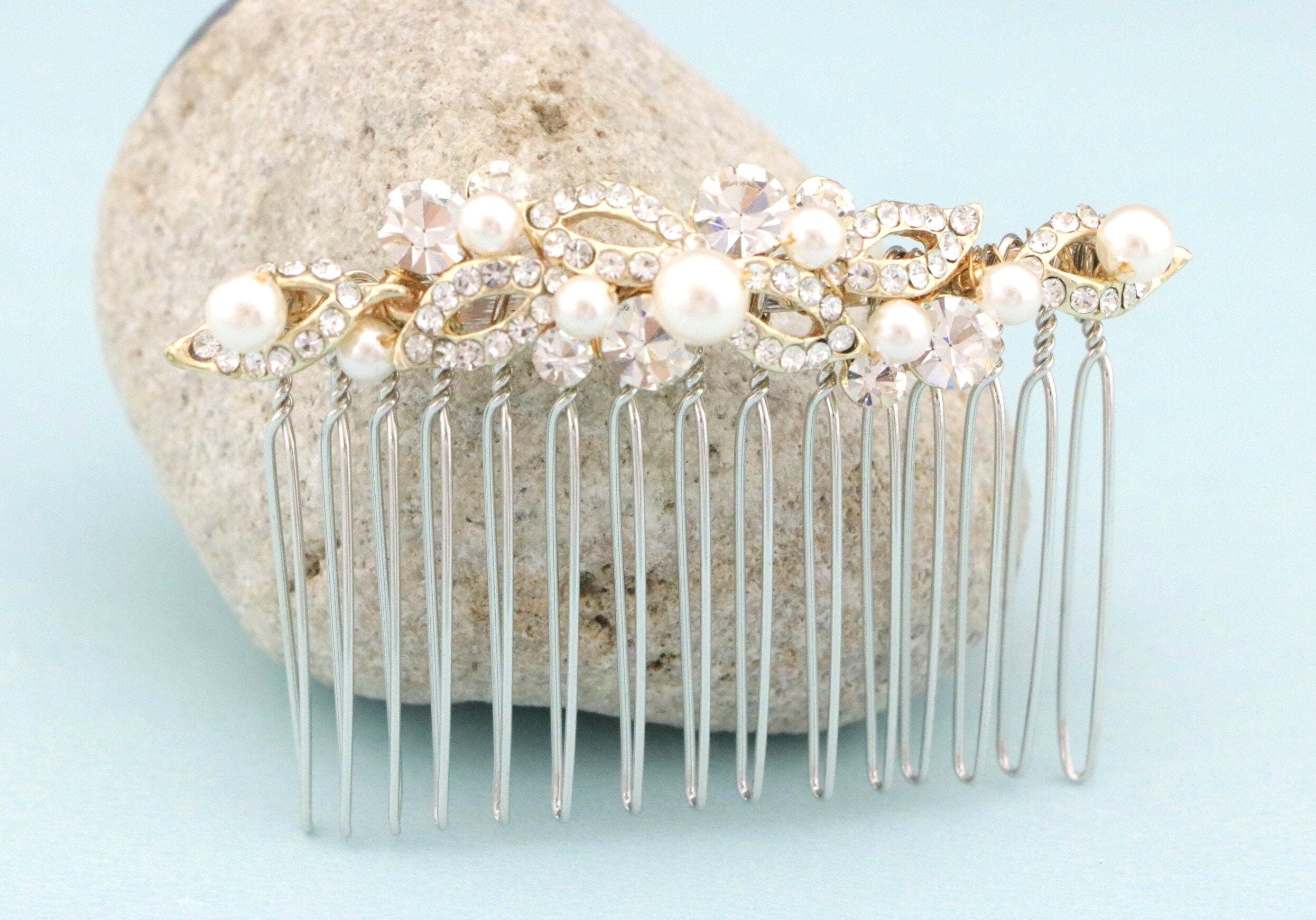 This beautiful Clear rhinestone Swarovski pearl hair comb is a perfect compliment for the wedding party and can easily fit into any hair style.