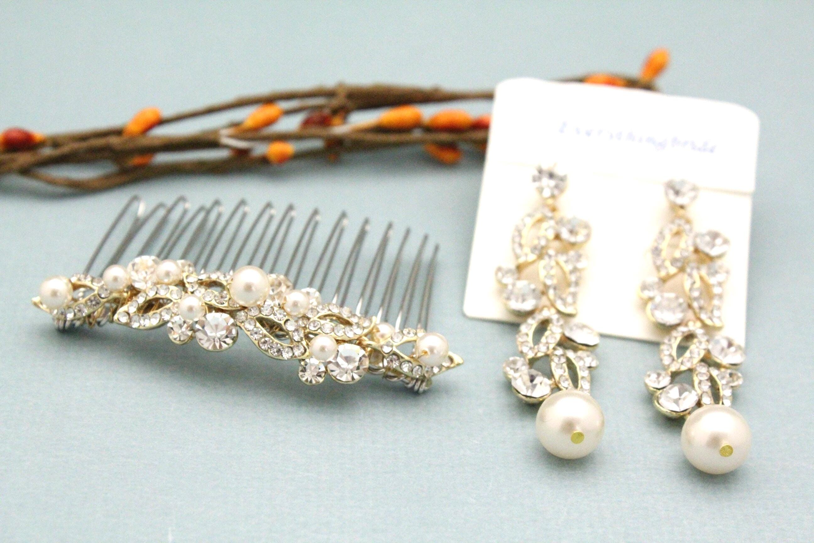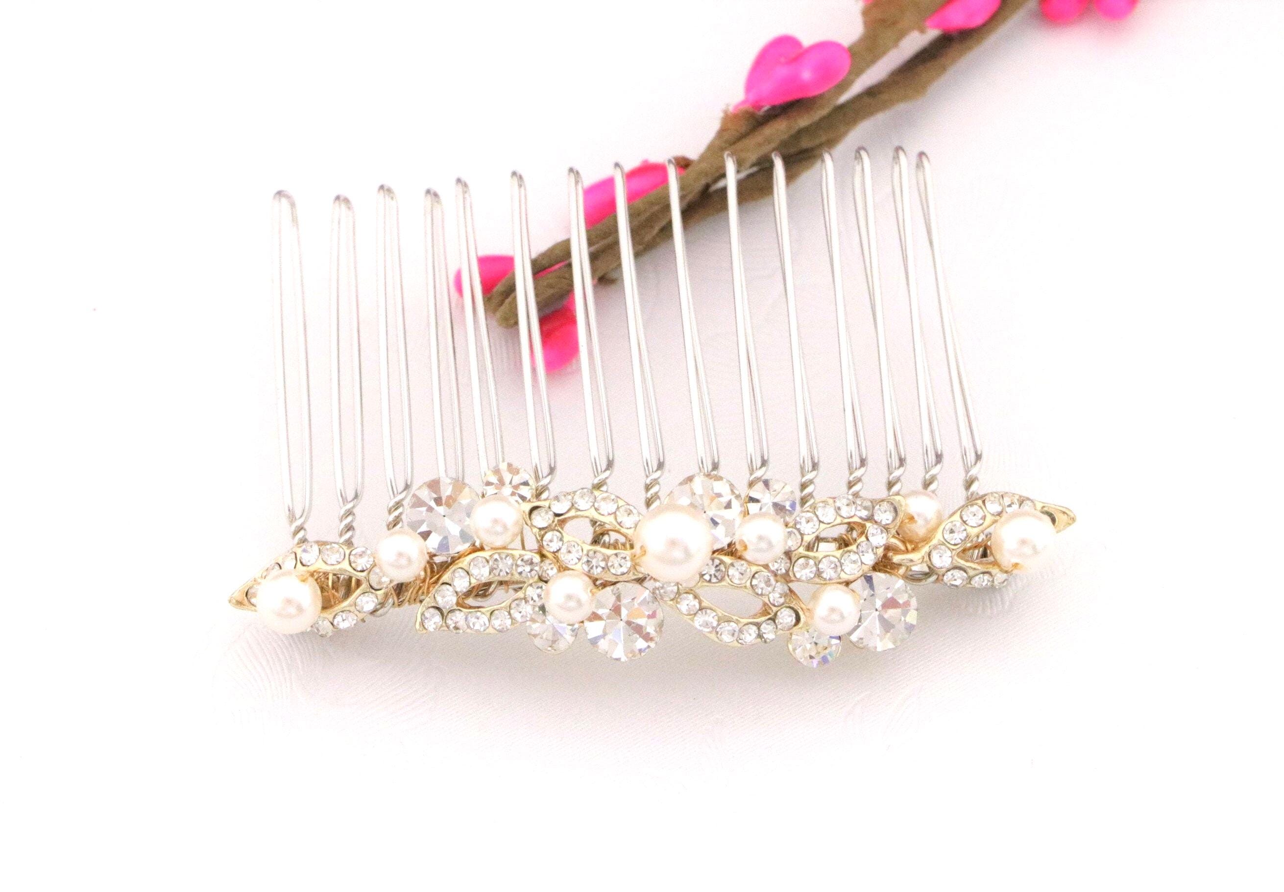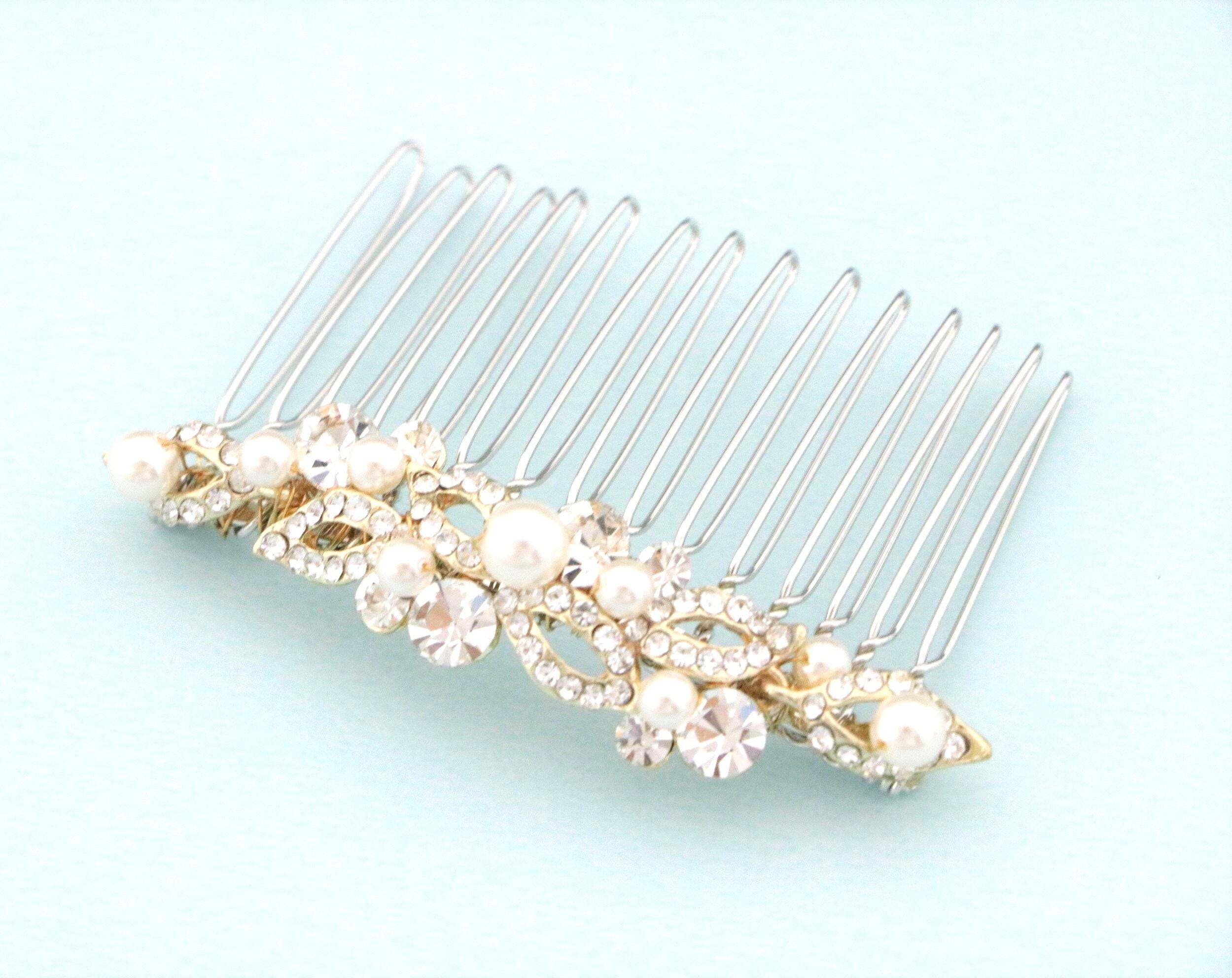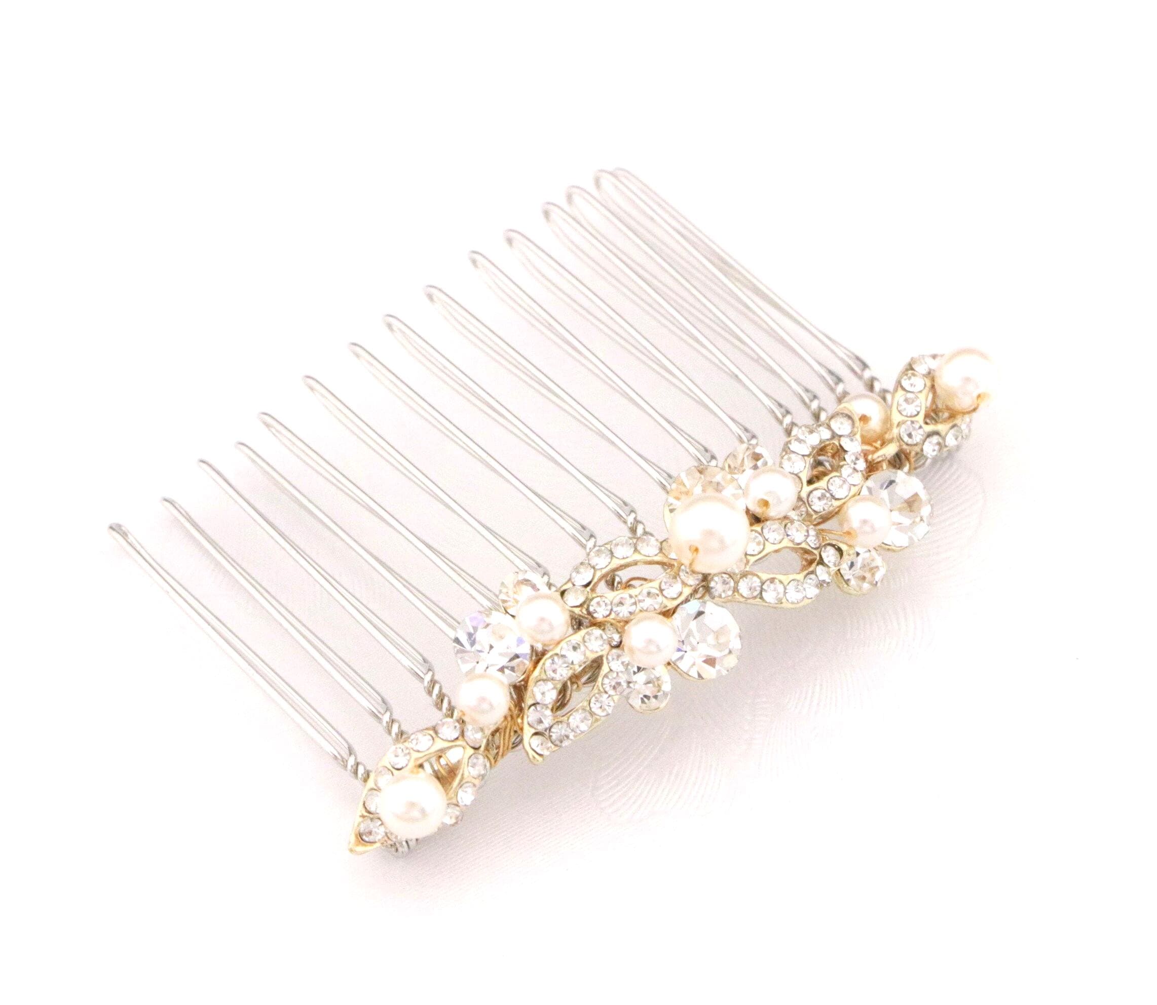 This beautiful Clear rhinestone Swarovski pearl hair comb is a perfect compliment for the wedding party and can easily fit into any hair style.
