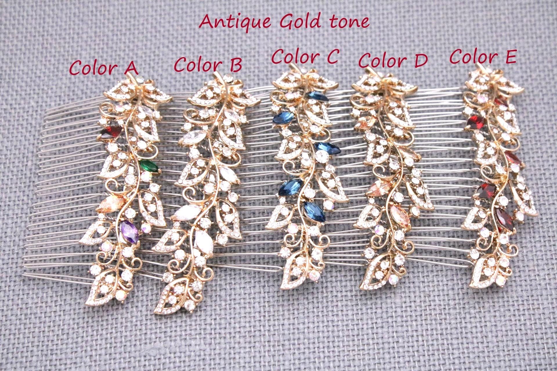 This sparkle rhinestone hair comb features a very beautiful vintage style rhinestone piece. Rhinestone piece can set on a metal barrette or on a metal hair comb. The rhinestone part measures approximately 3.75 X 1 inches.