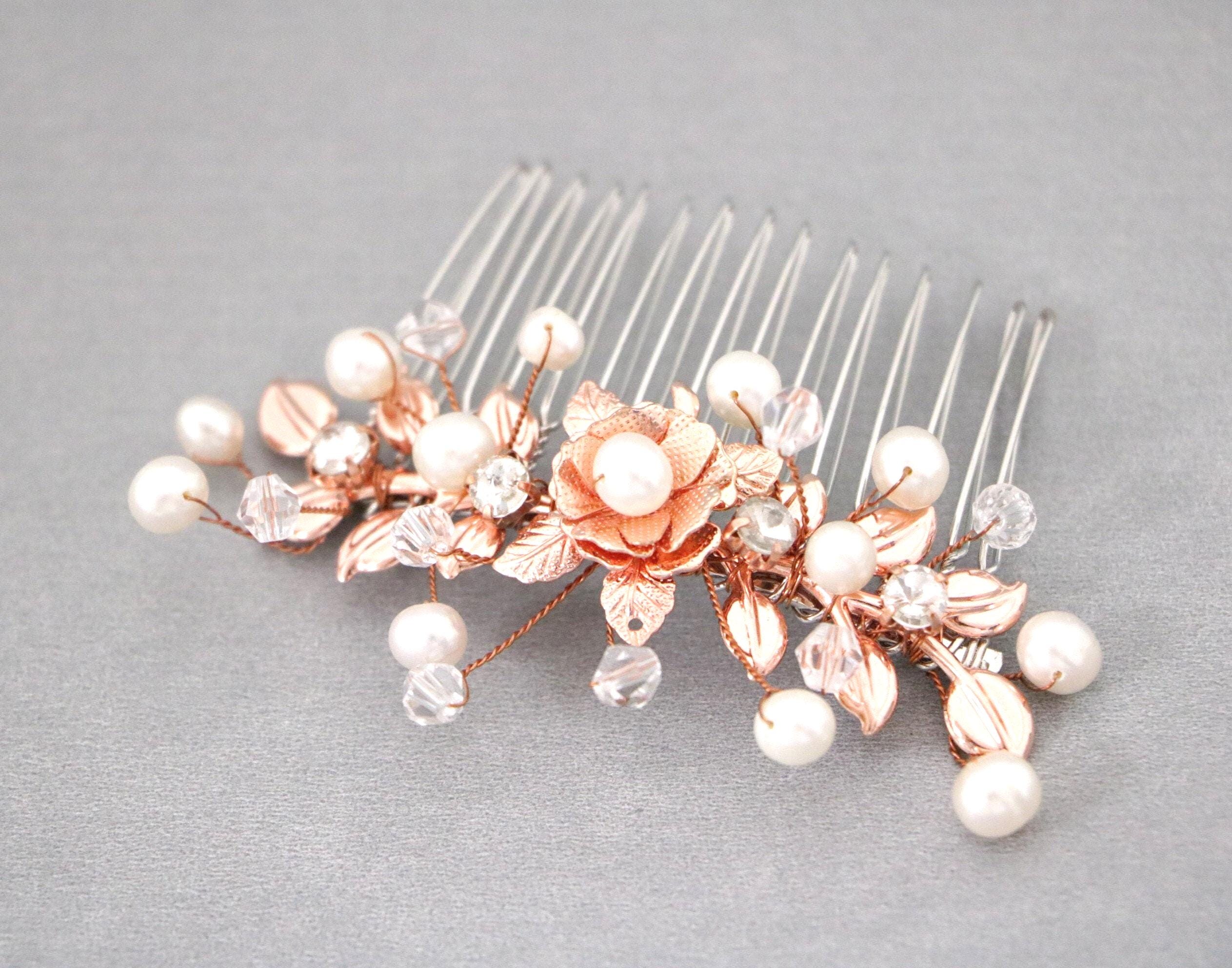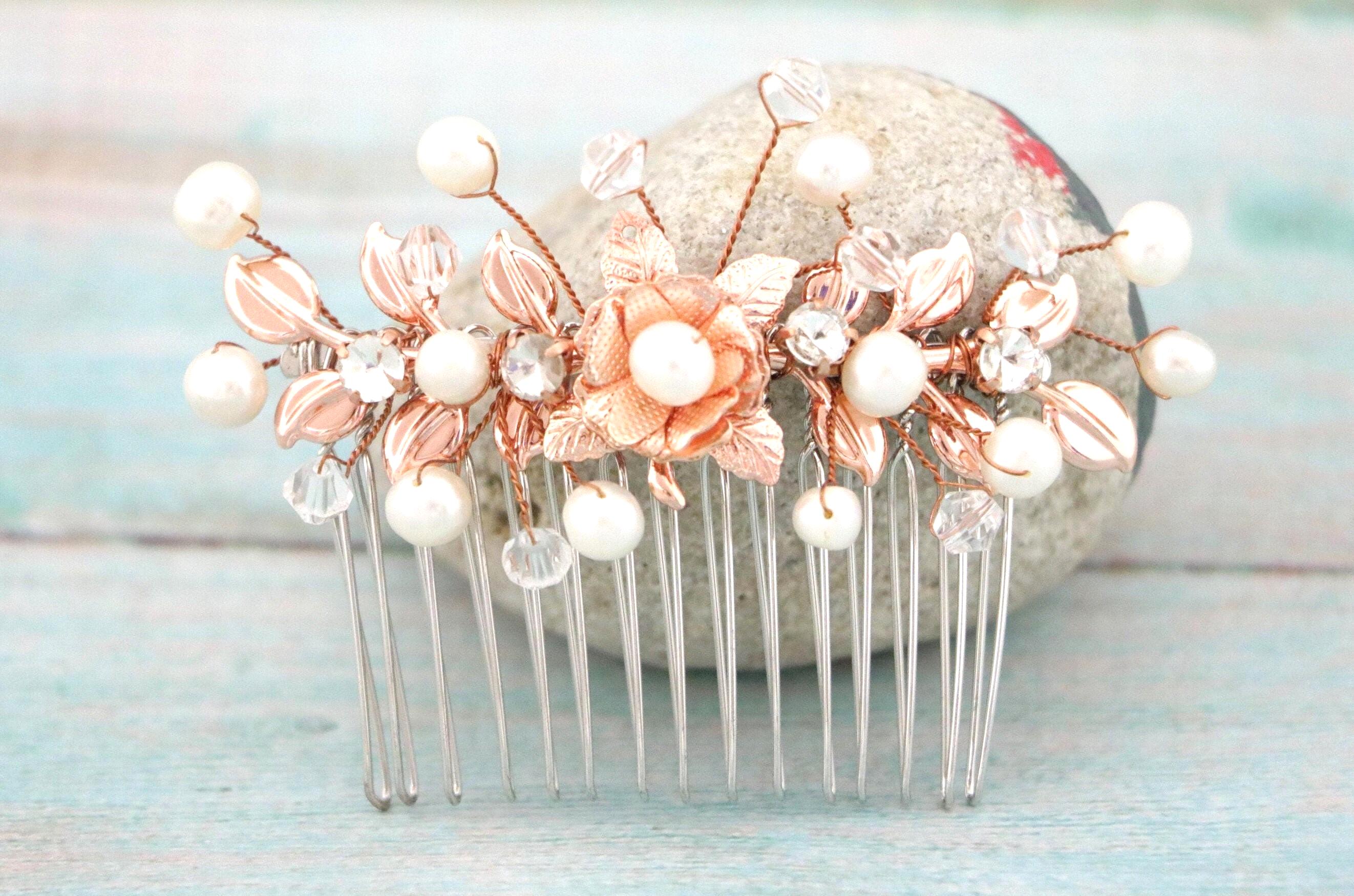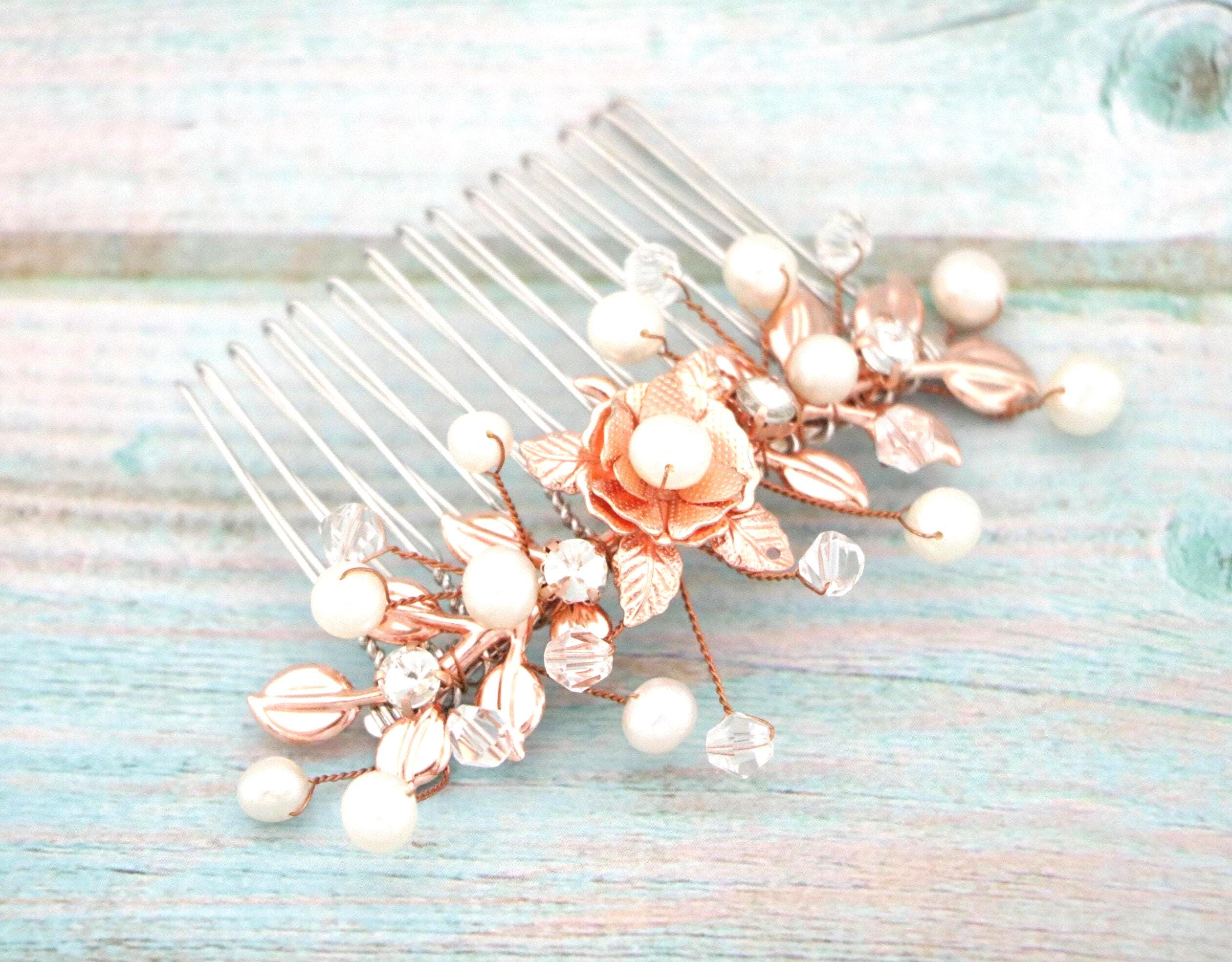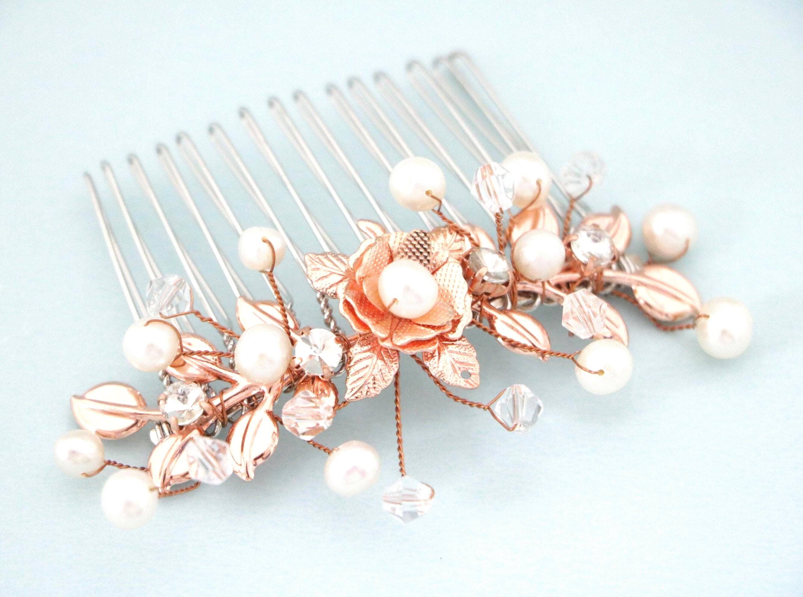 Bridal Comb Rose Gold, Rhinestone Comb, Bridal Comb Crystal, Wedding Crystal Hair Comb, Hair Comb, Wedding Headpiece Rose Gold