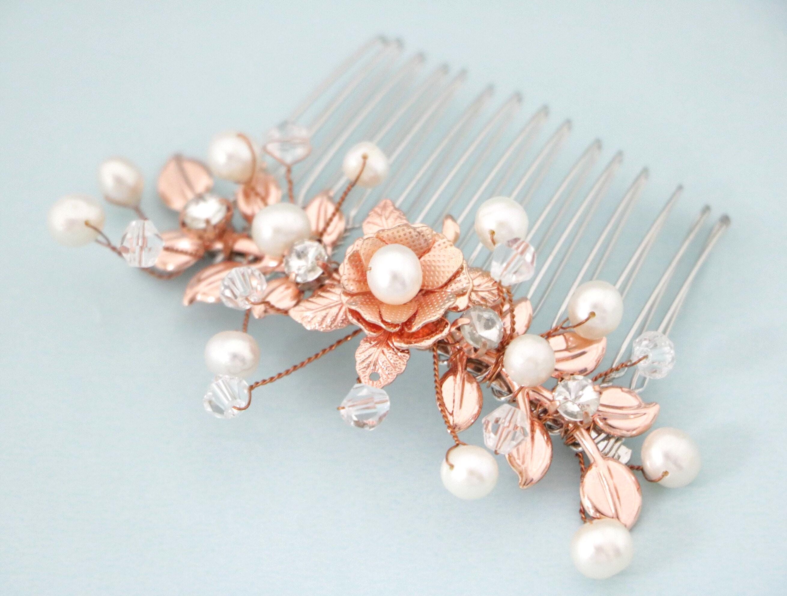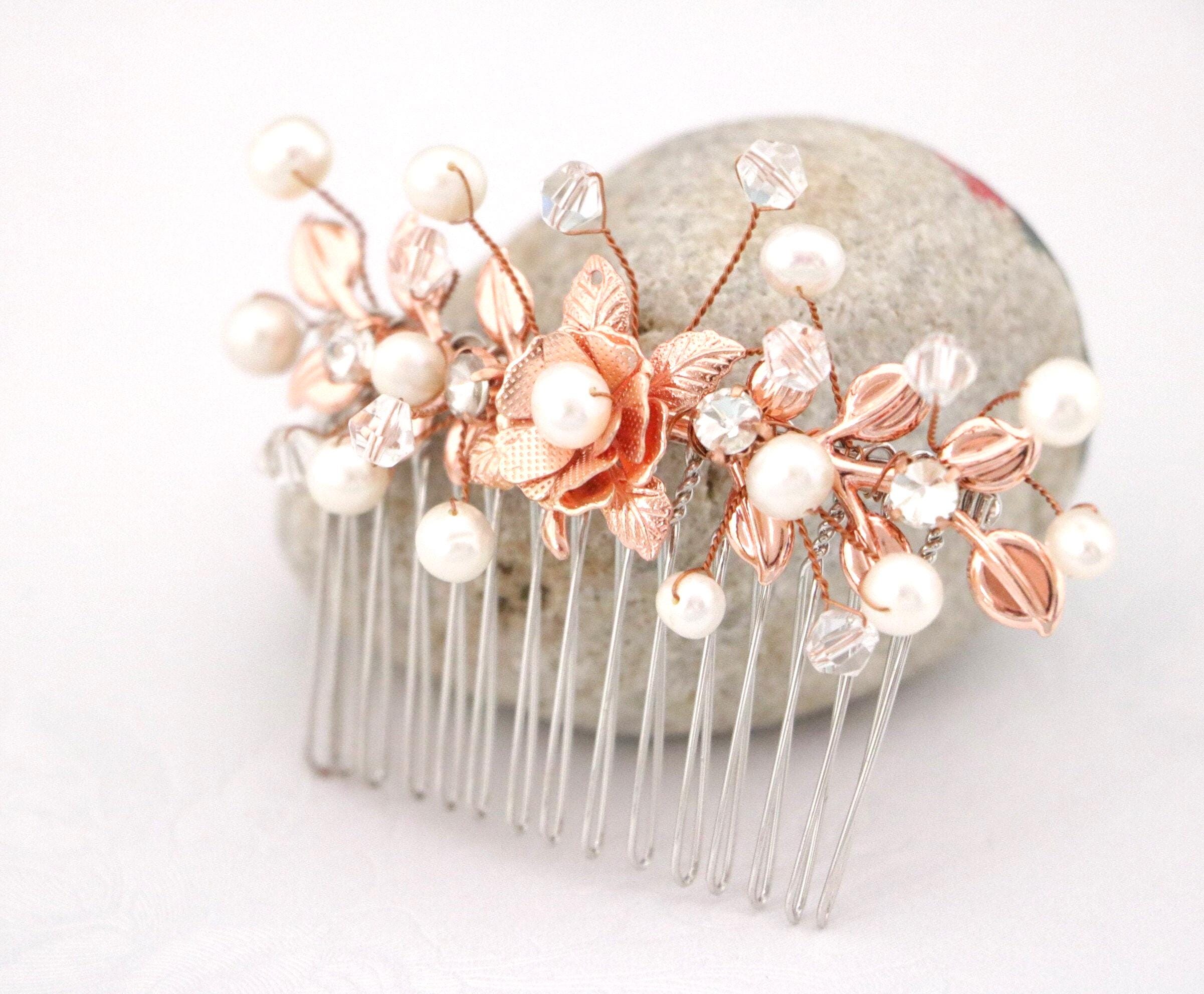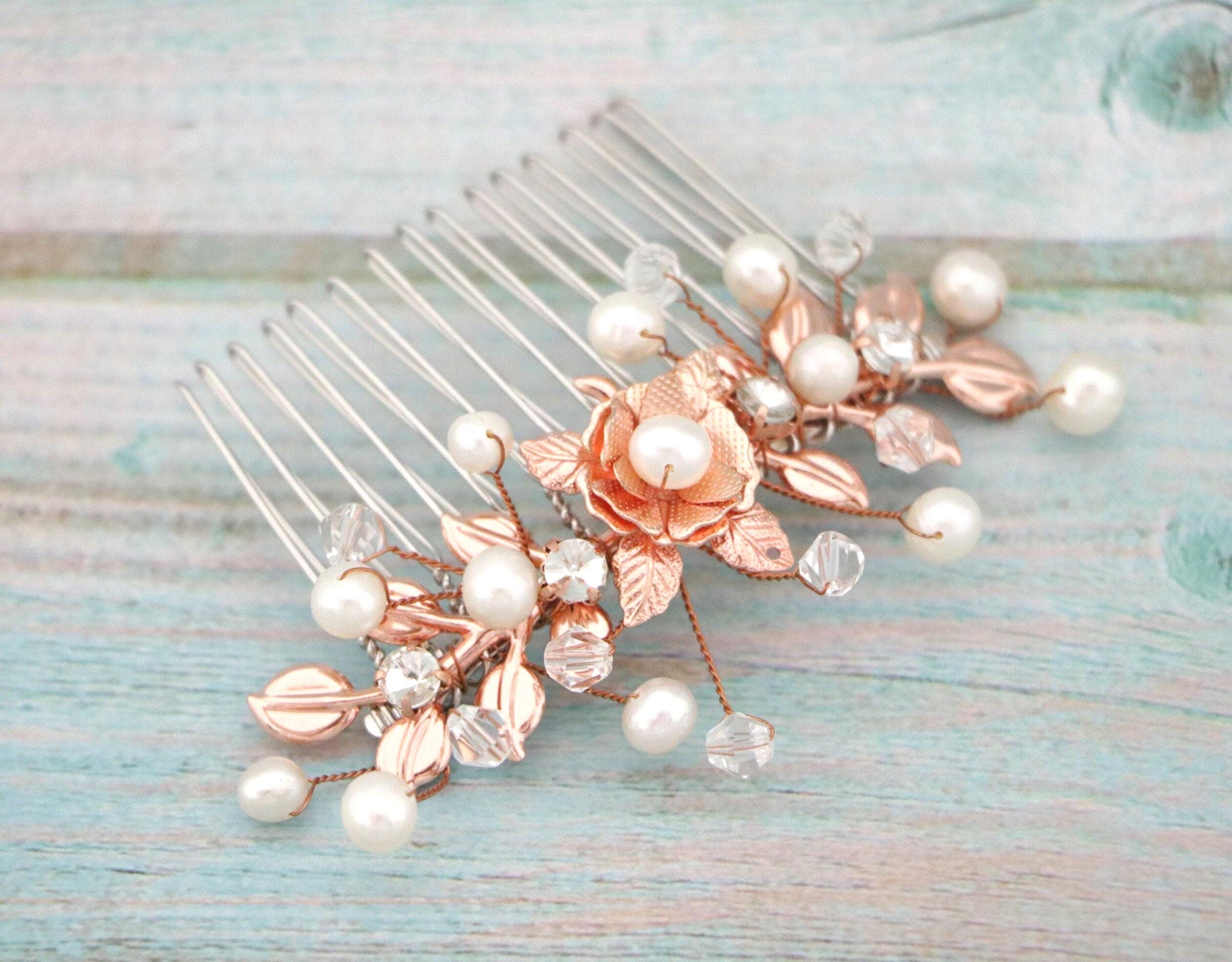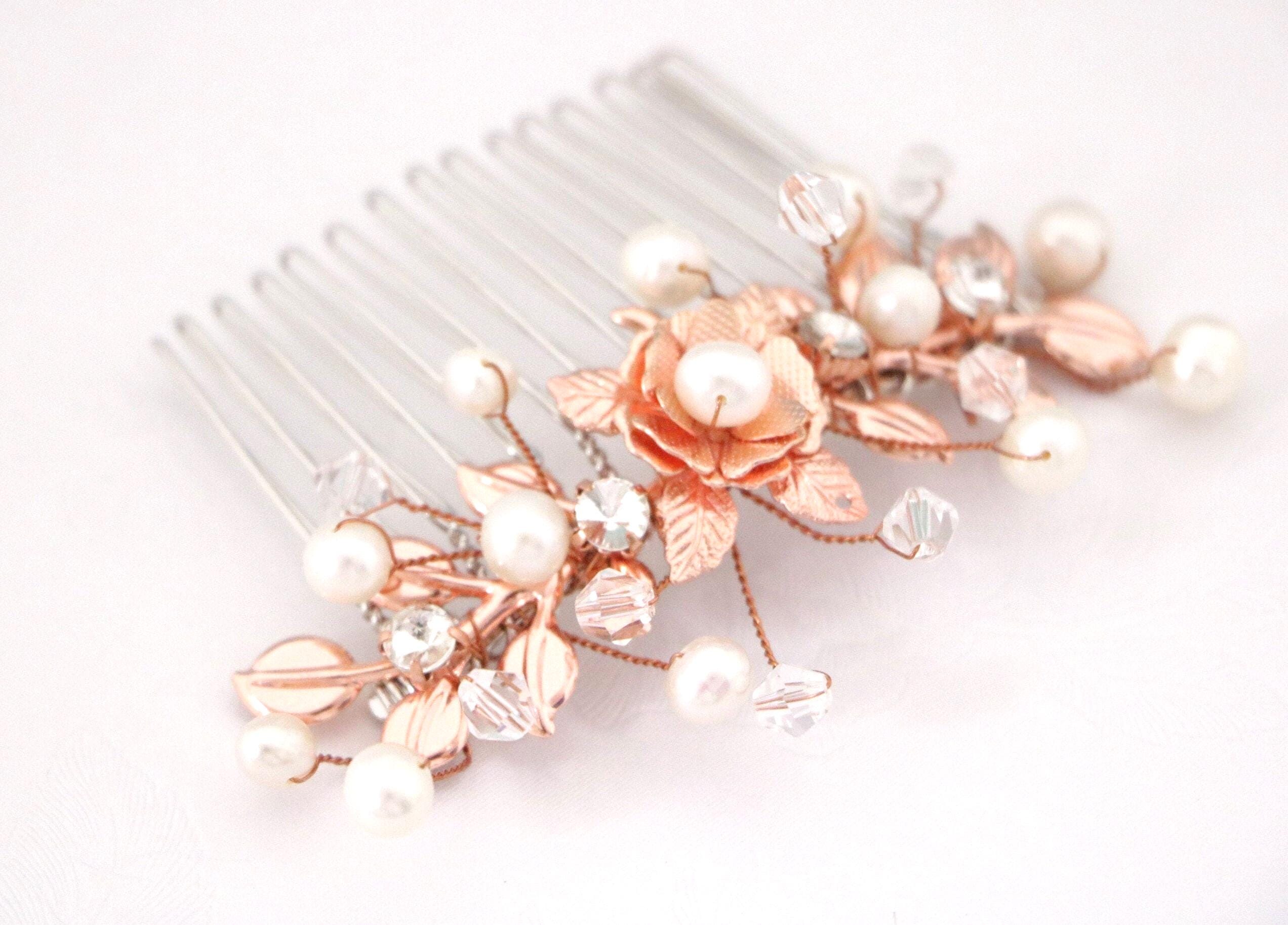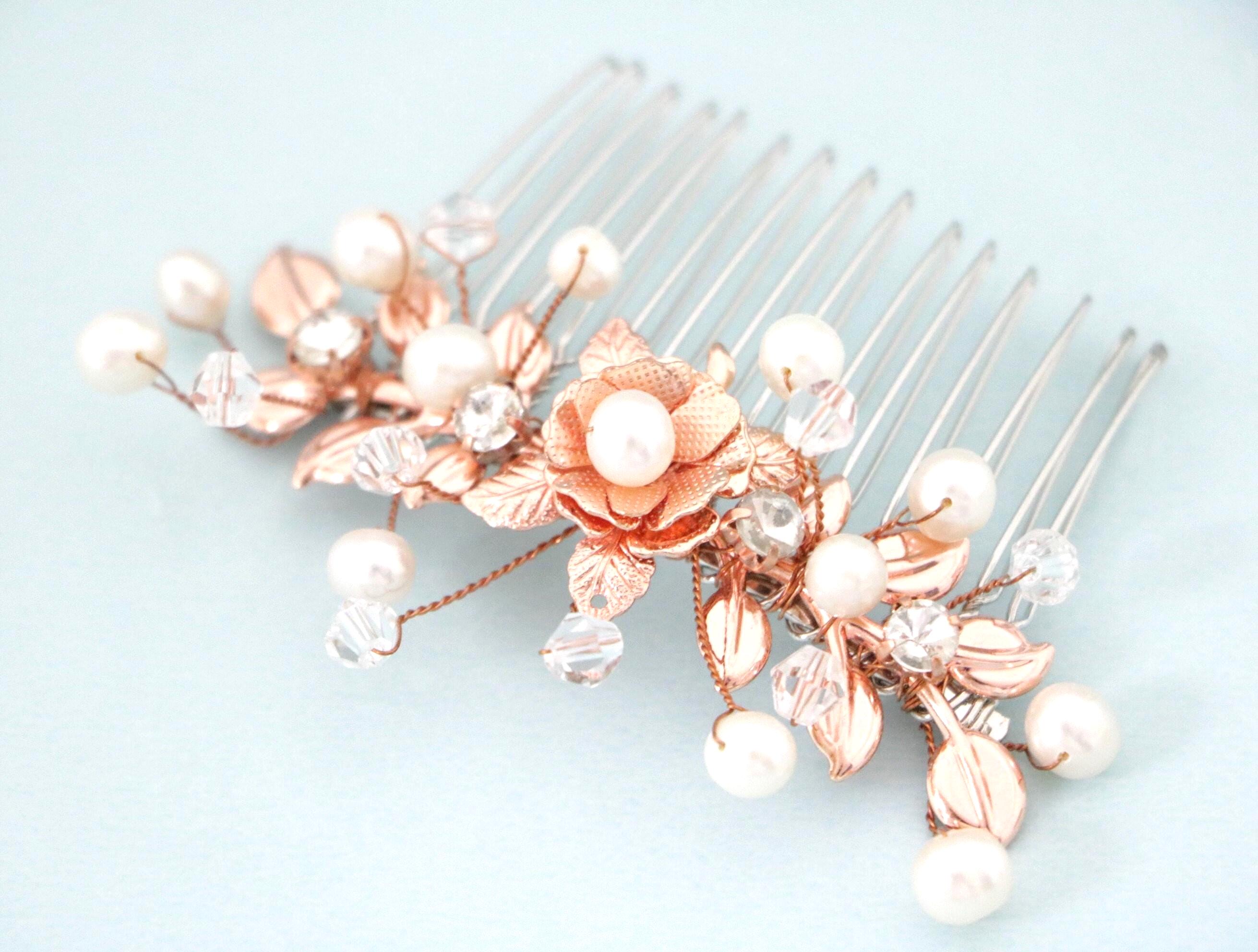 Bridal Comb Rose Gold, Rhinestone Comb, Bridal Comb Crystal, Wedding Crystal Hair Comb, Hair Comb, Wedding Headpiece Rose Gold
