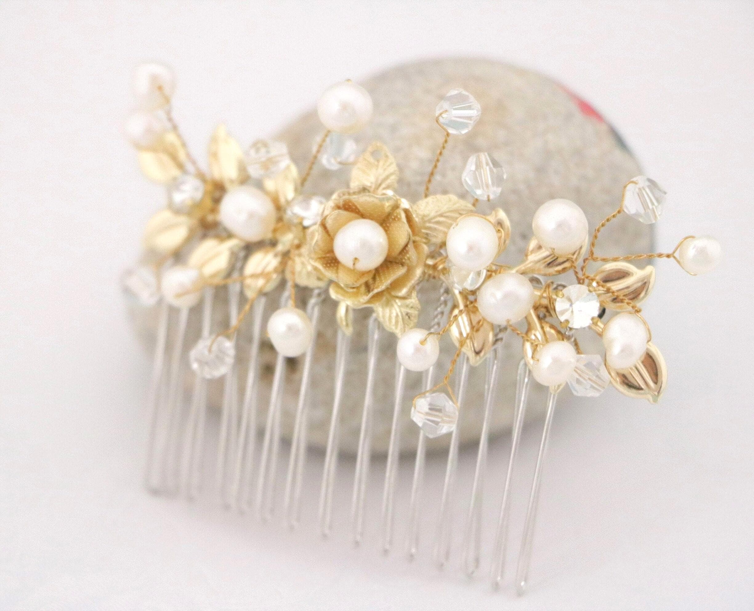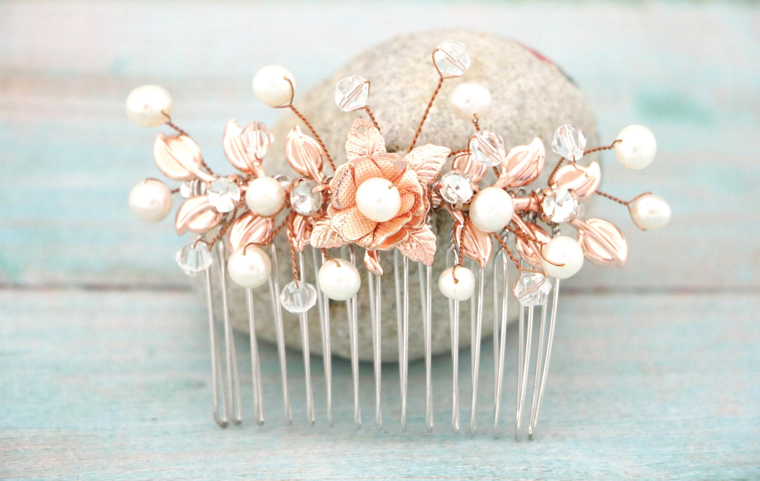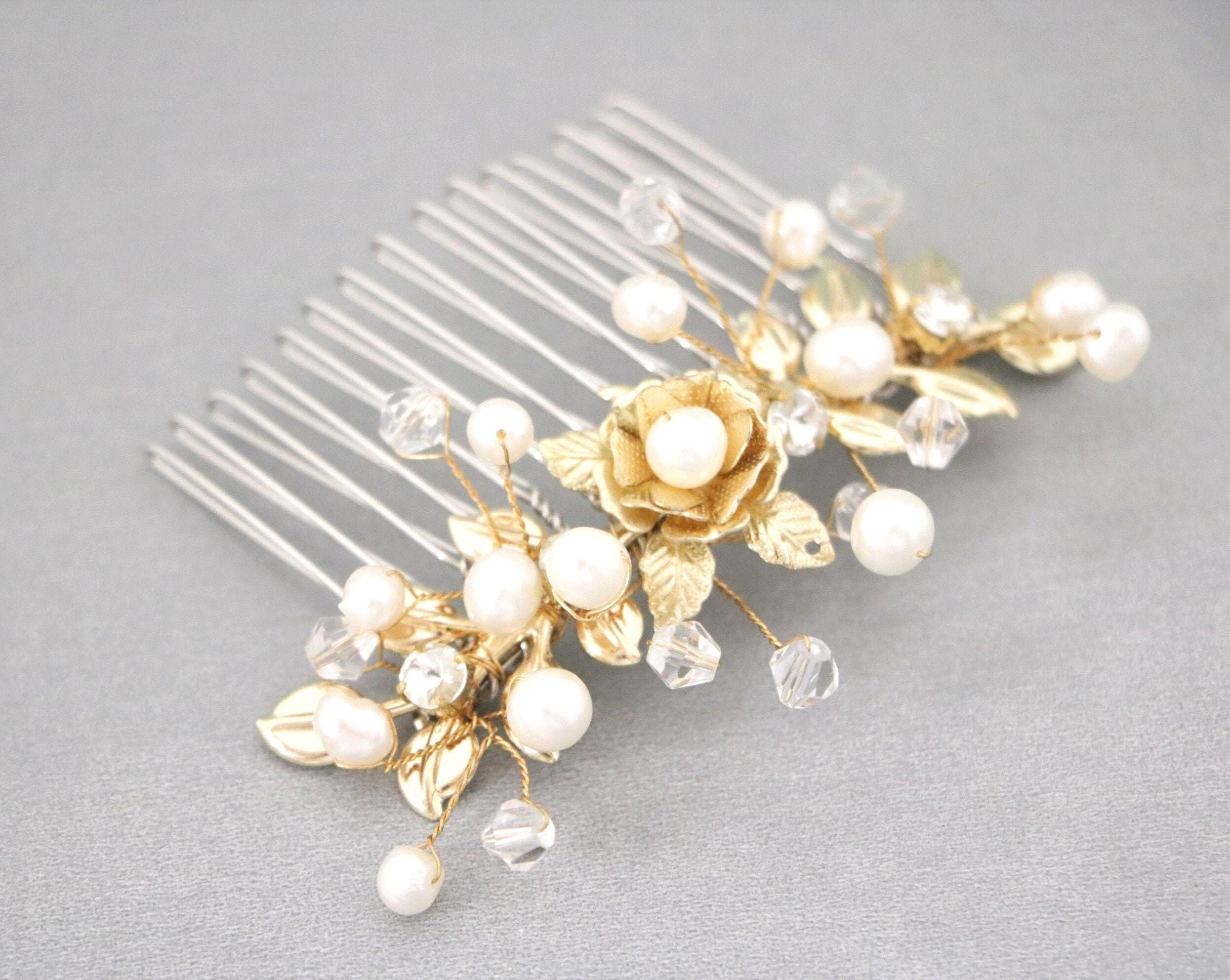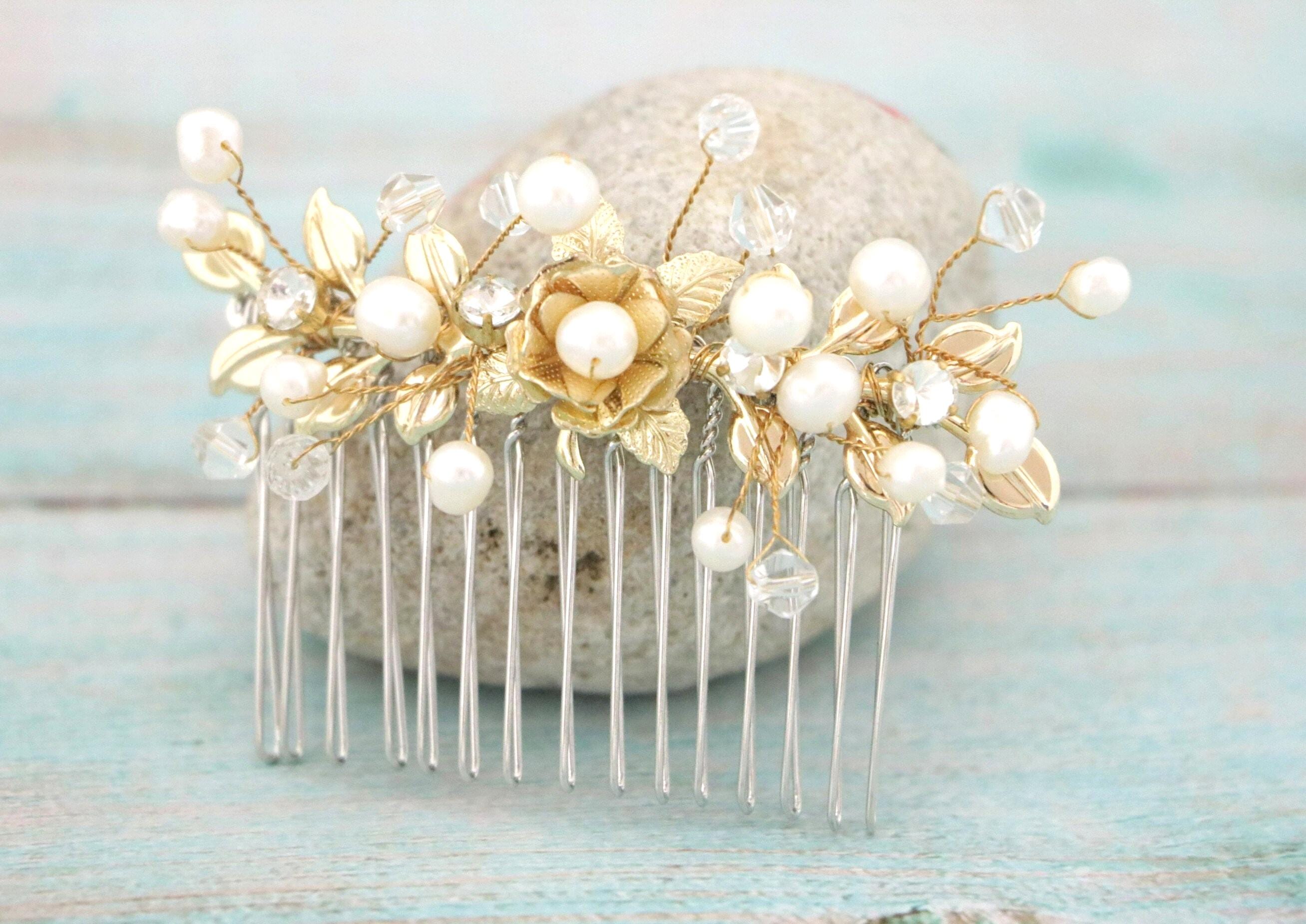Wedding Hair Accessory Boho Bridal Hair Comb crystal pearl with leaves and flowers