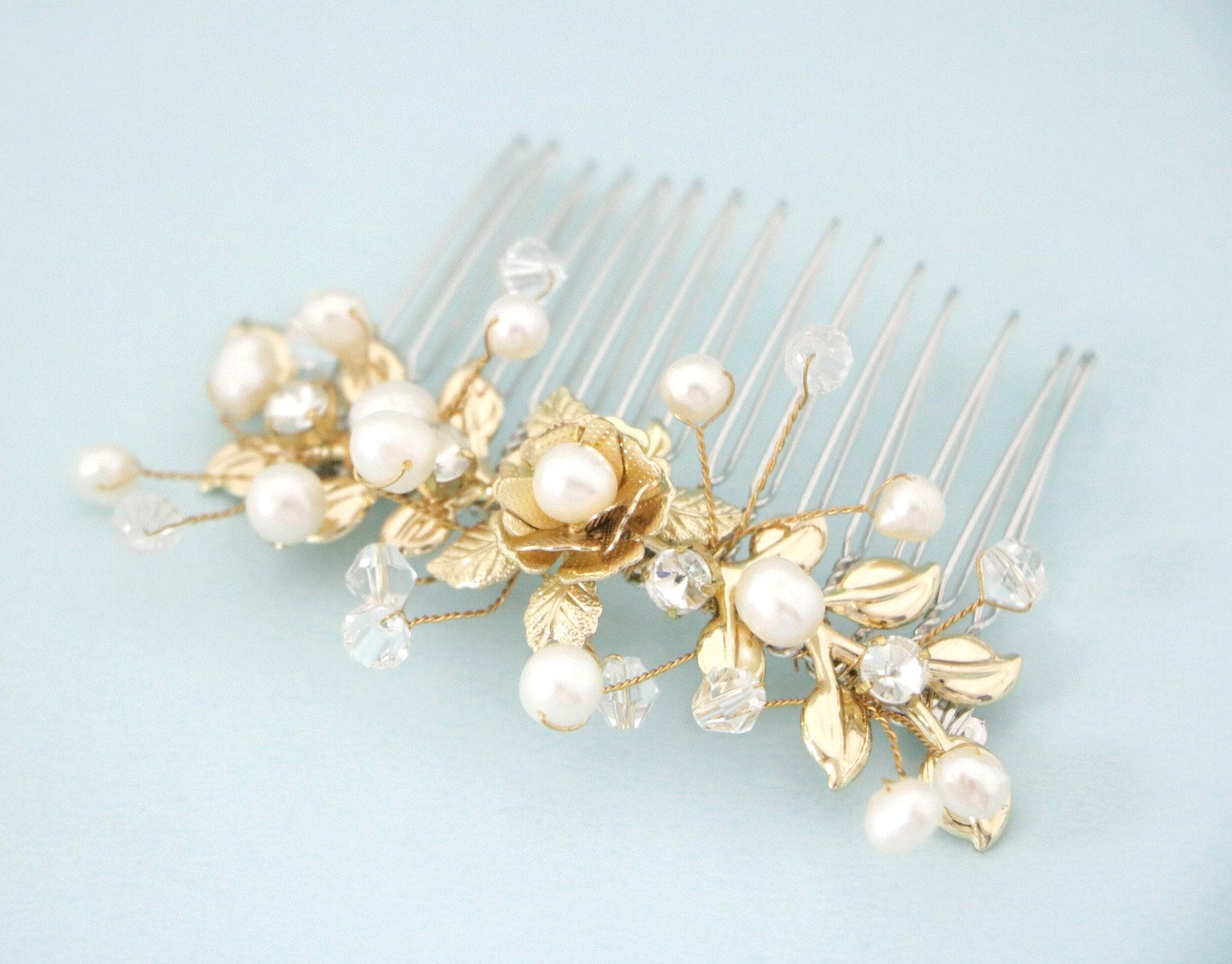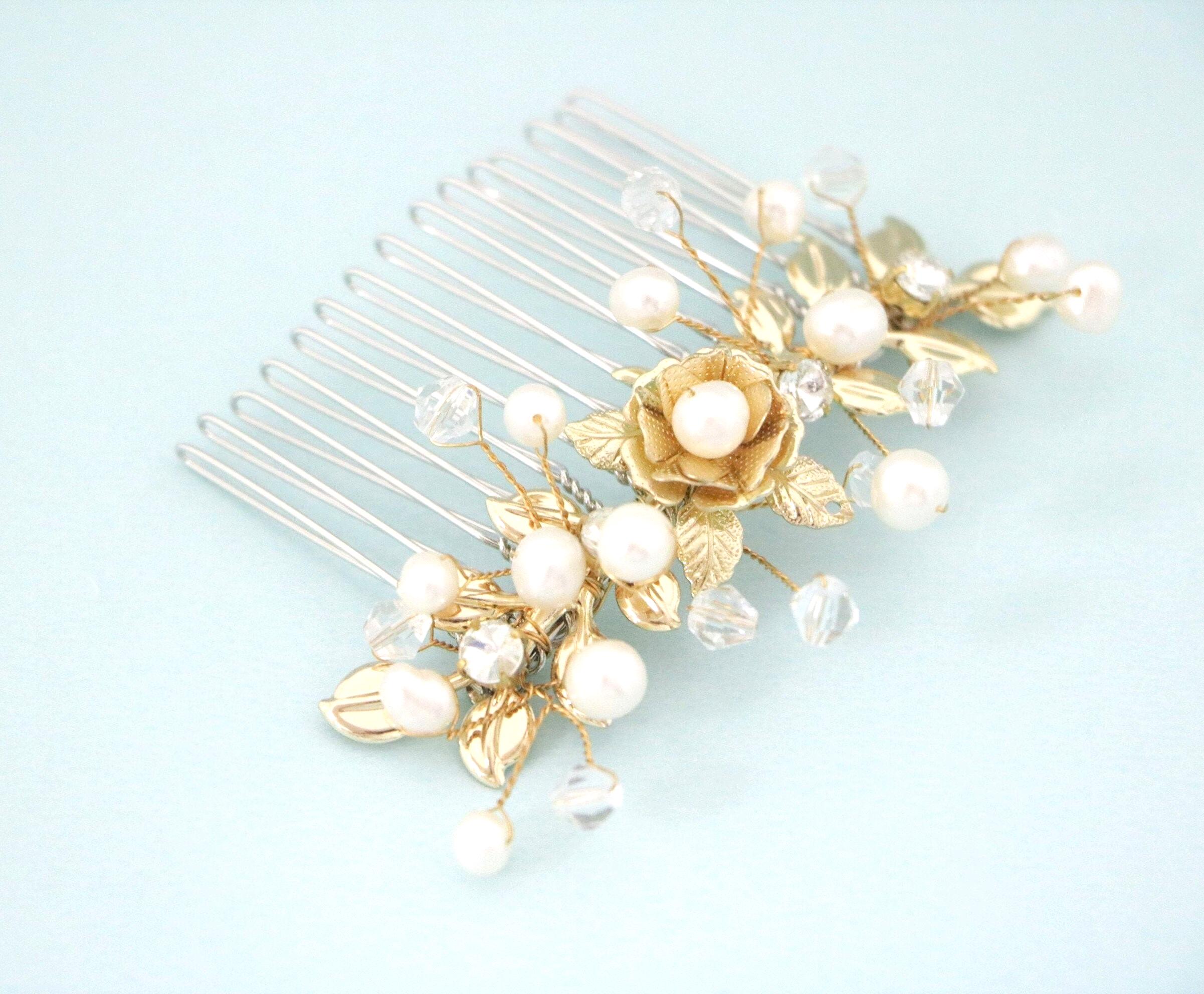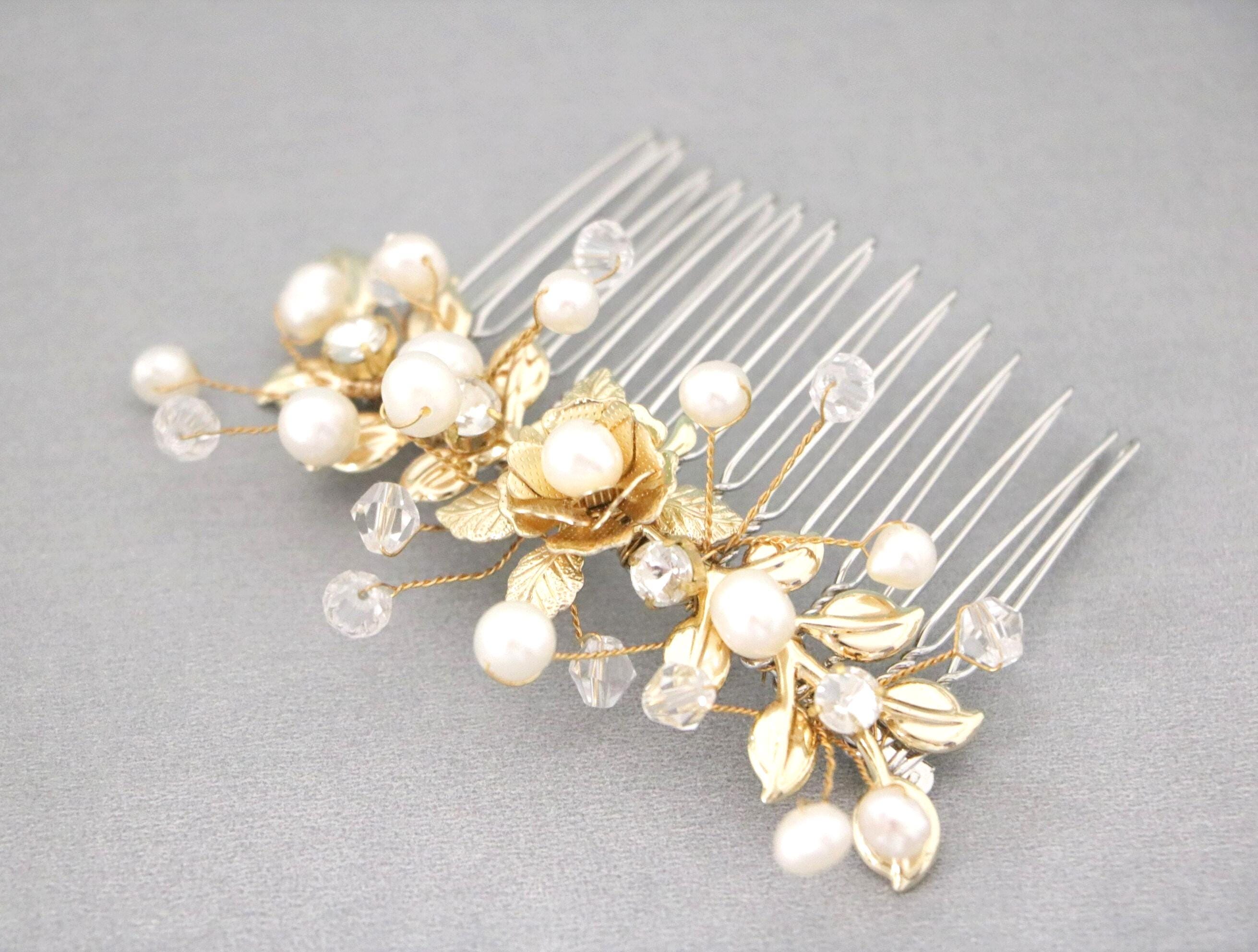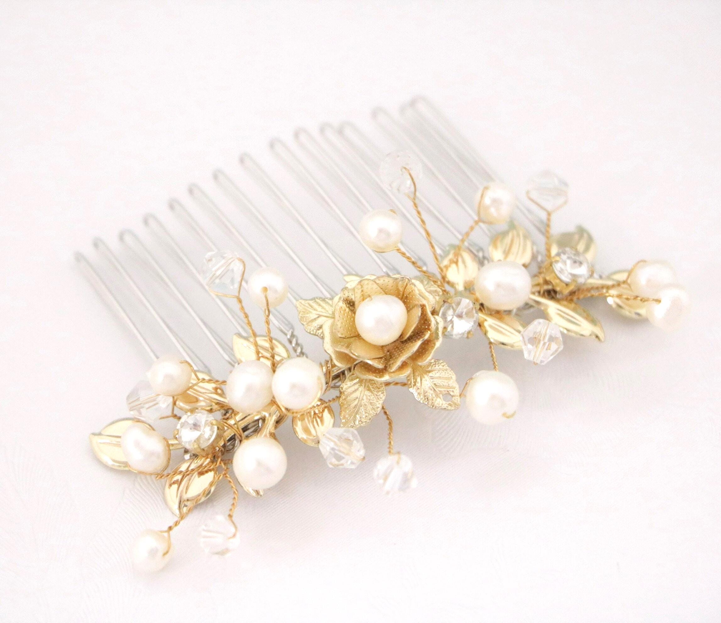 Wedding Hair Accessory Boho Bridal Hair Comb crystal pearl with leaves and flowers