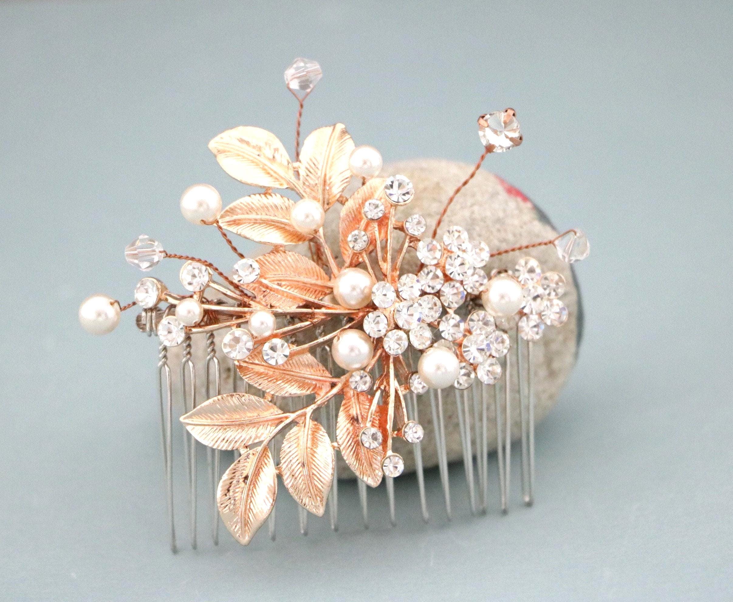Rose Gold Swarovski Bridal Clip, Bridal Comb Crystal, Wedding Crystal Hair Comb, Wedding Accessory, Rose Gold Pearl Clip
