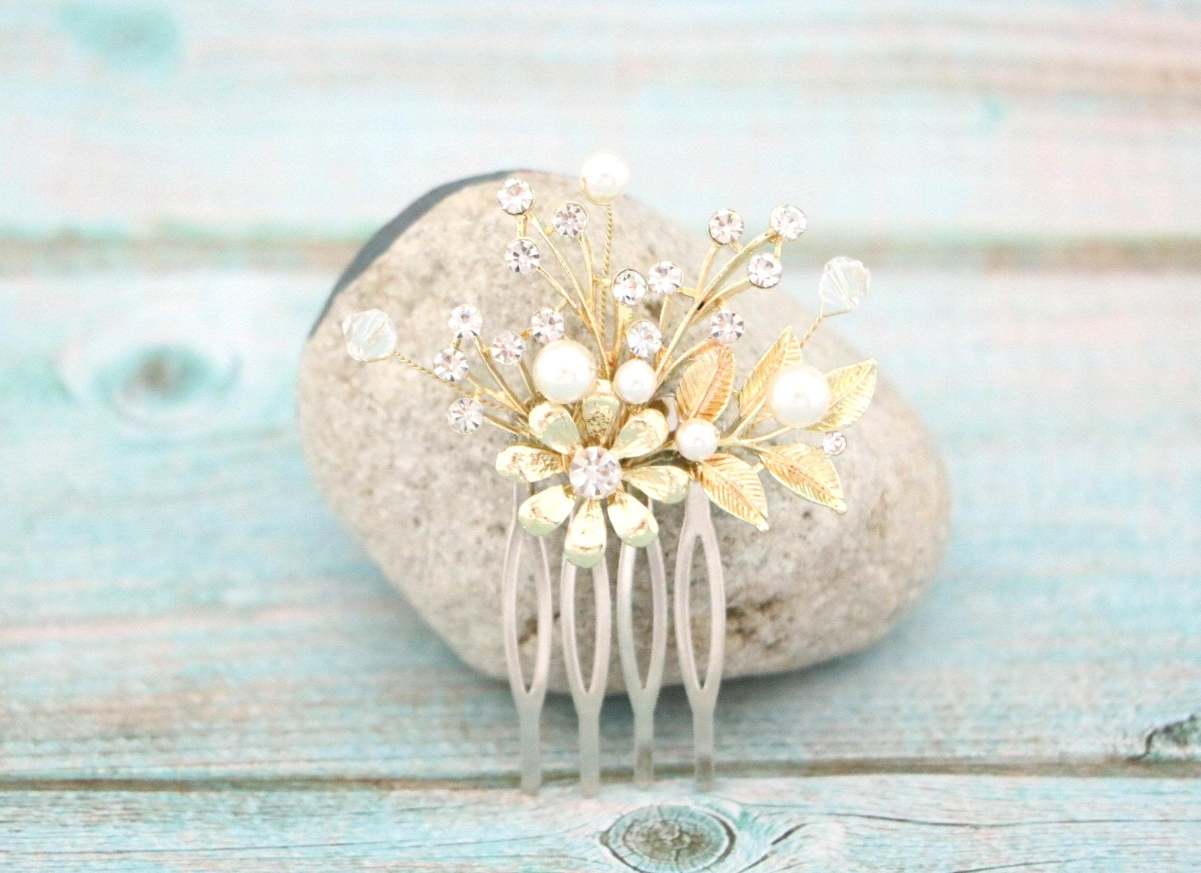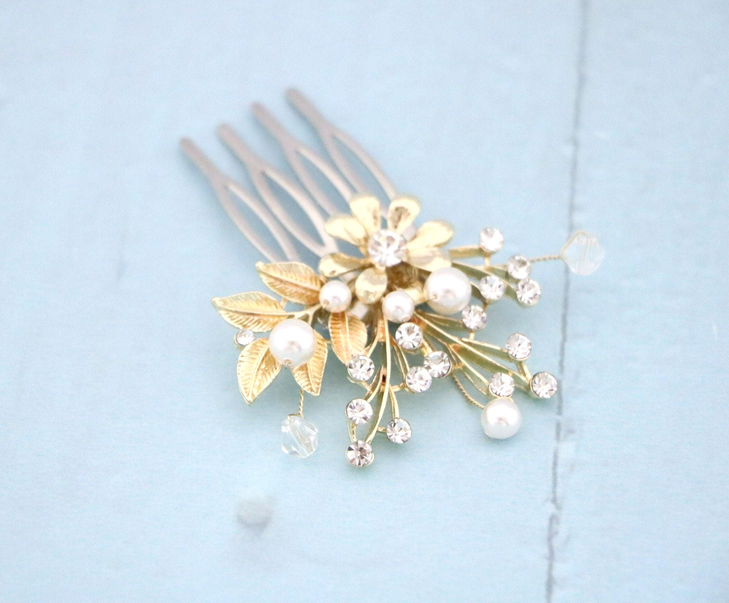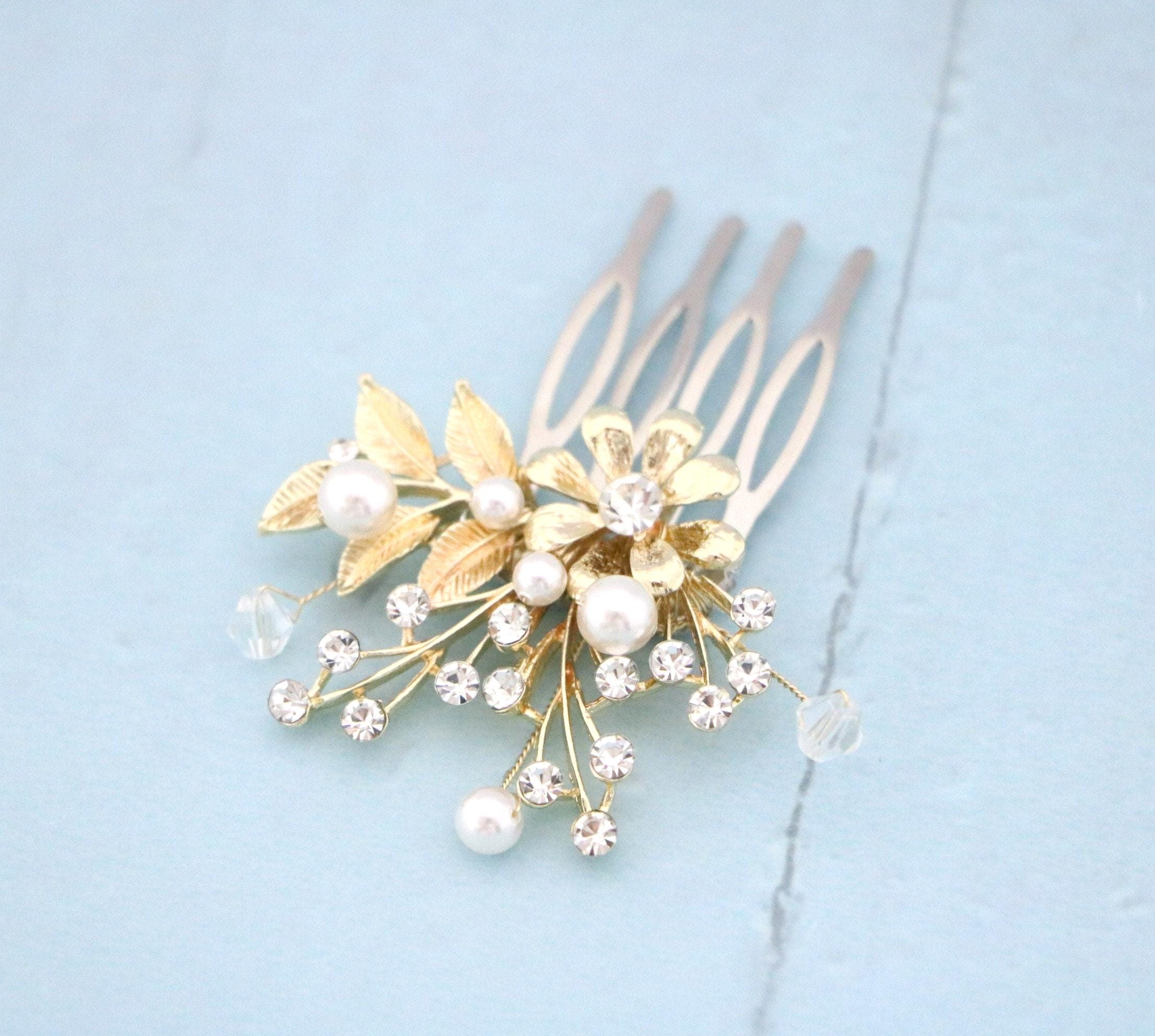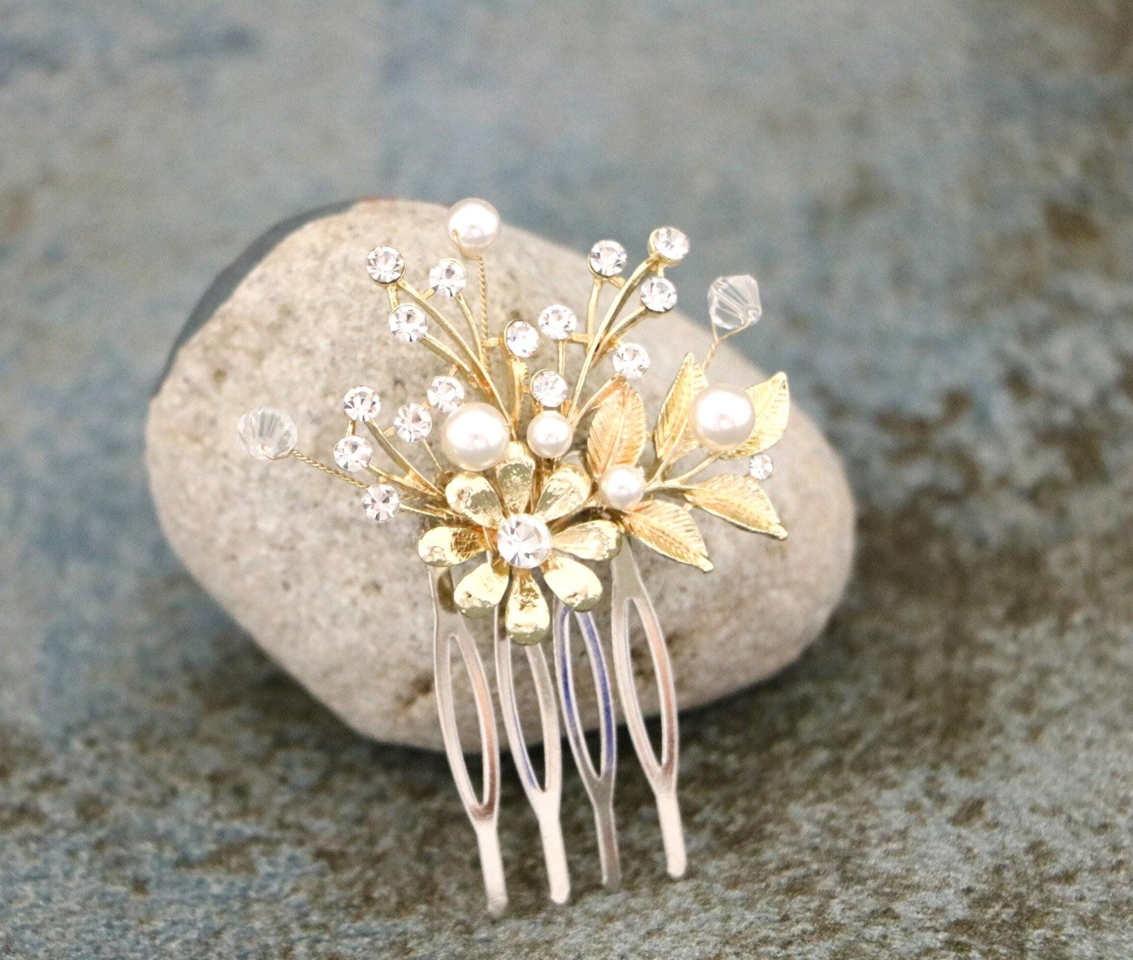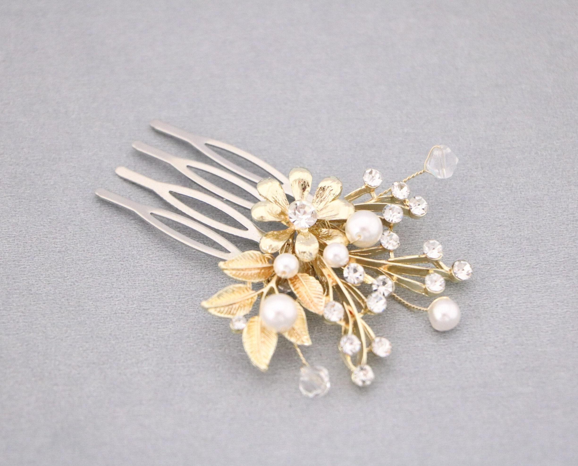 This sparkle rhinestone hair comb features a very beautiful vintage style Rhinestone piece and set it on a metal hair comb. The rhinestone part measures approximately 2 X 1.5 inches.