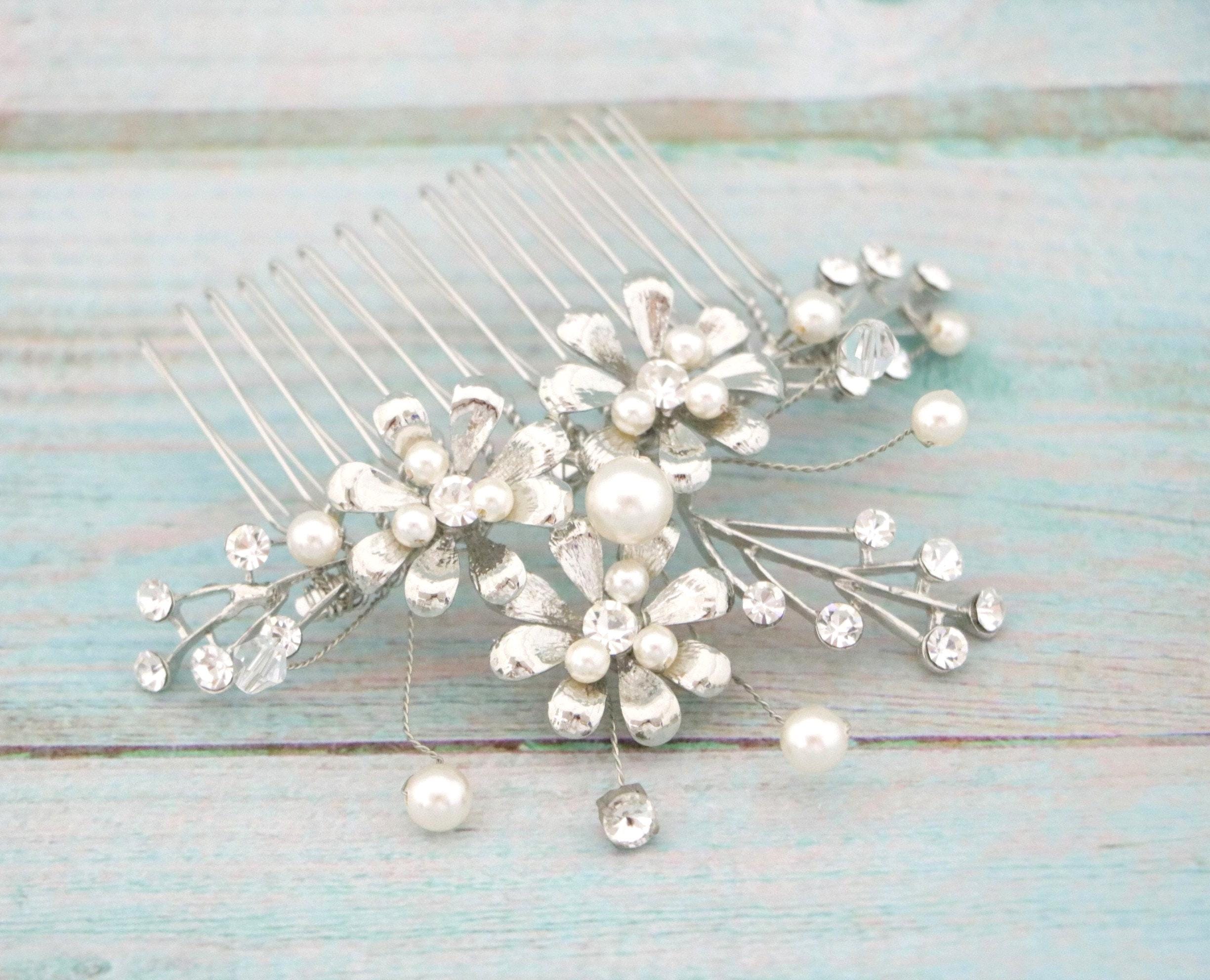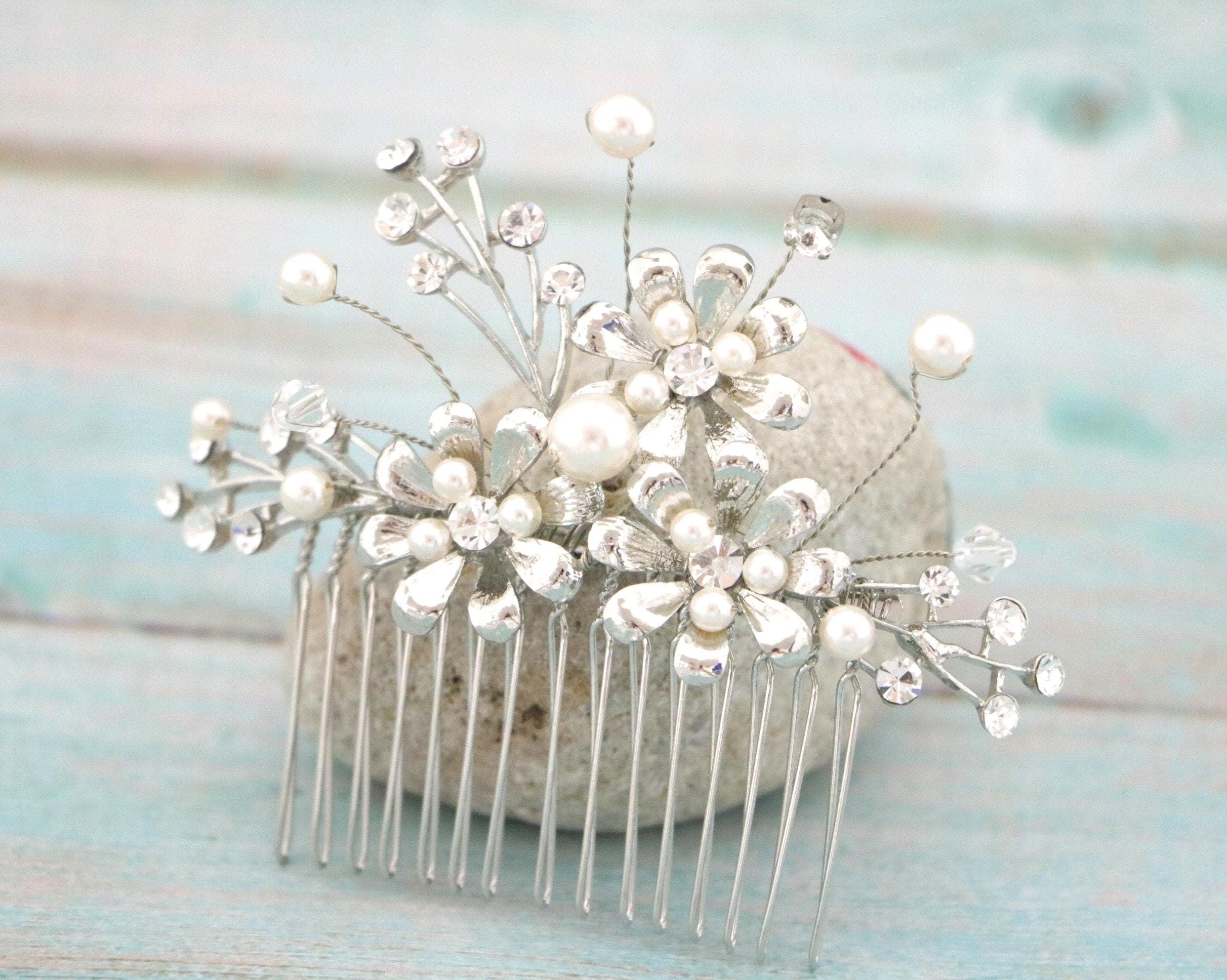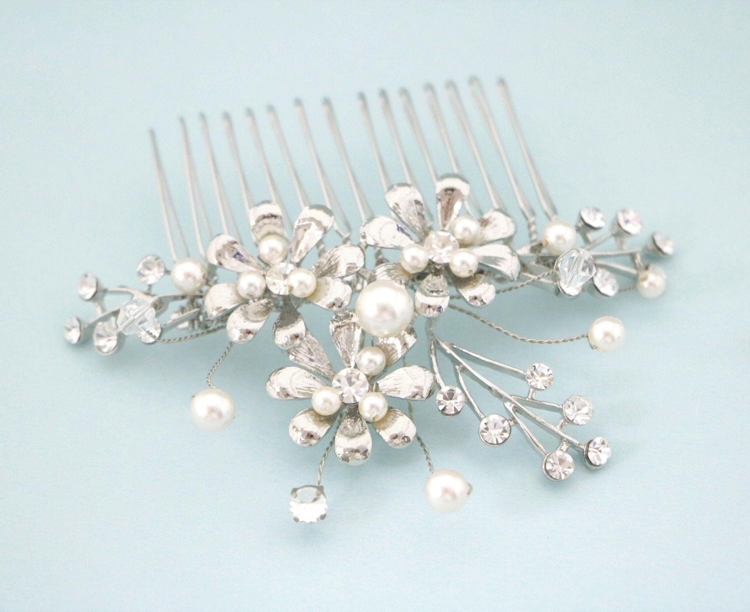 Crystal Bridal Hair Piece Wedding Headpiece Rhinestone Bridal Hair Comb Silver Wedding Hair Accessories Bridal Jewelry Bridal Veil Hair Clip