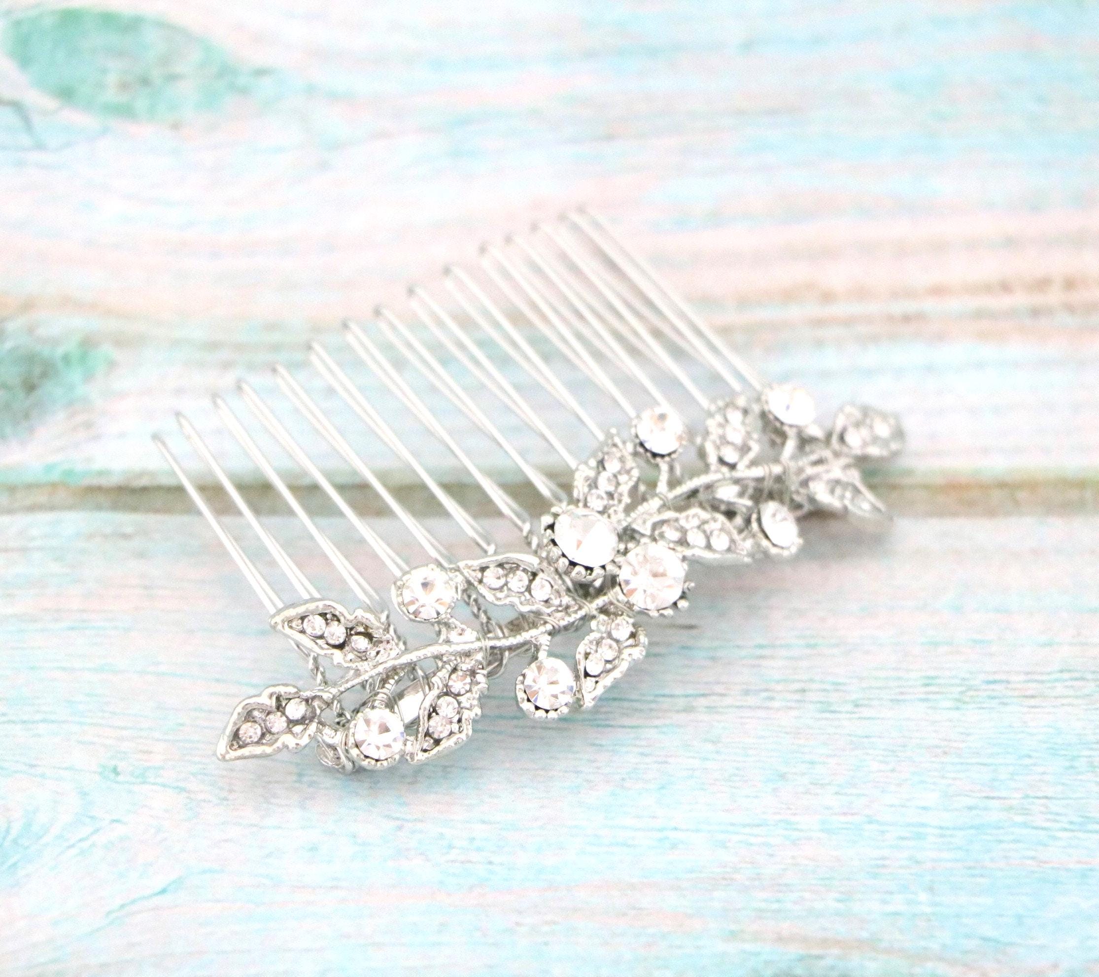 Crystal Bridal Hair Comb, Floral Rhinestone Wedding Hair Comb, Floral Bridal Comb, Small Wedding Hair Comb, Bridal Hair Accessories