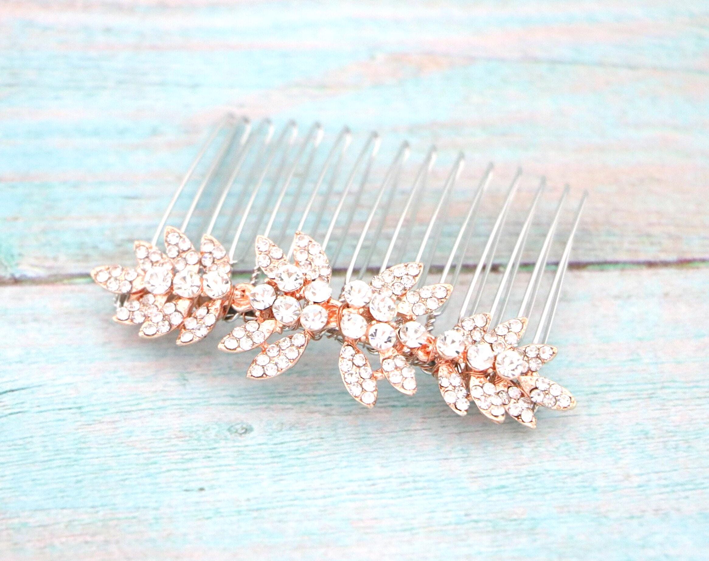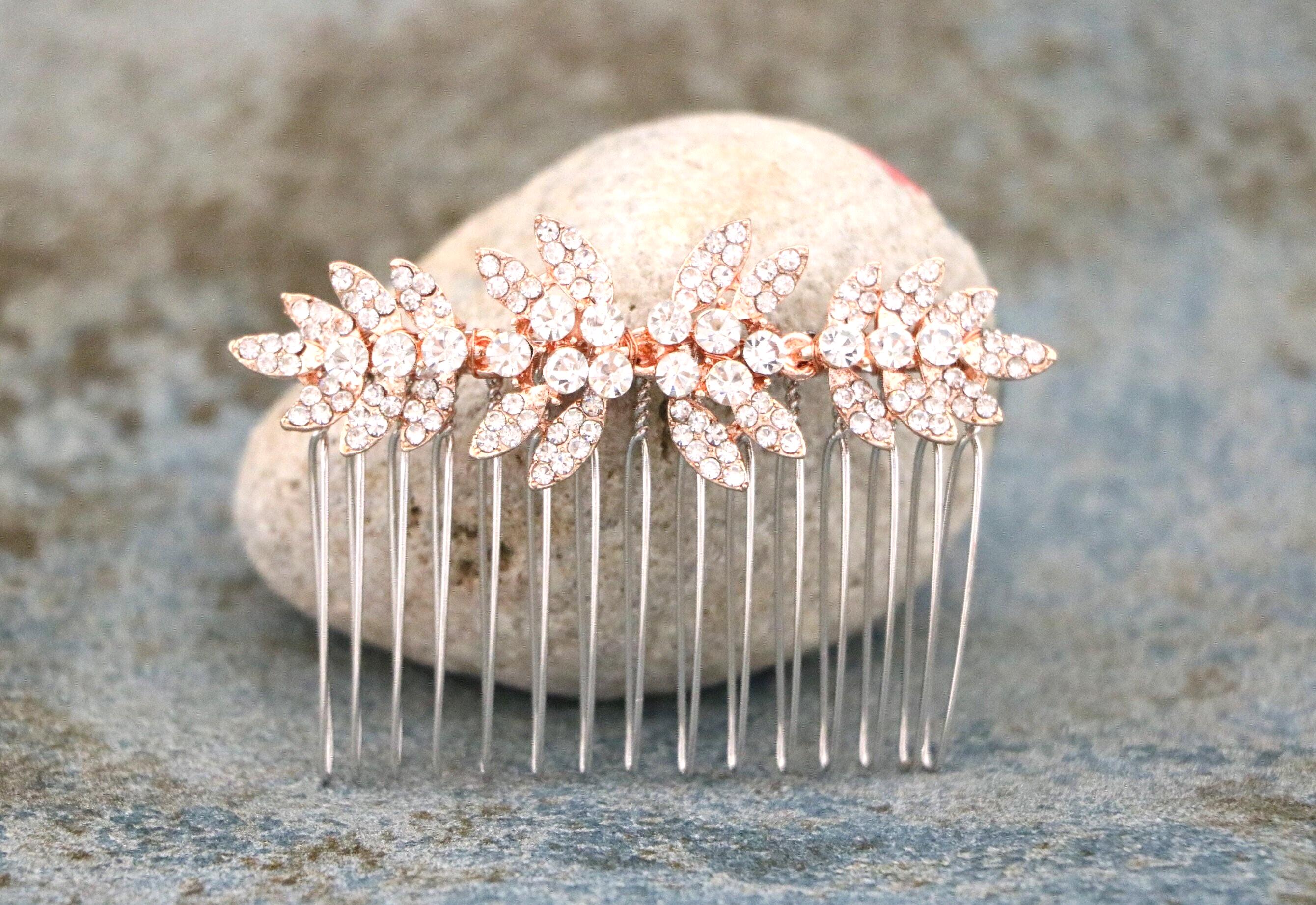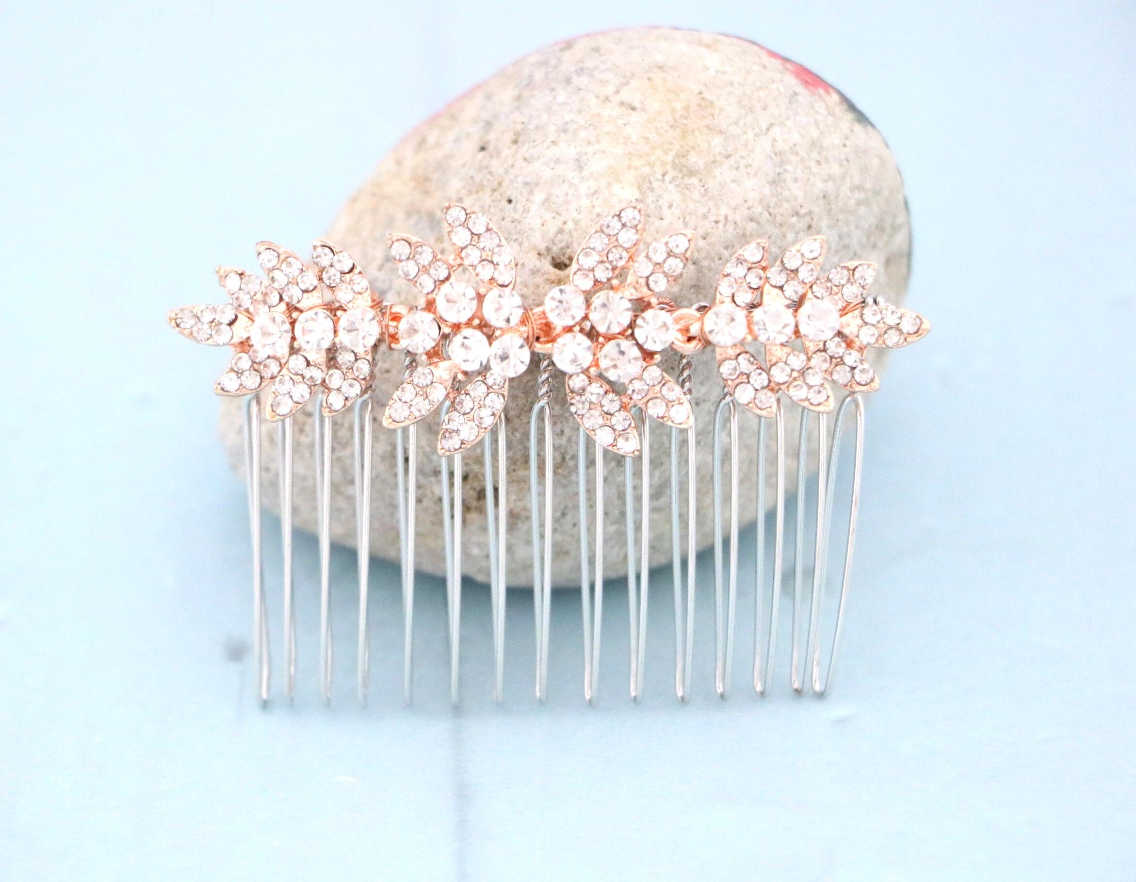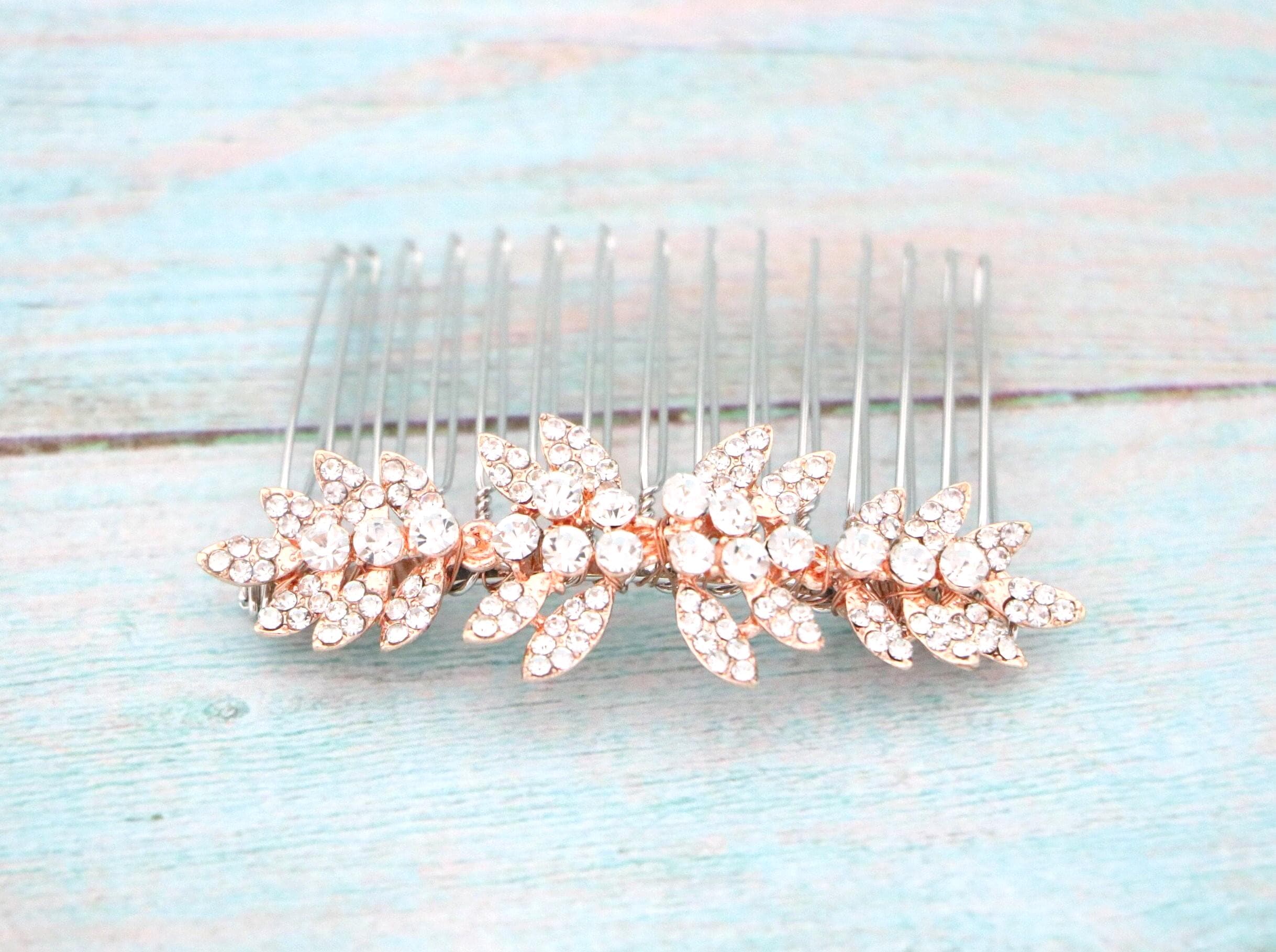 Wedding Hair Comb Rose Gold, Bridal Hair Comb, Vintage style Rhinestone Floral Hair Comb