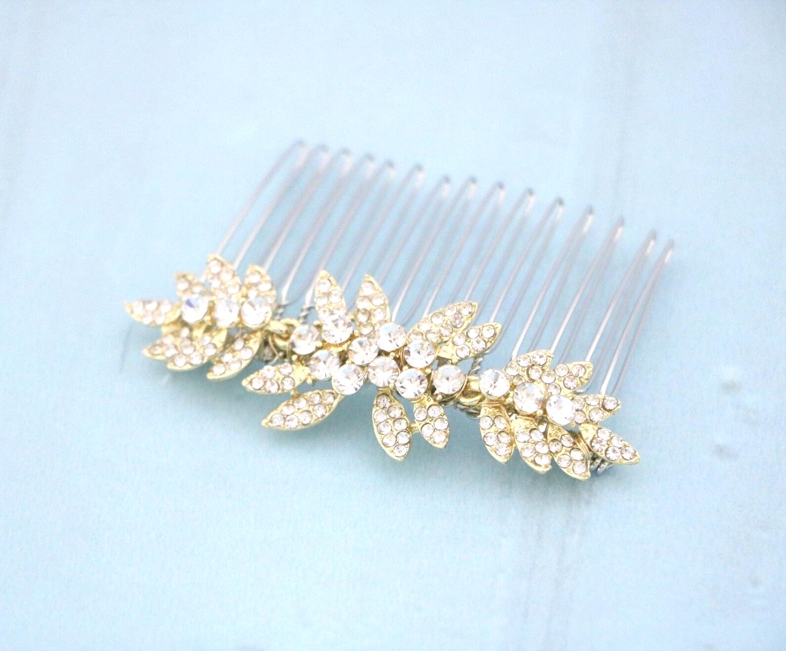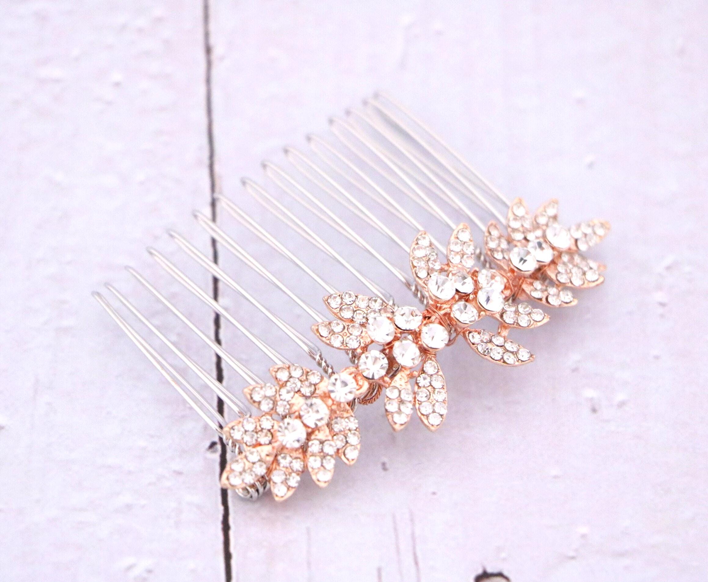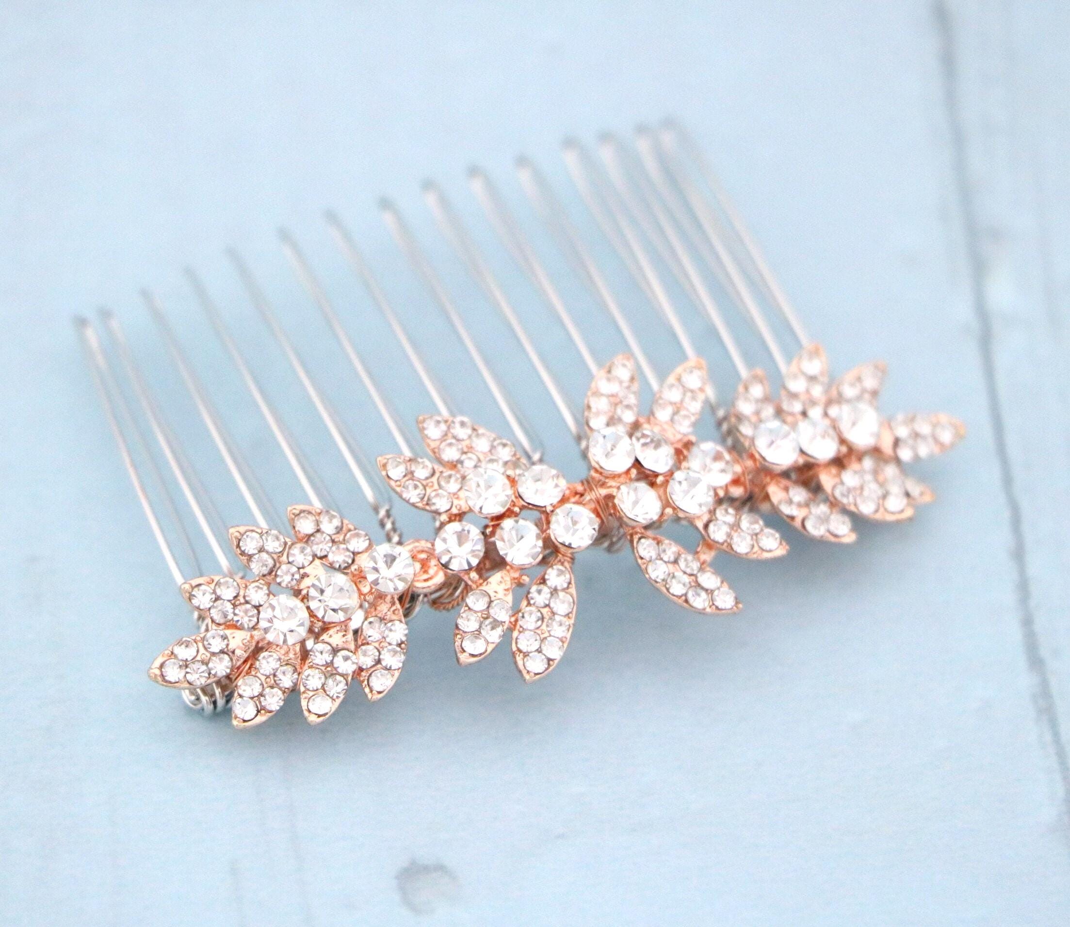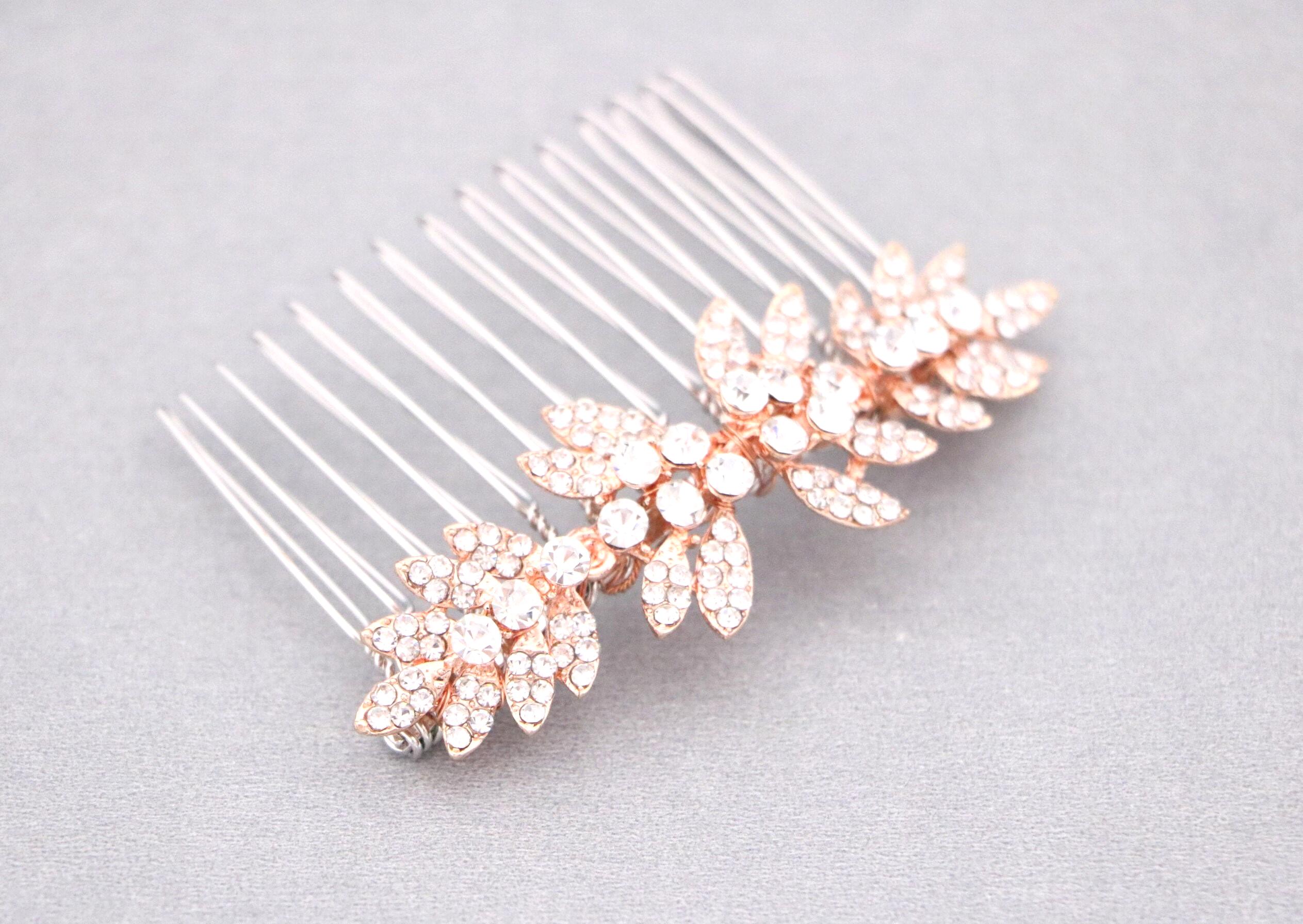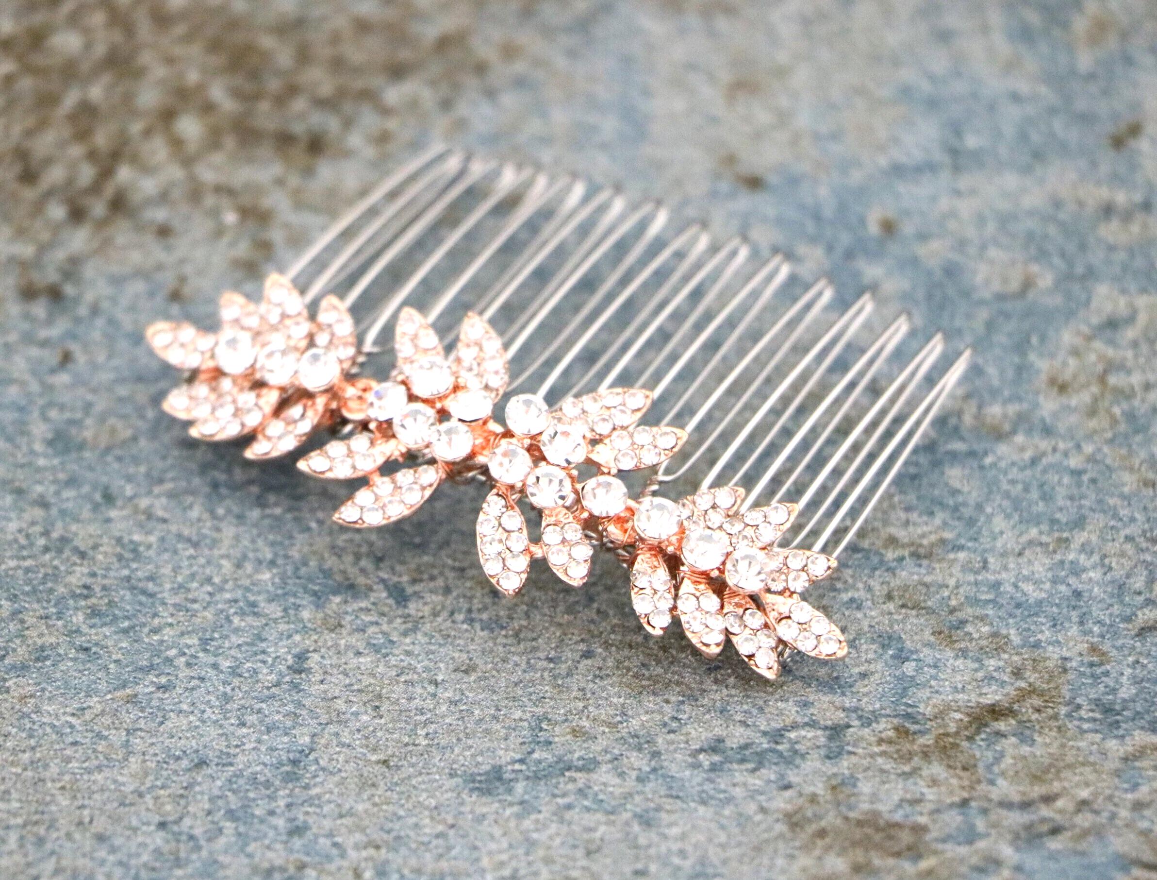 Wedding Hair Comb Rose Gold, Bridal Hair Comb, Vintage style Rhinestone Floral Hair Comb