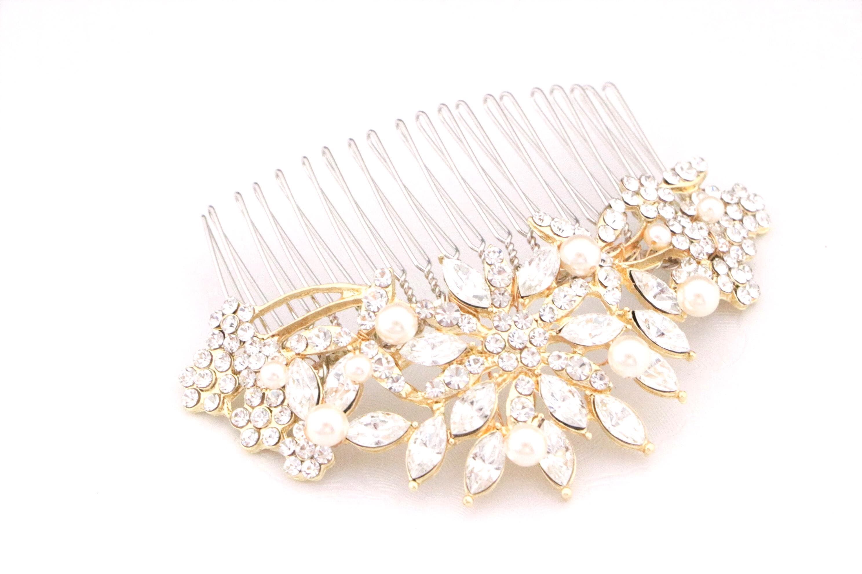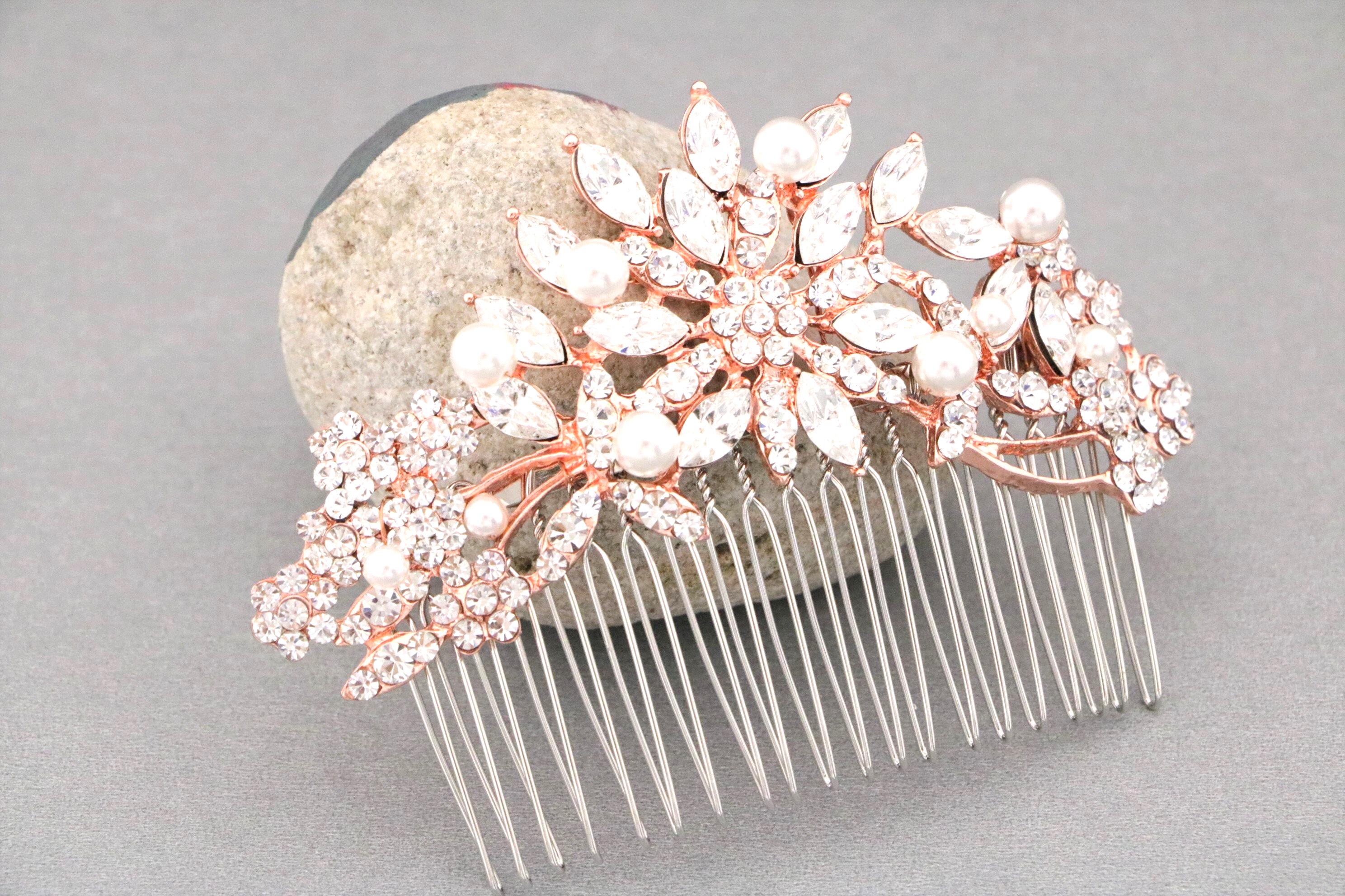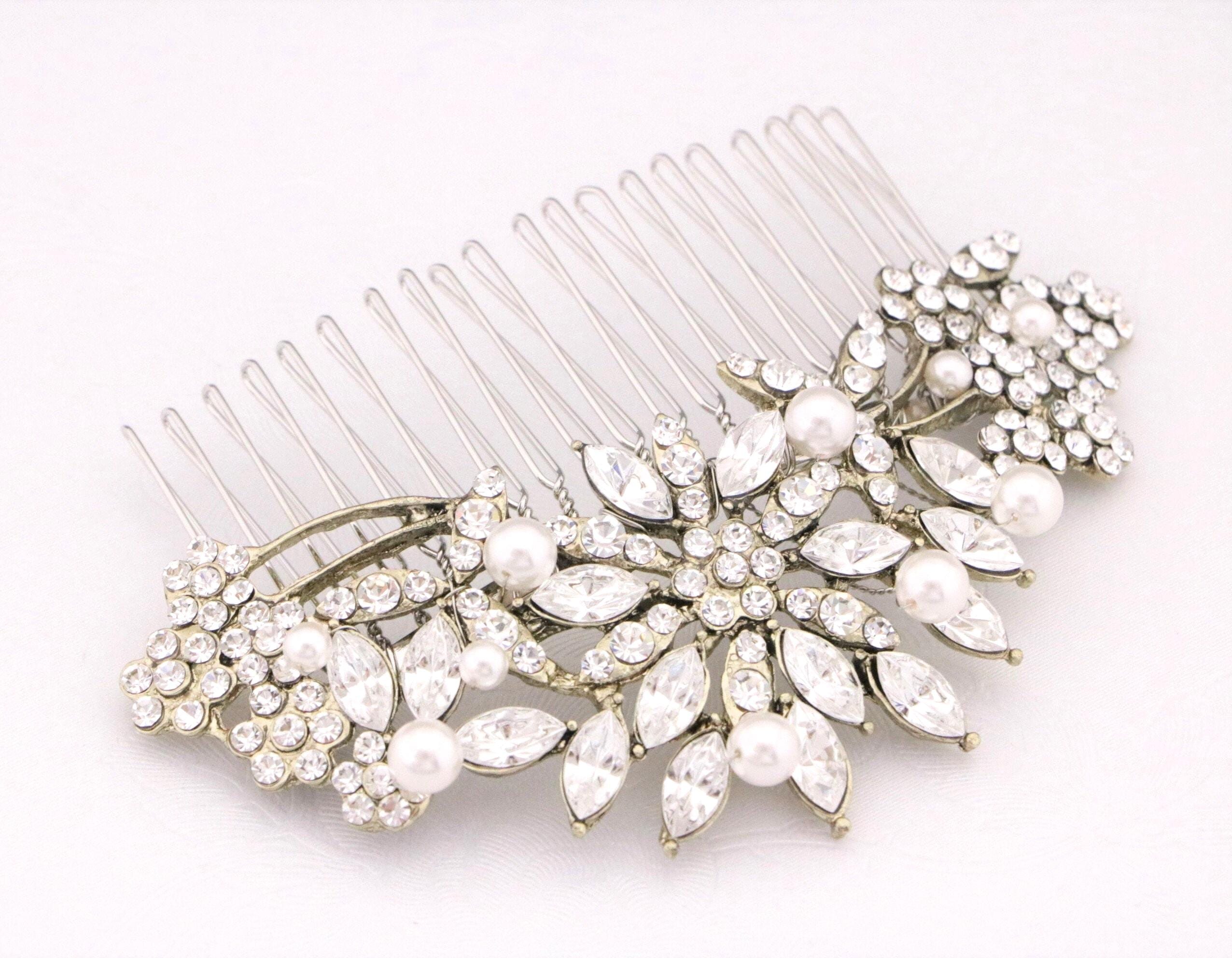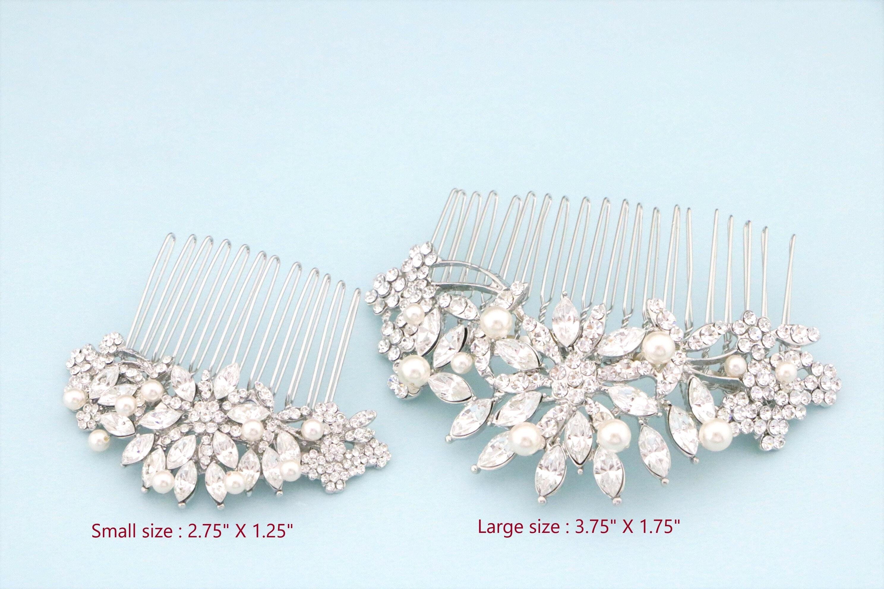 This beautiful Clear rhinestone Swarovski pearl hair comb is a perfect compliment for the wedding party and can easily fit into any hair style.