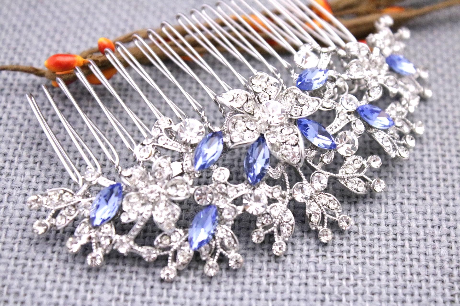 Wedding hair accessories, Wedding decorative combs, Bridal hair comb, Wedding headpiece, Red hair comb, Red Rhinestone, Ruby hair piece ,Montana crystal bridal hair clip , Sapphire color crystal