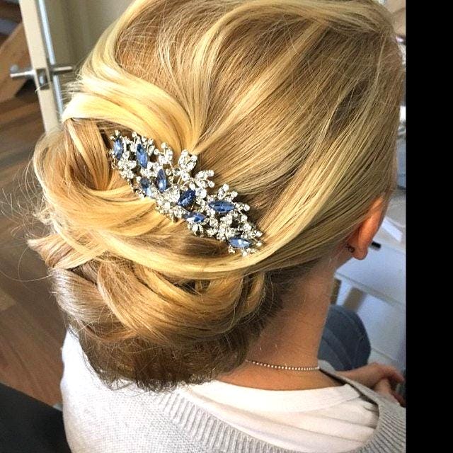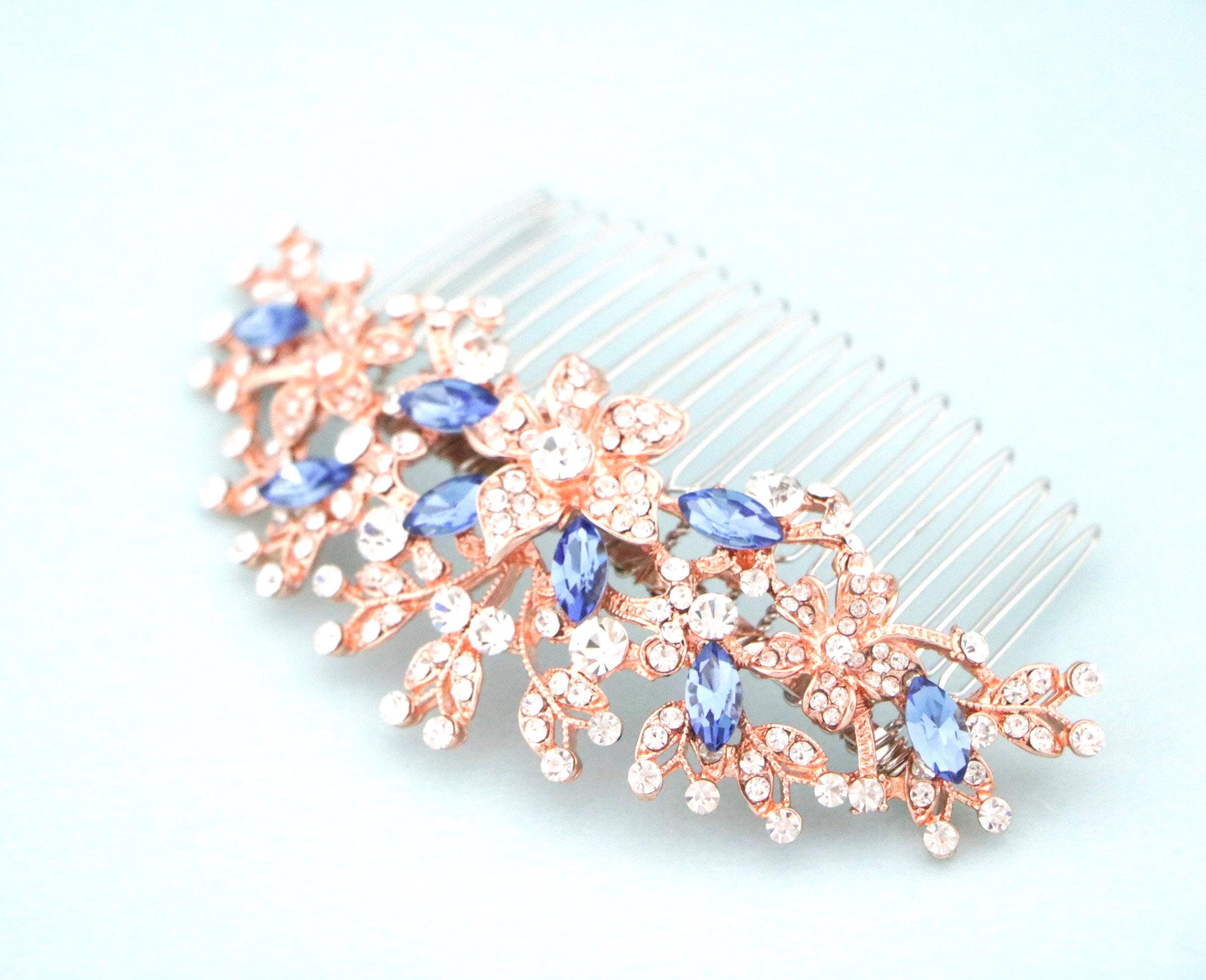 This is a gorgeous hair comb. I bought it to stick in the side of a French twist hair style to go with my navy colored mother of the bride gown for my daughter's wedding. I bought this in the rose gold, as it matches the rose gold jewelry that I will wear with the gown. The comb is a good size and looks beautiful. I love the packaging as well.