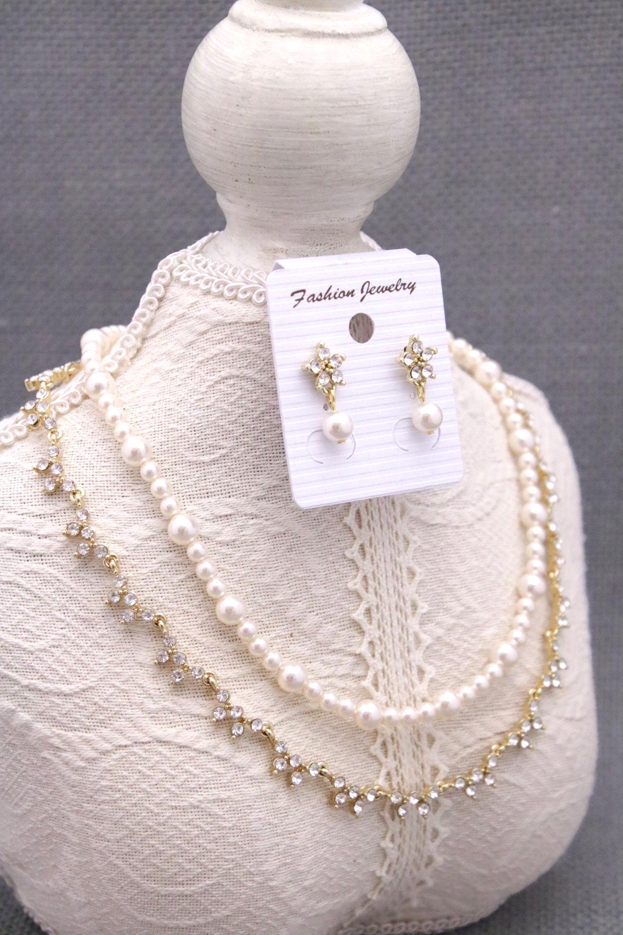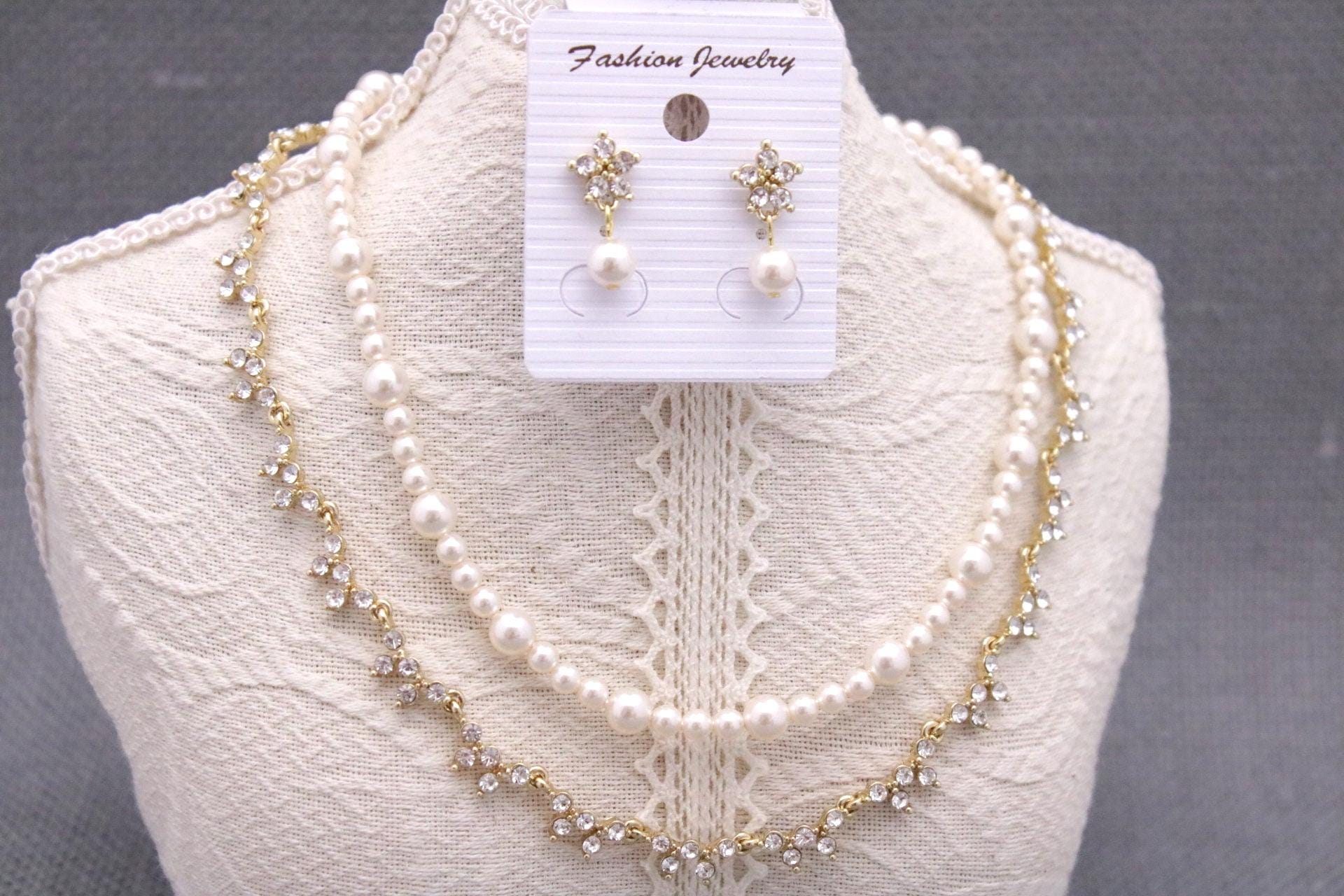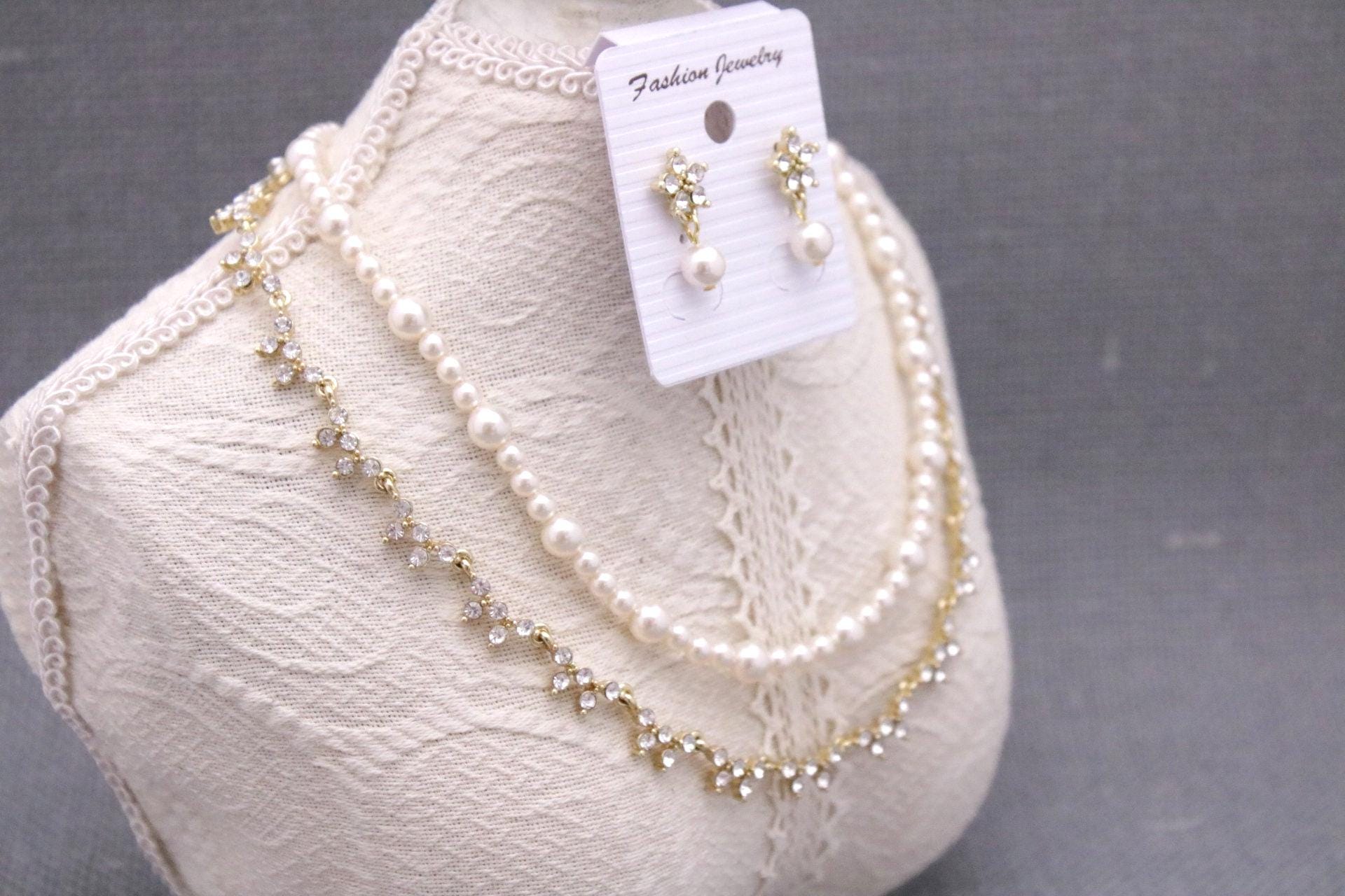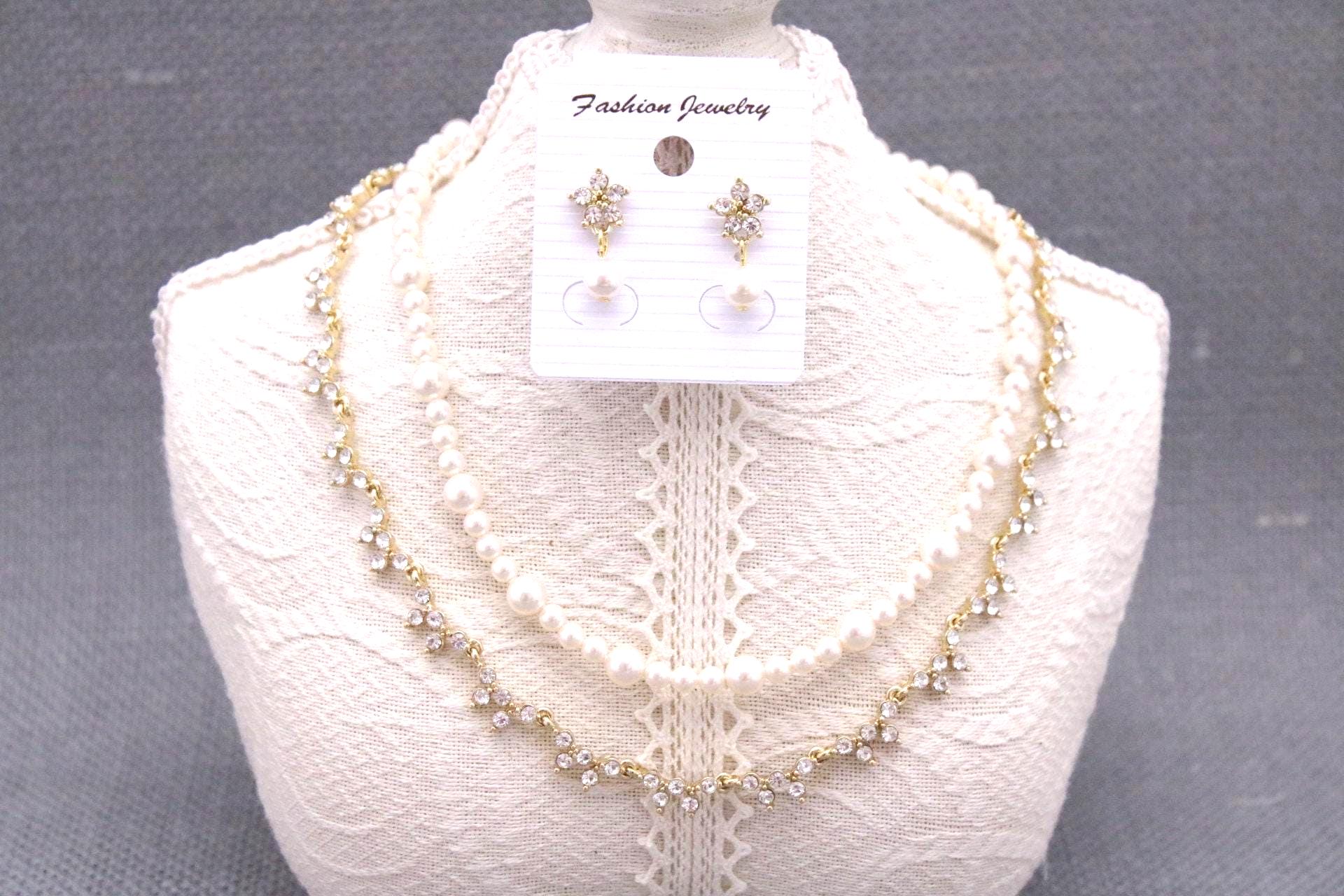 Crystal necklace set, silver pearl wedding jewelry set, wedding accessories, pearl bridal jewelry set, vintage style necklace set, weddings