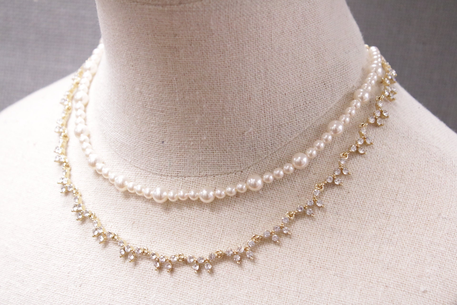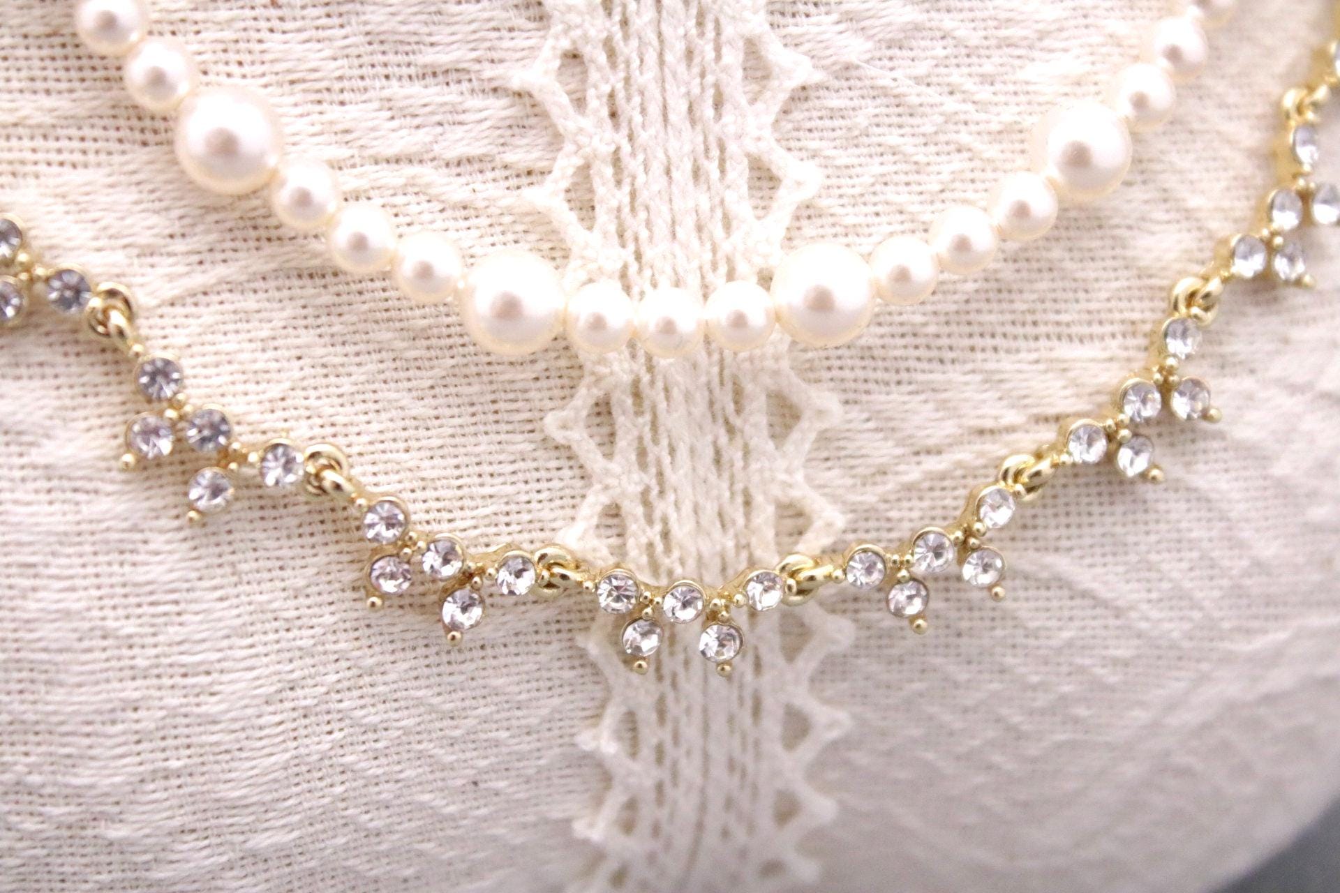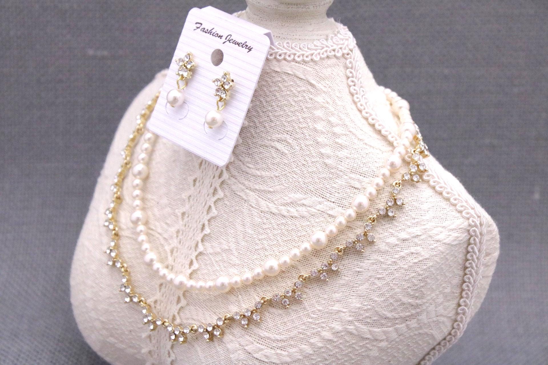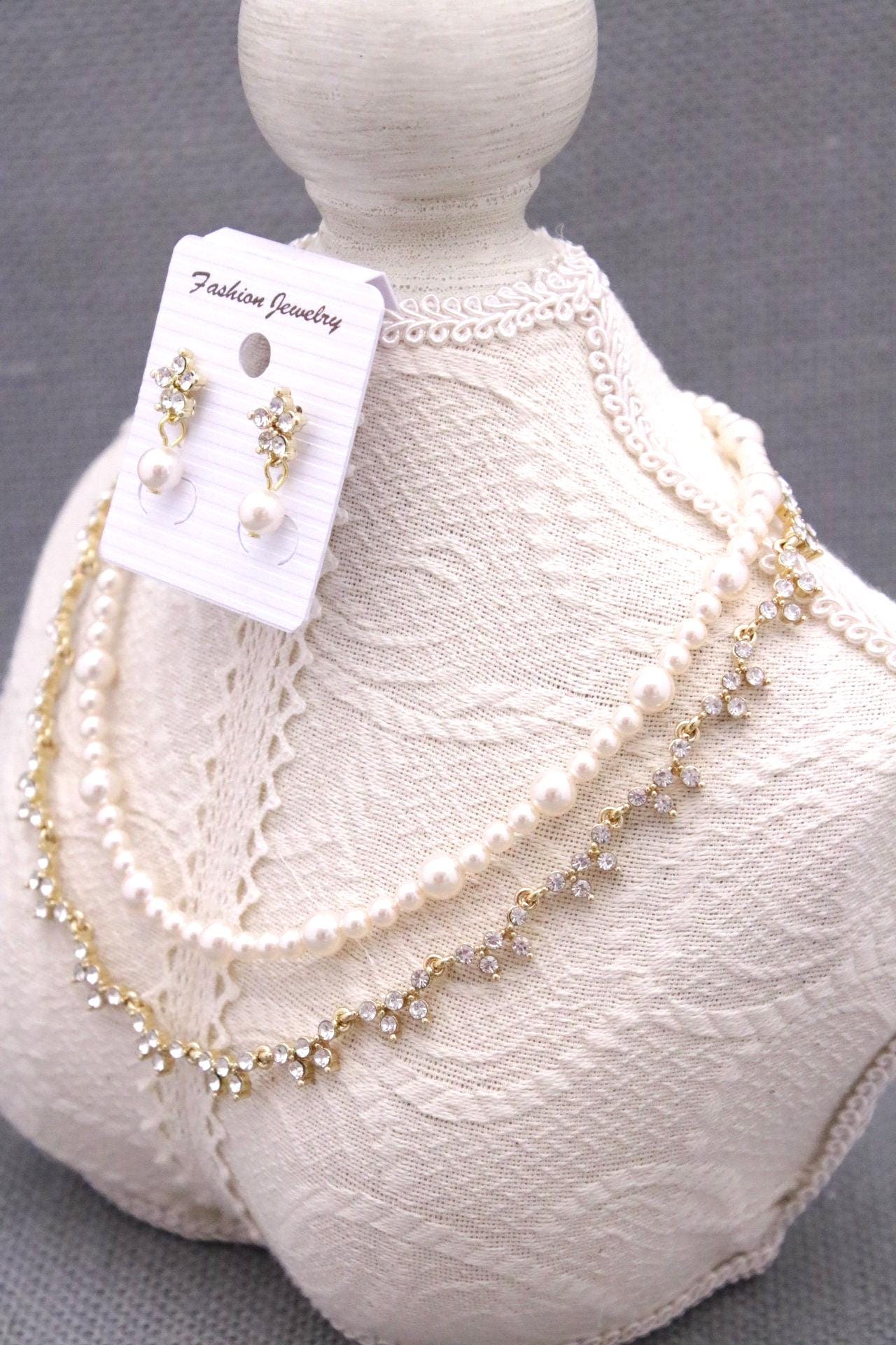 Crystal necklace set, silver pearl wedding jewelry set, wedding accessories, pearl bridal jewelry set, vintage style necklace set, weddings
