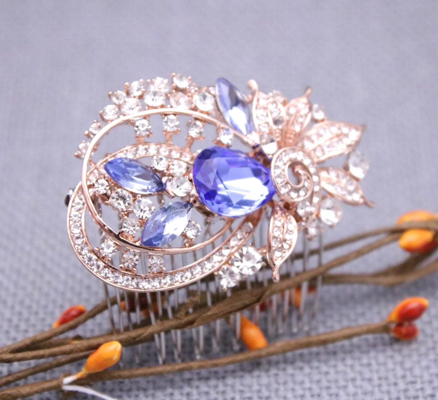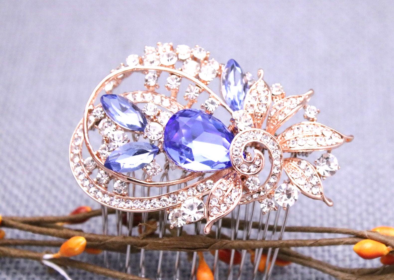 Blue bridal hair comb Something blue hair comb Sapphire blue Crystal hair comb Royal blue wedding Rhinestone hair comb Navy blue hair piece