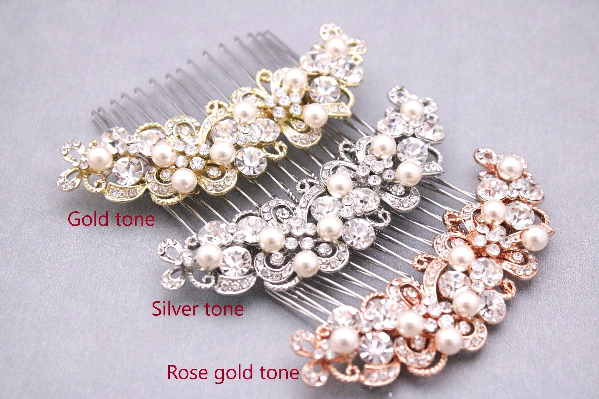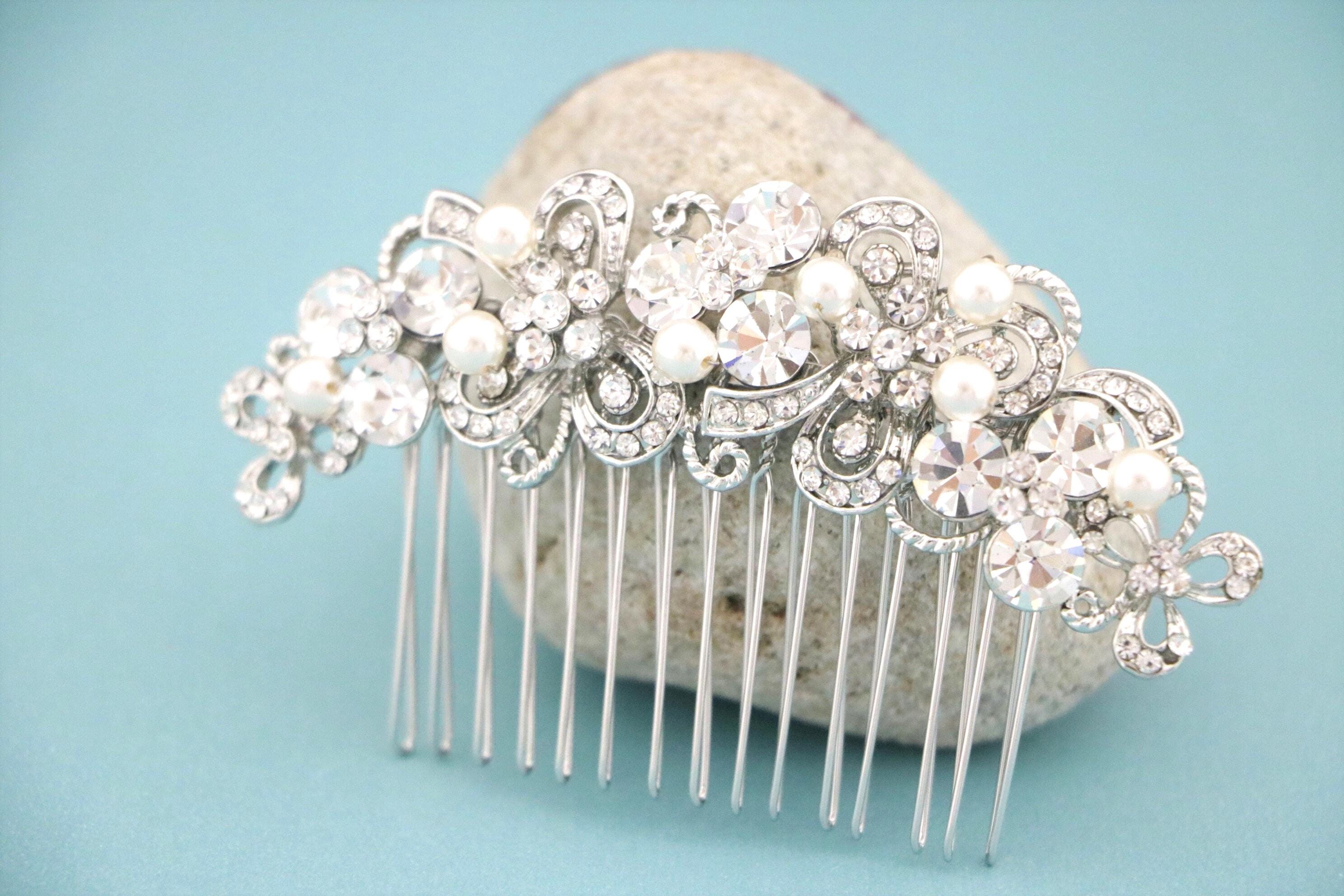 Hair comb : The rhinestone part measures approximately 4 X 1 inches.