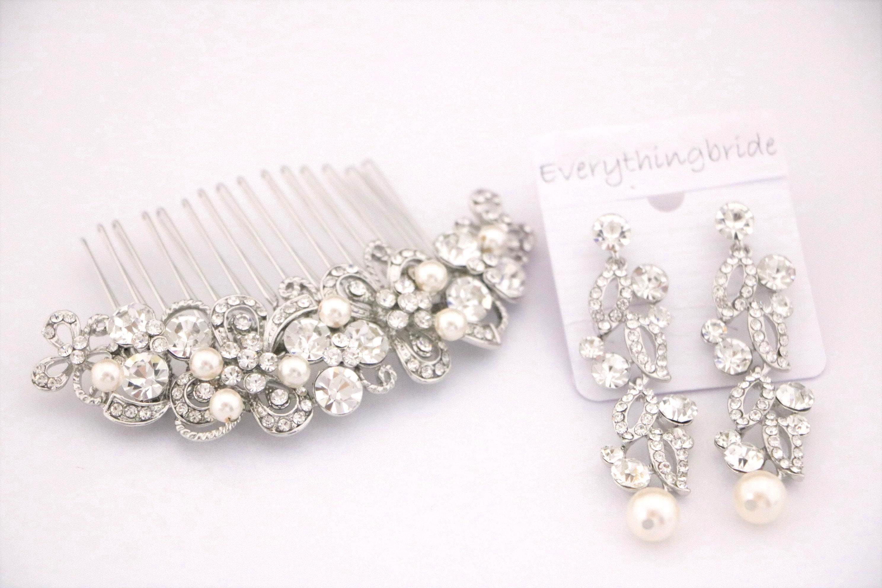 Bridal Jewelry Set, Bridesmaids Gift Set, Bridal Earrings Hair Comb, Wedding Hair Accessories, Silver Wedding Jewelry Set, Crystal Jewelry
