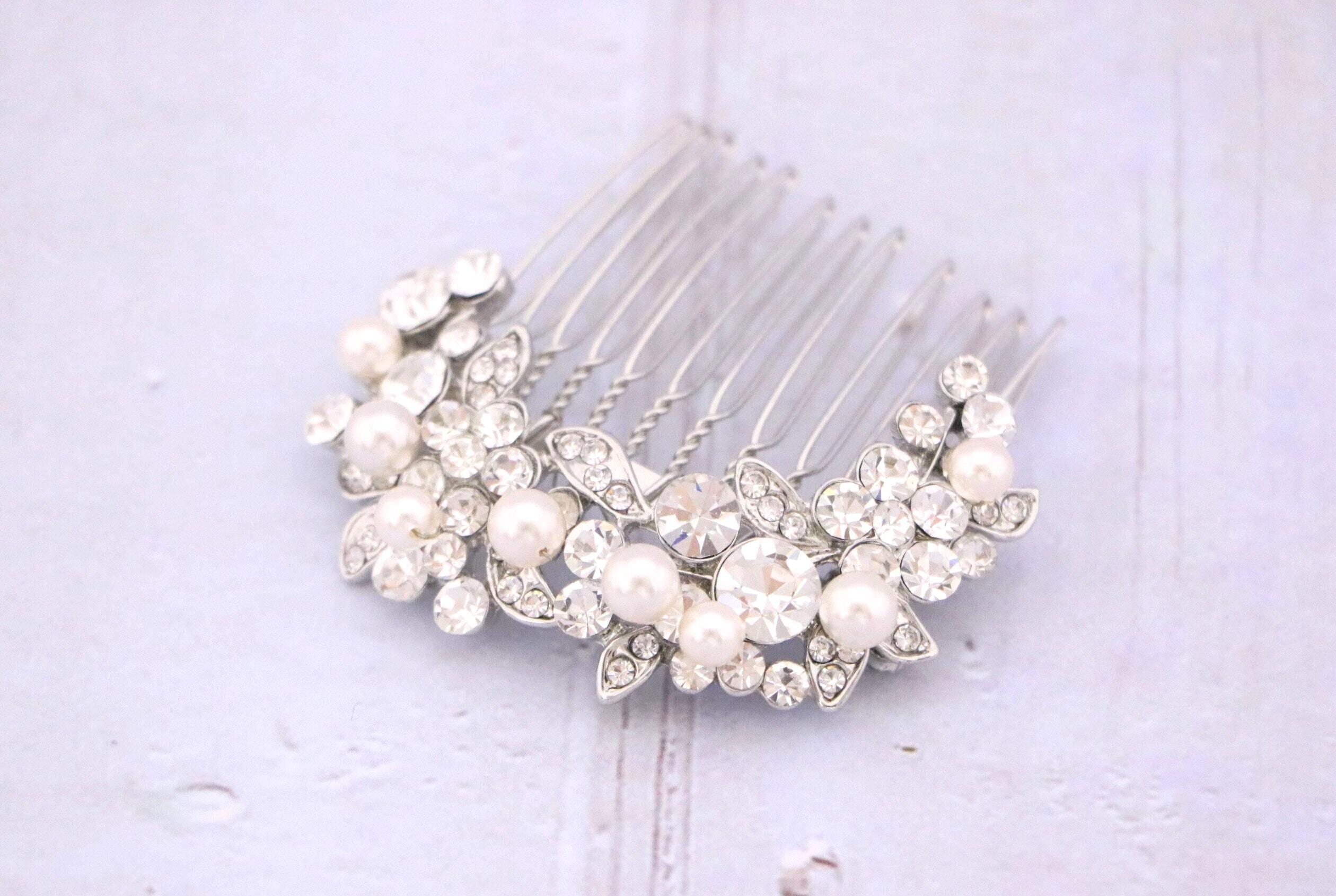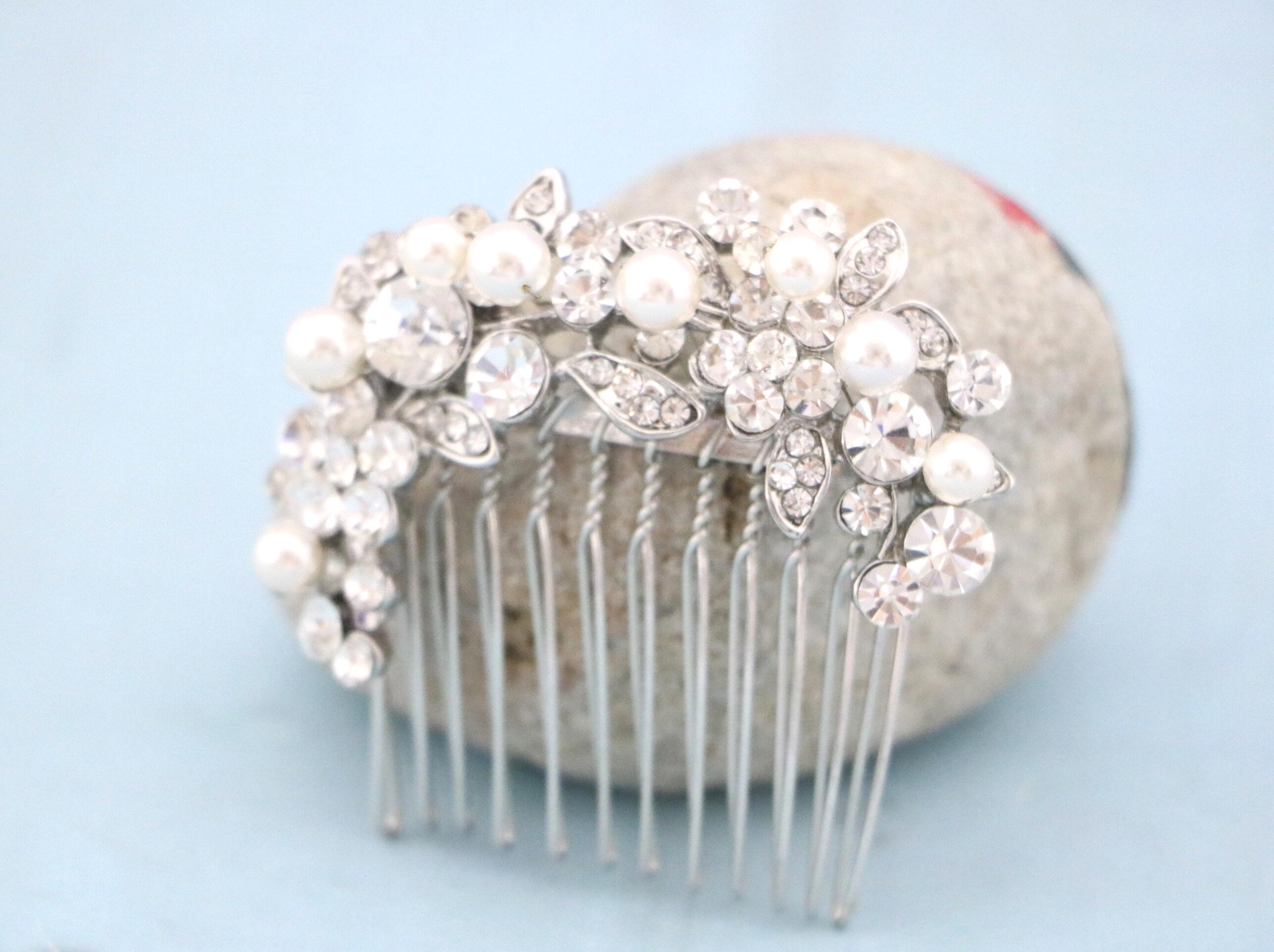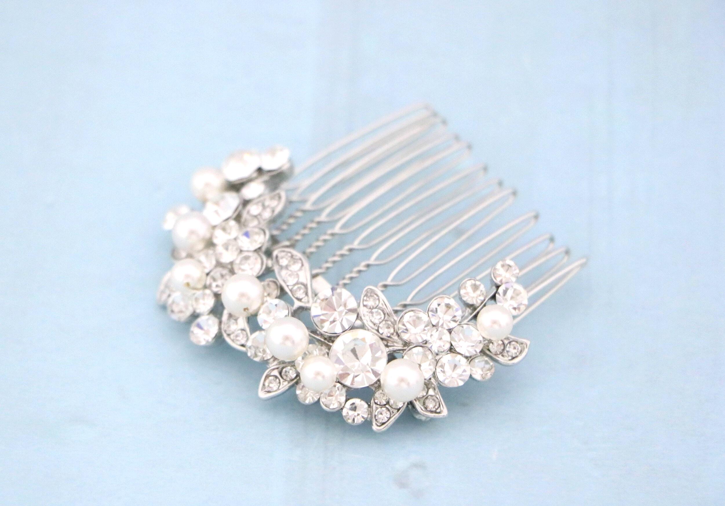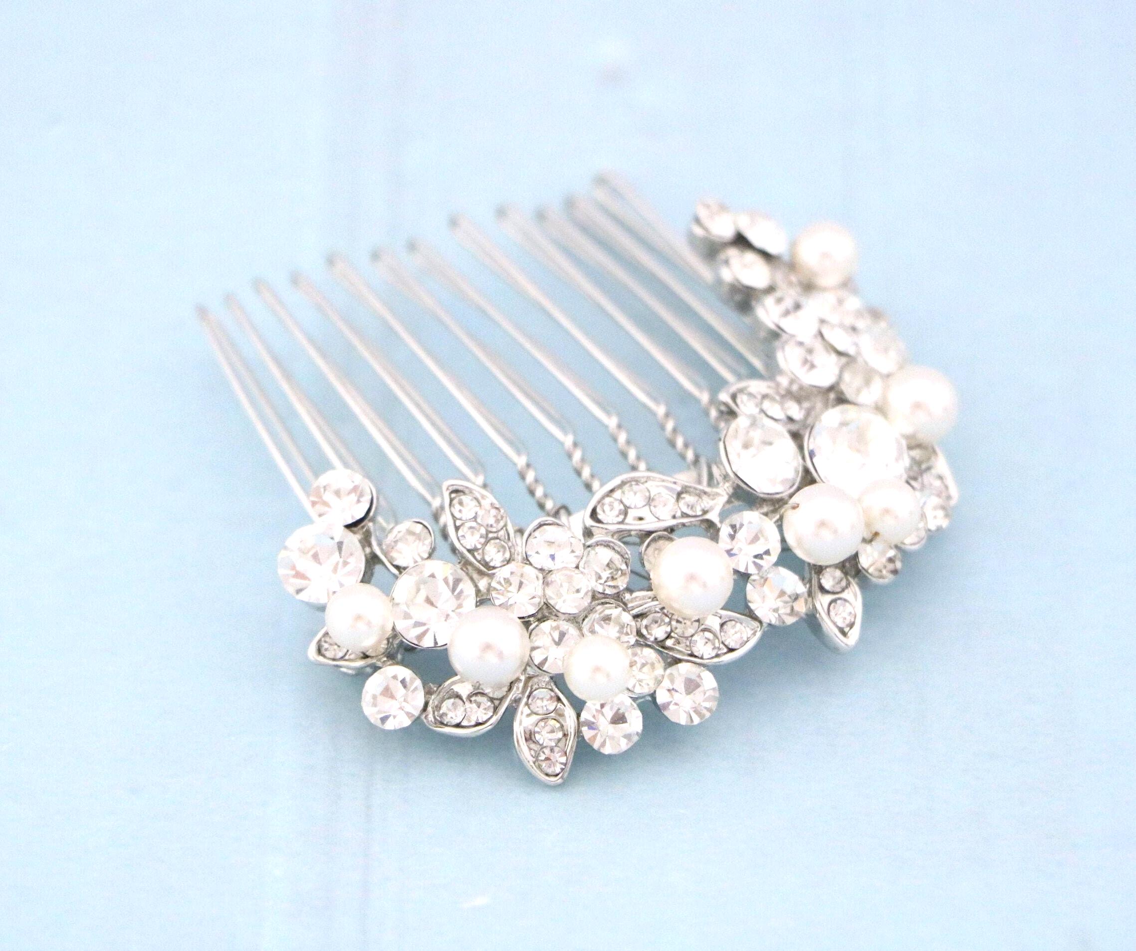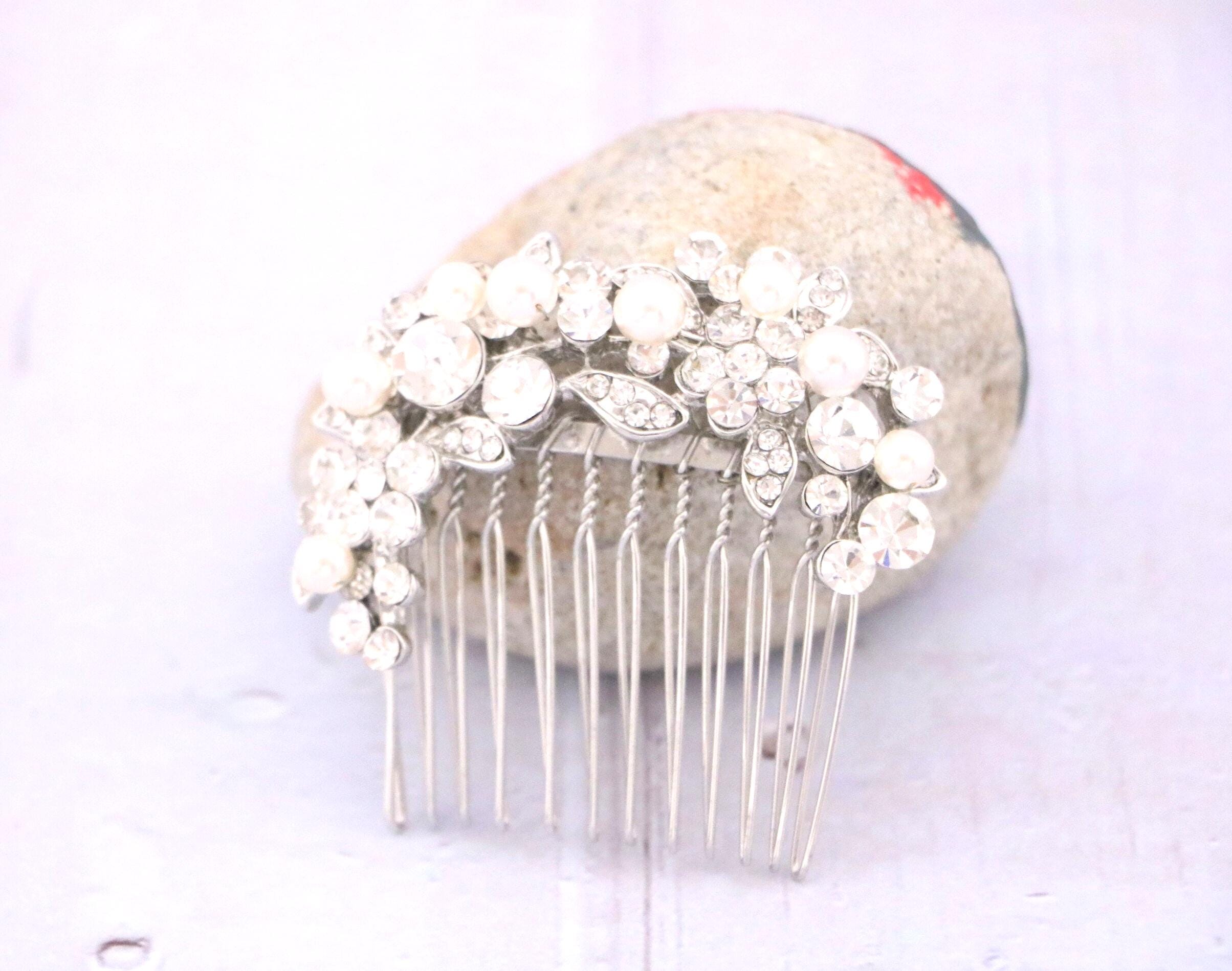 Crystal & Pearl Bridal Comb, Silver Wedding Comb, Freshwater Pearl Wedding Accessory, Rhinestone Comb, Crystal Wedding Comb