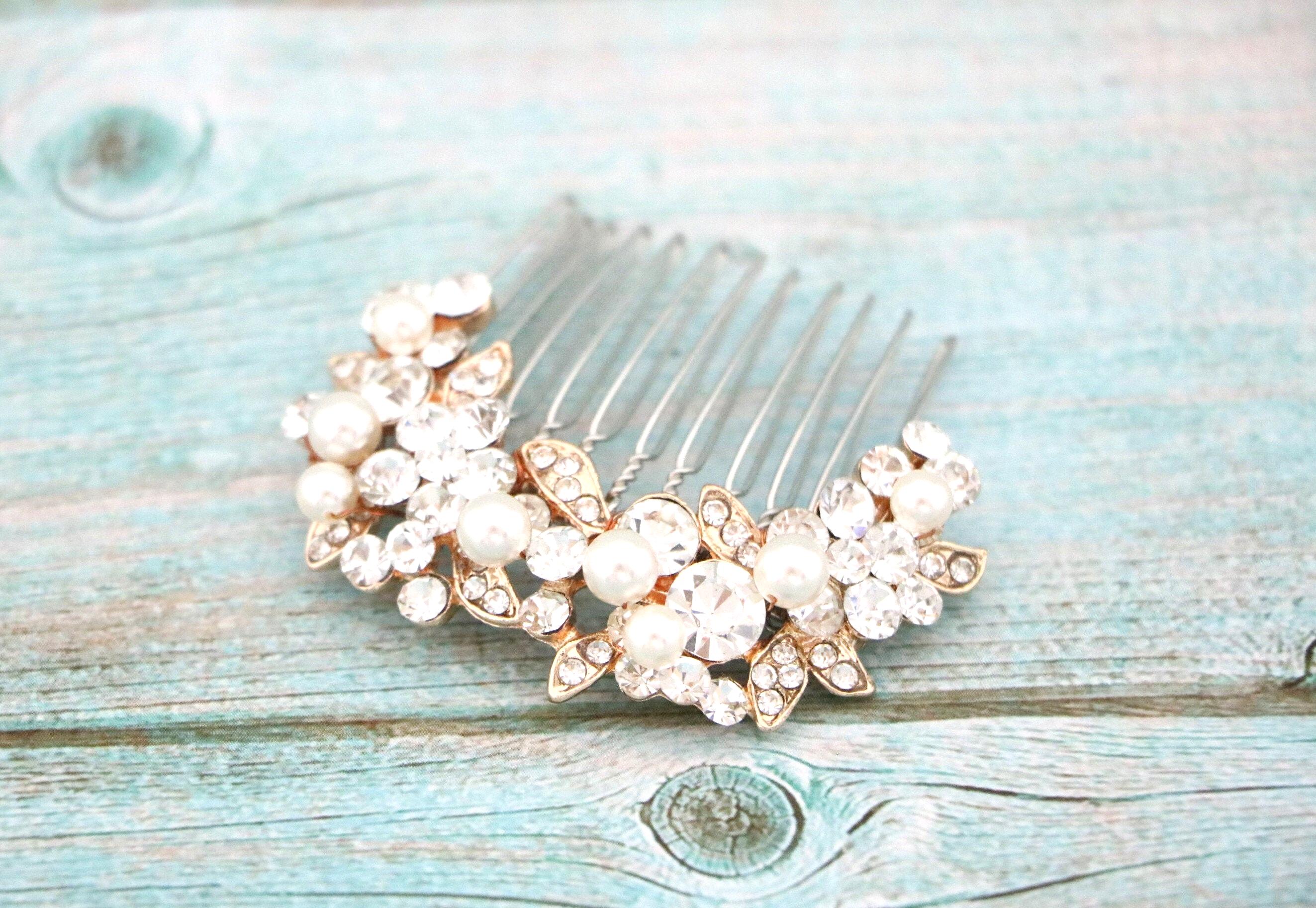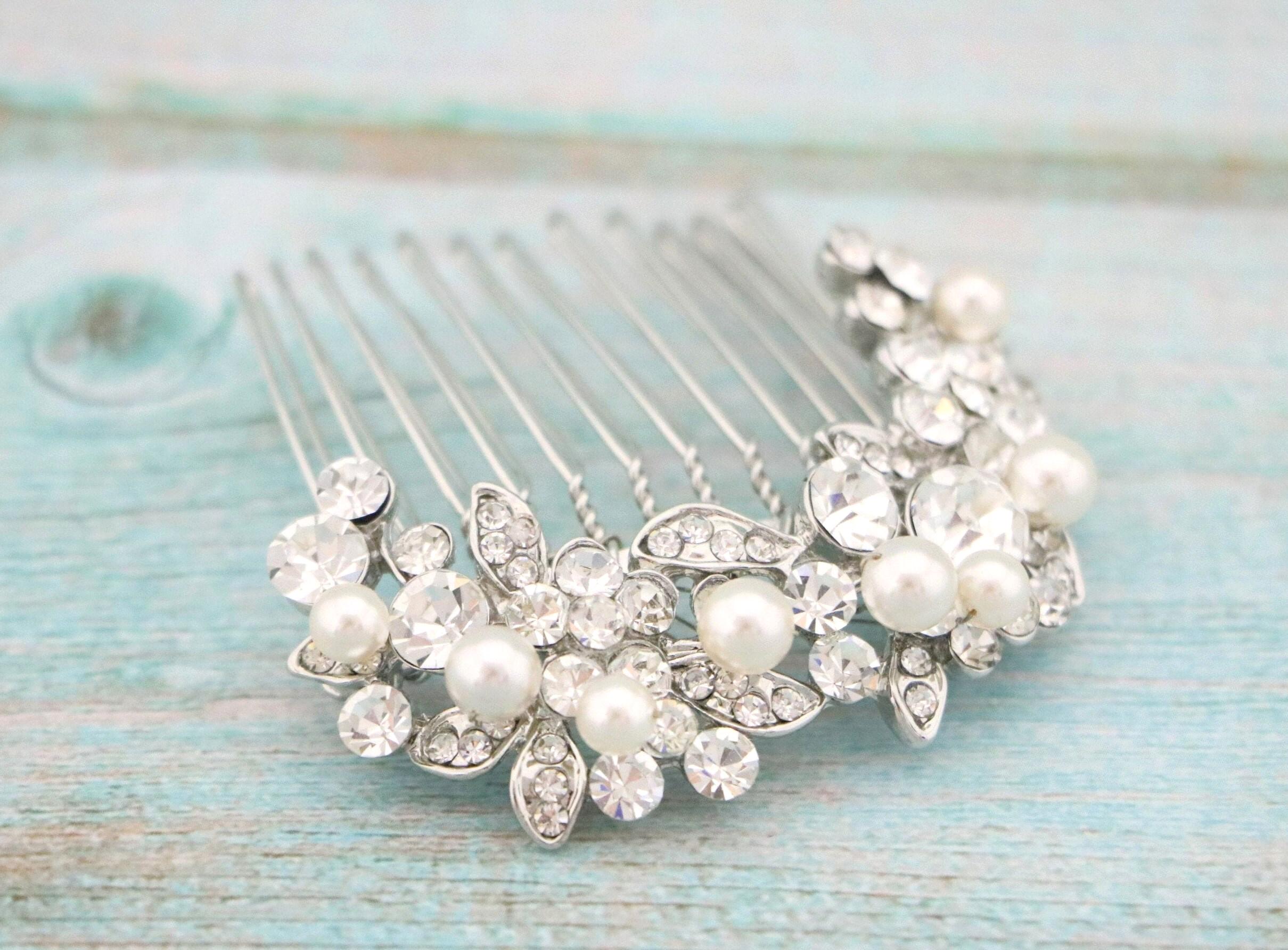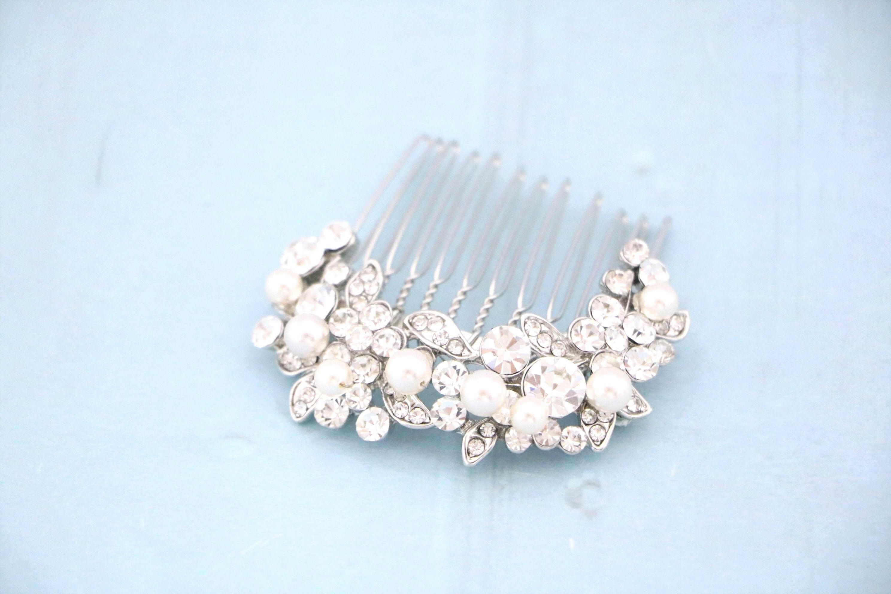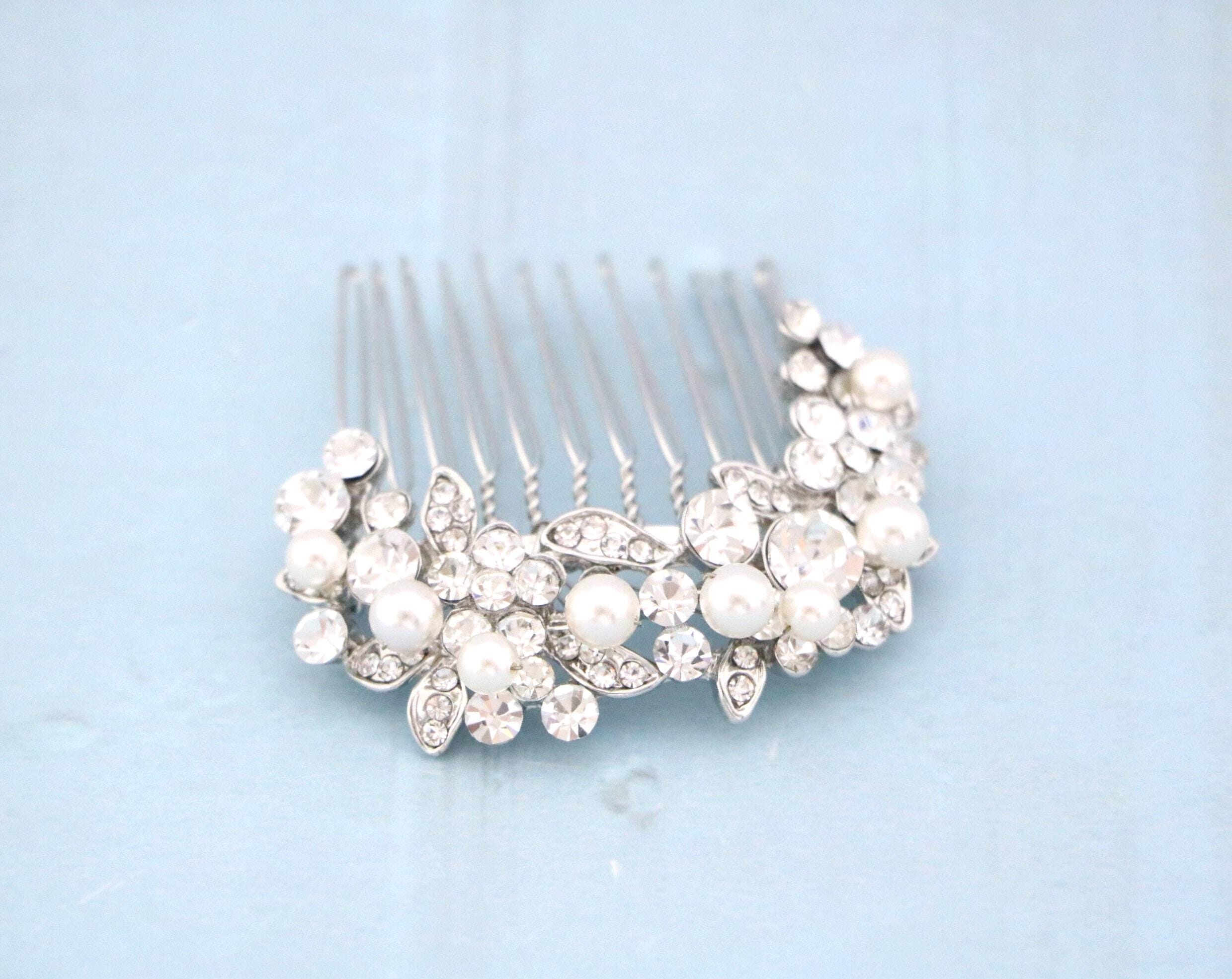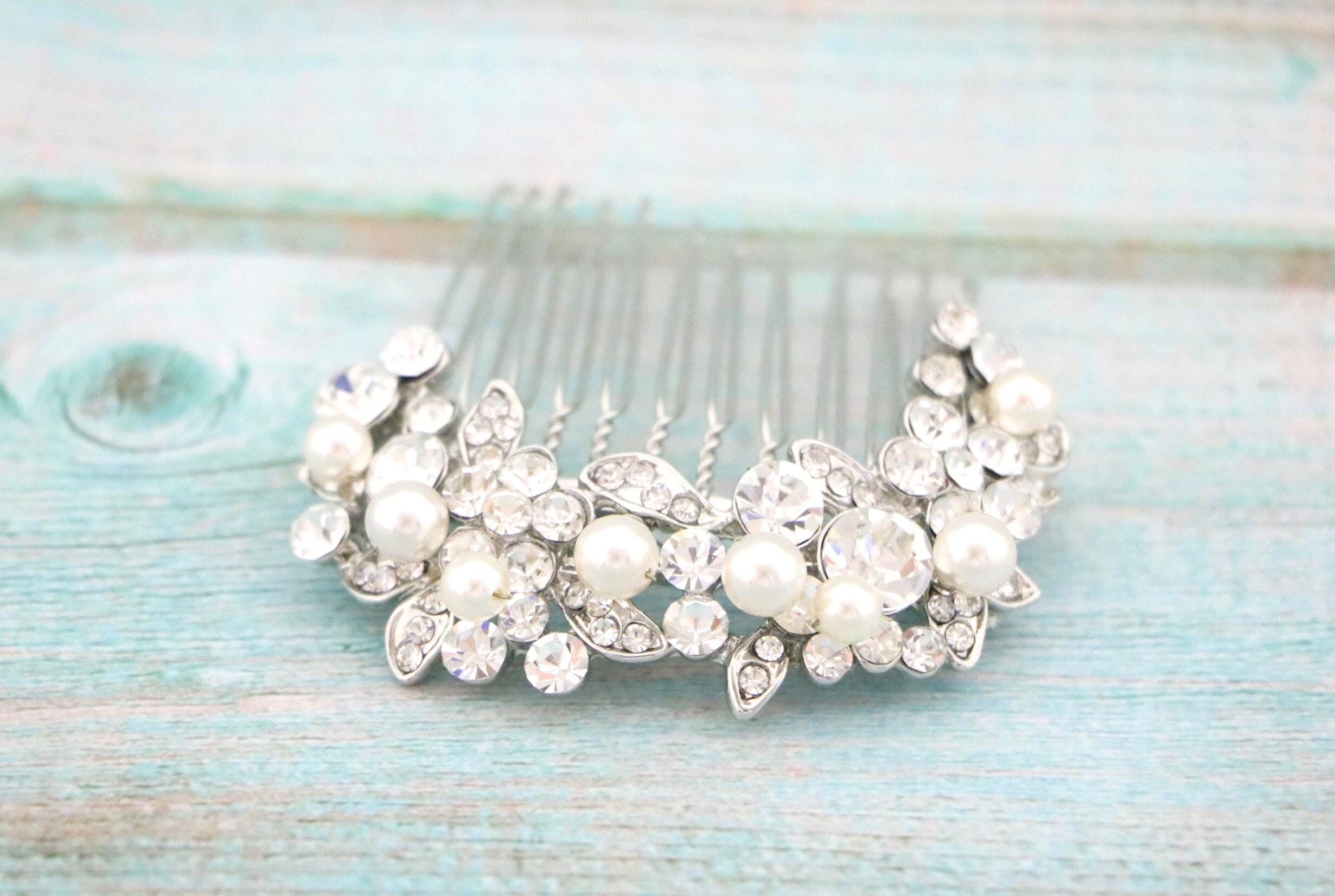 Crystal & Pearl Bridal Comb, Silver Wedding Comb, Freshwater Pearl Wedding Accessory, Rhinestone Comb, Crystal Wedding Comb