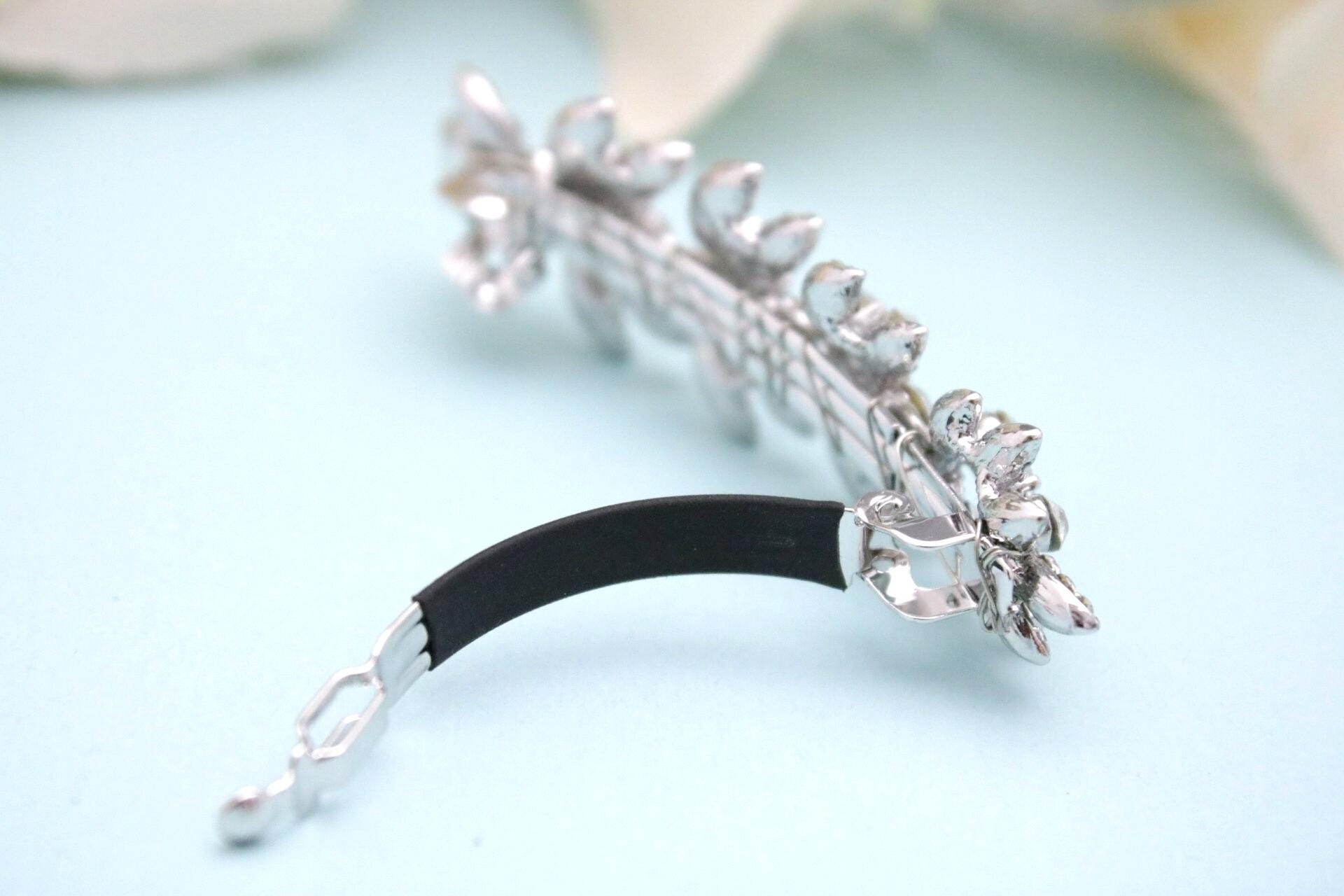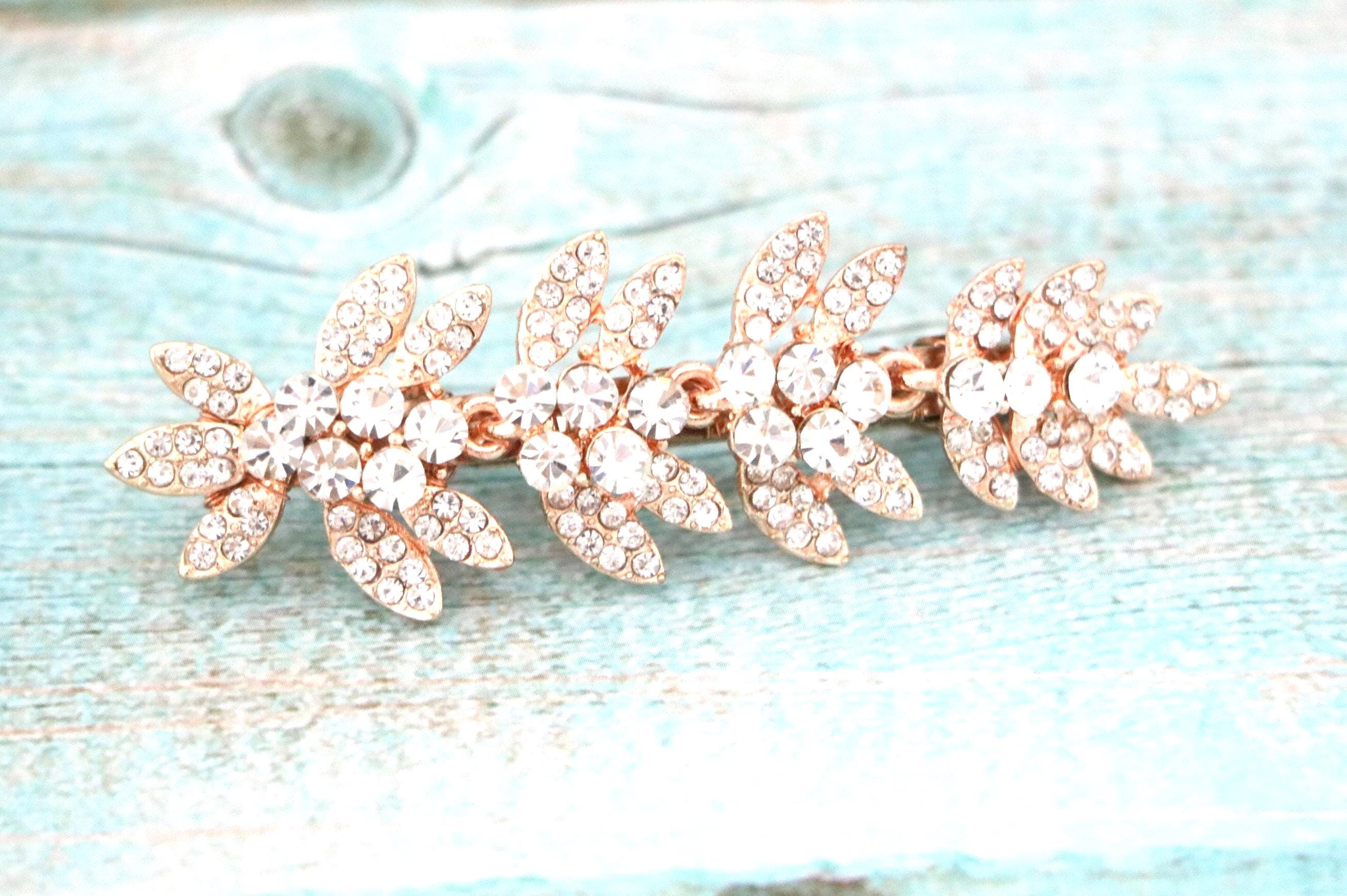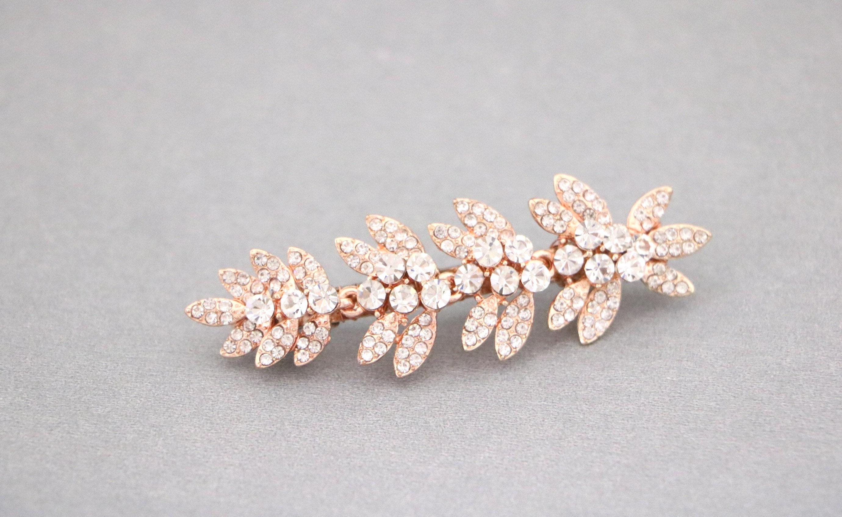 This beautiful Clear rhinestone Hair Barrette is a perfect compliment for the wedding party and can easily fit into any hair style. The brooch is measured approximately 3 X 1 inches.