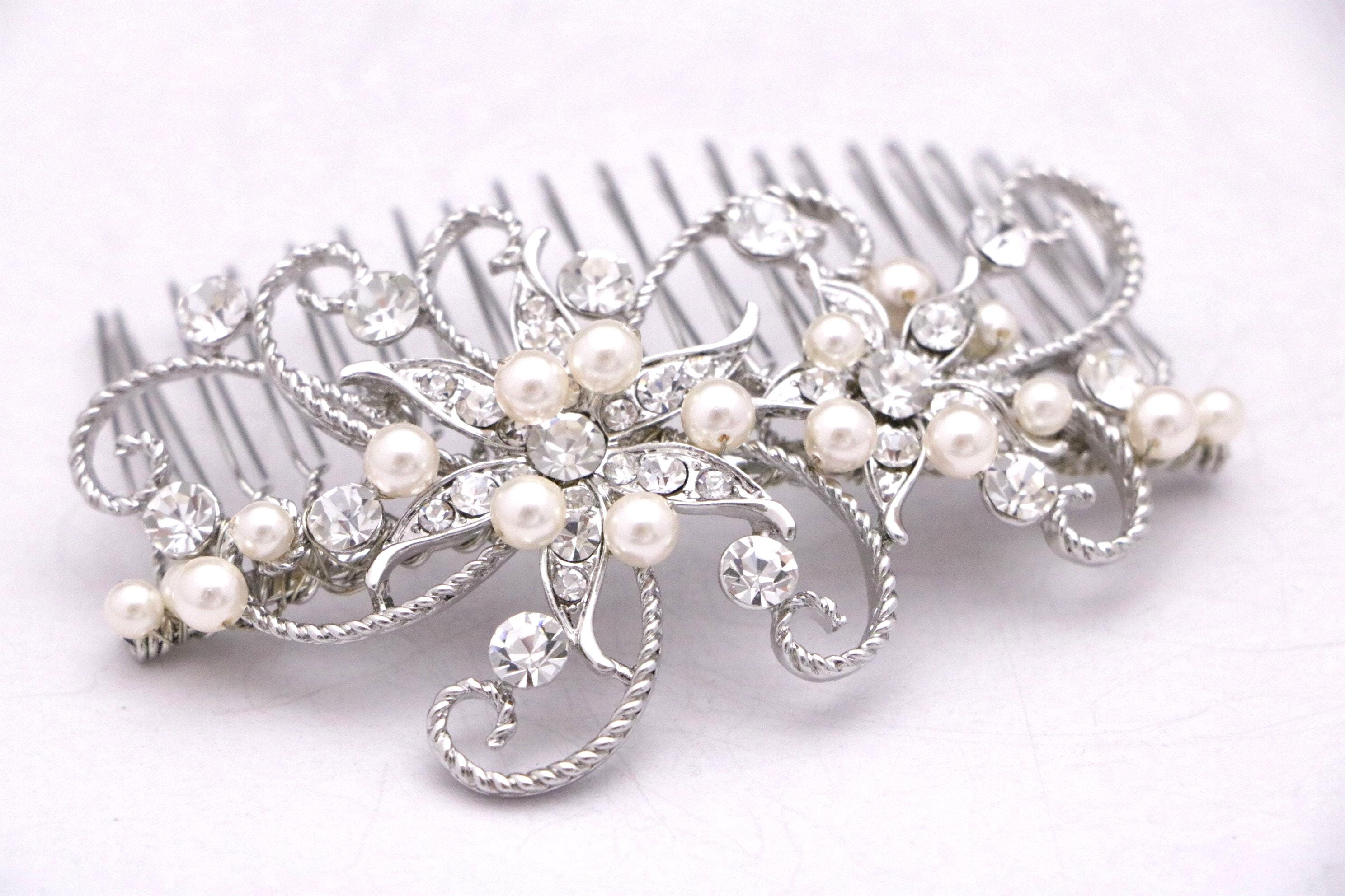 Floral Crystal & Pearl Comb, Swarovski Pearl Wedding Comb, Bridal Hair Comb, Floral Hair Comb, Pearl Hair Comb, Floral Hair Comb