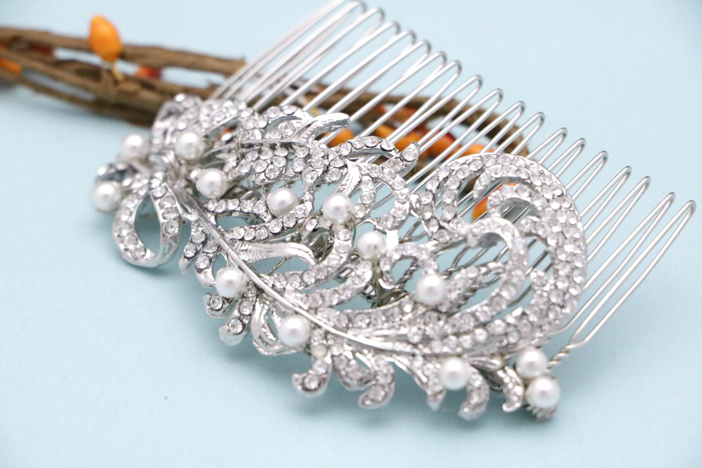 Wedding comb, bridal headpiece, bridal hair comb, pearls hair comb, crystal comb, hair accessories, bridesmaid hair comb, pearl comb