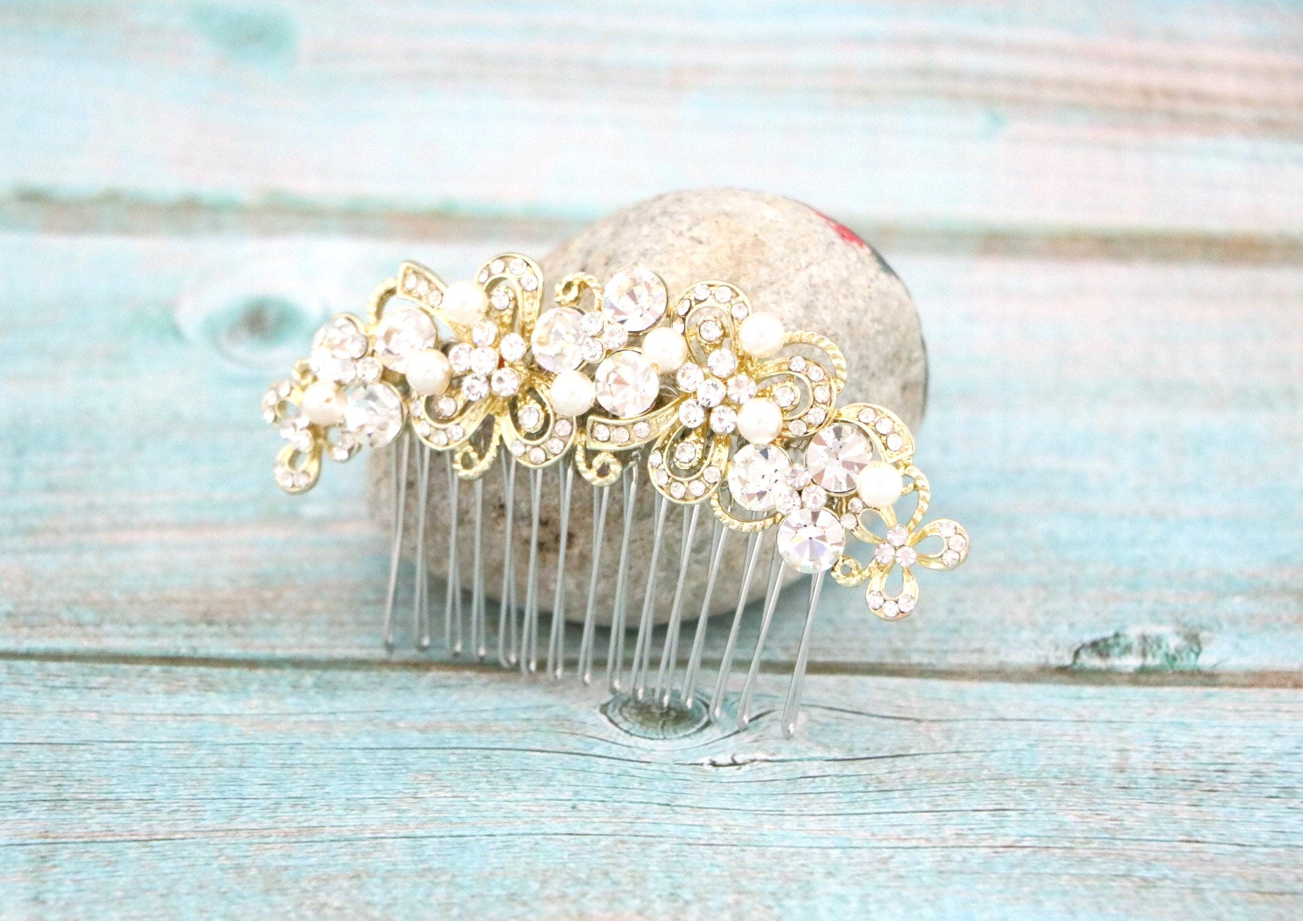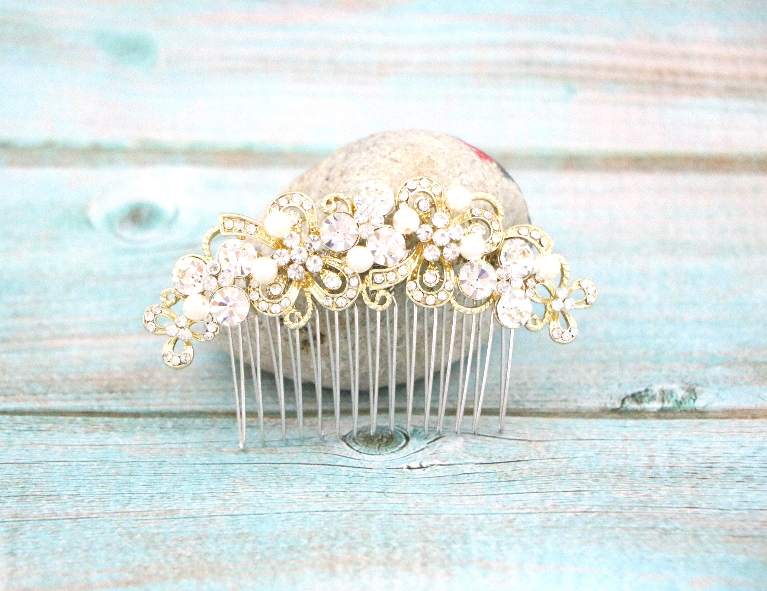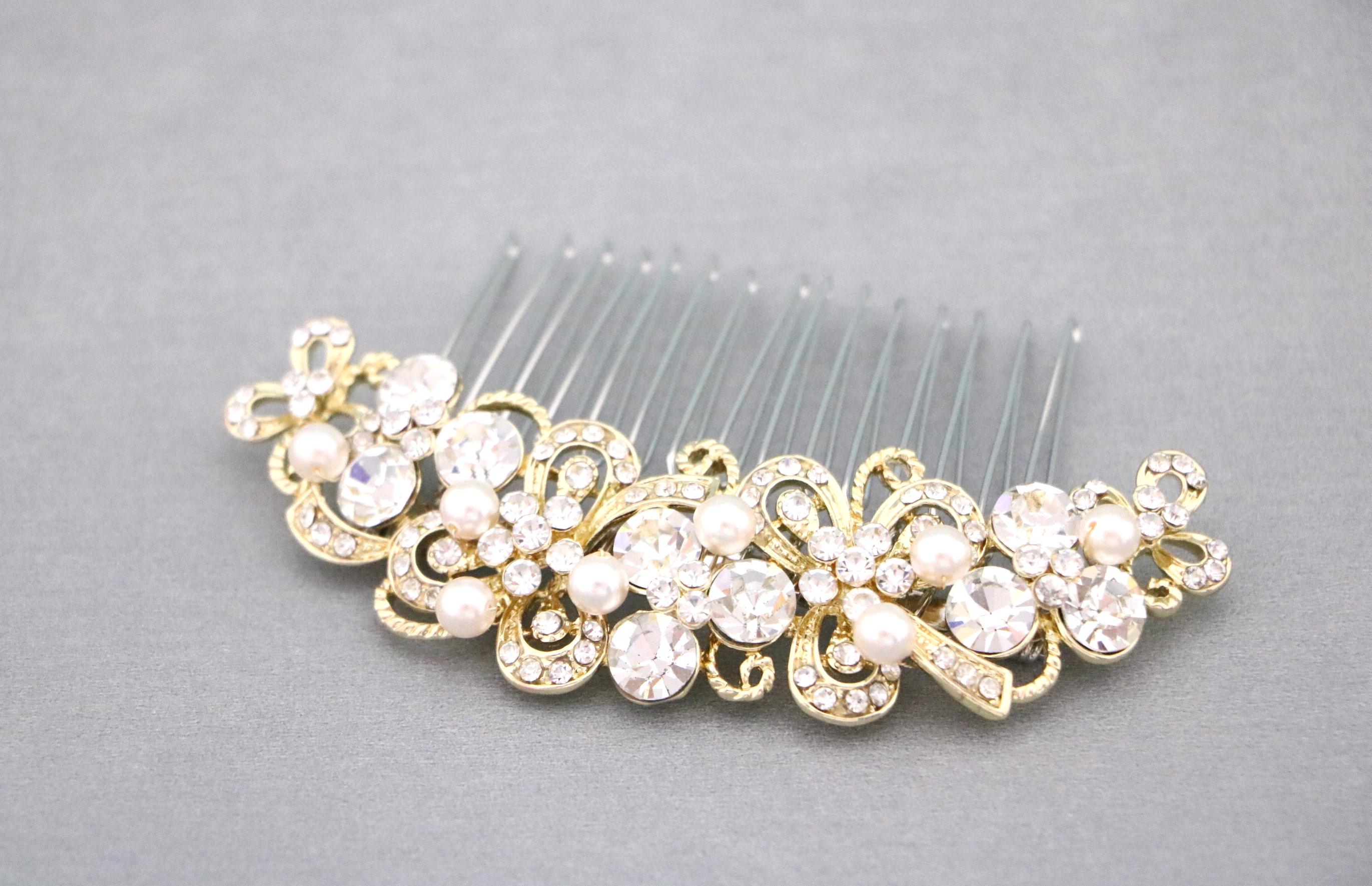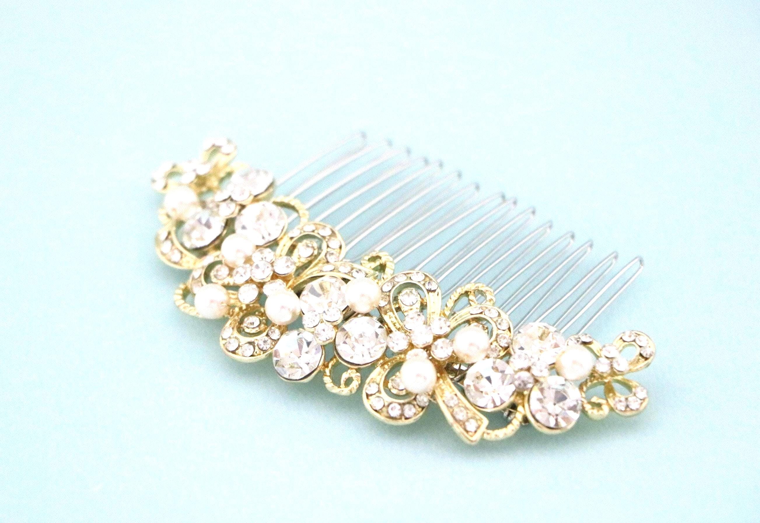 Hair comb : The rhinestone part measures approximately 4 X 1 inches.