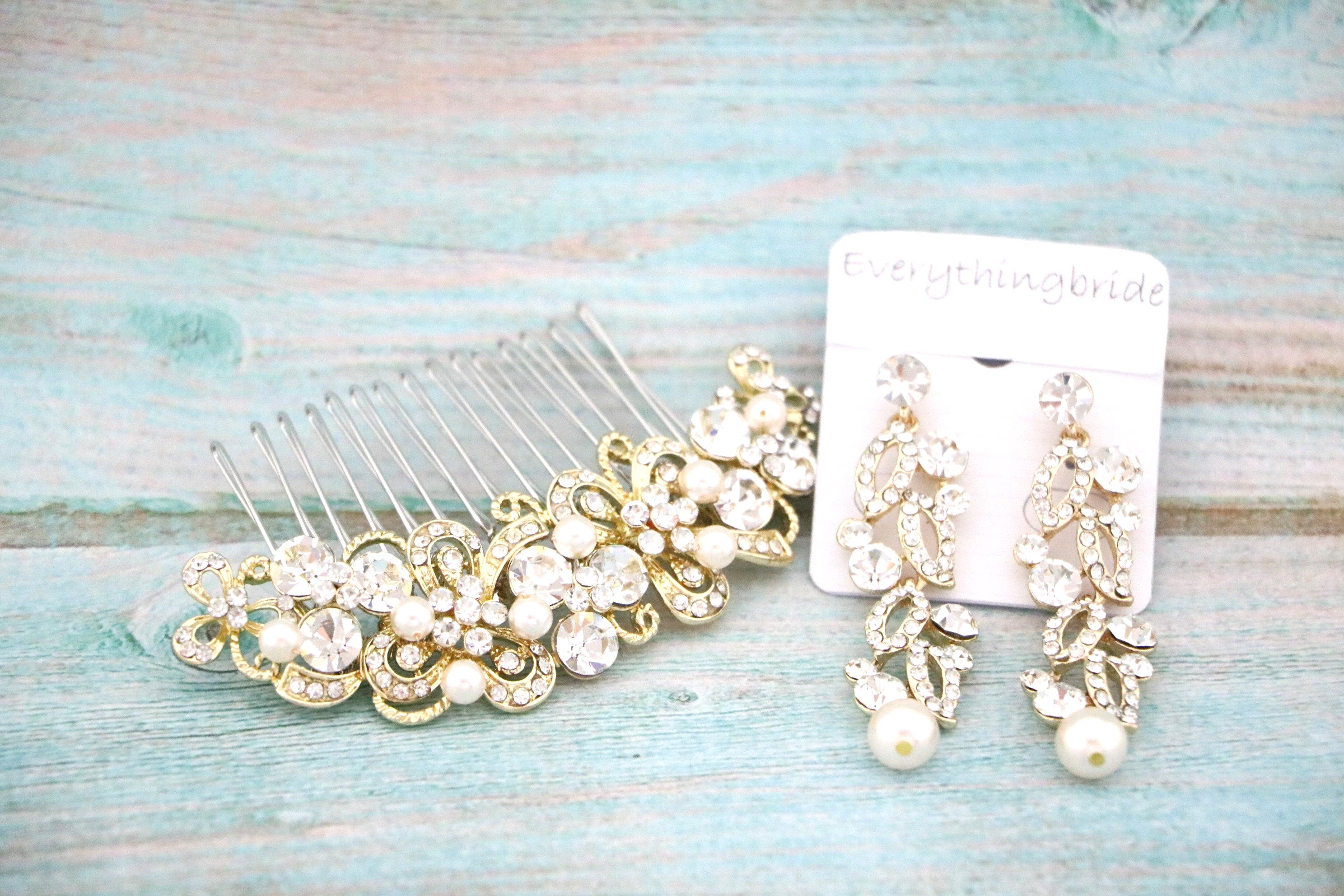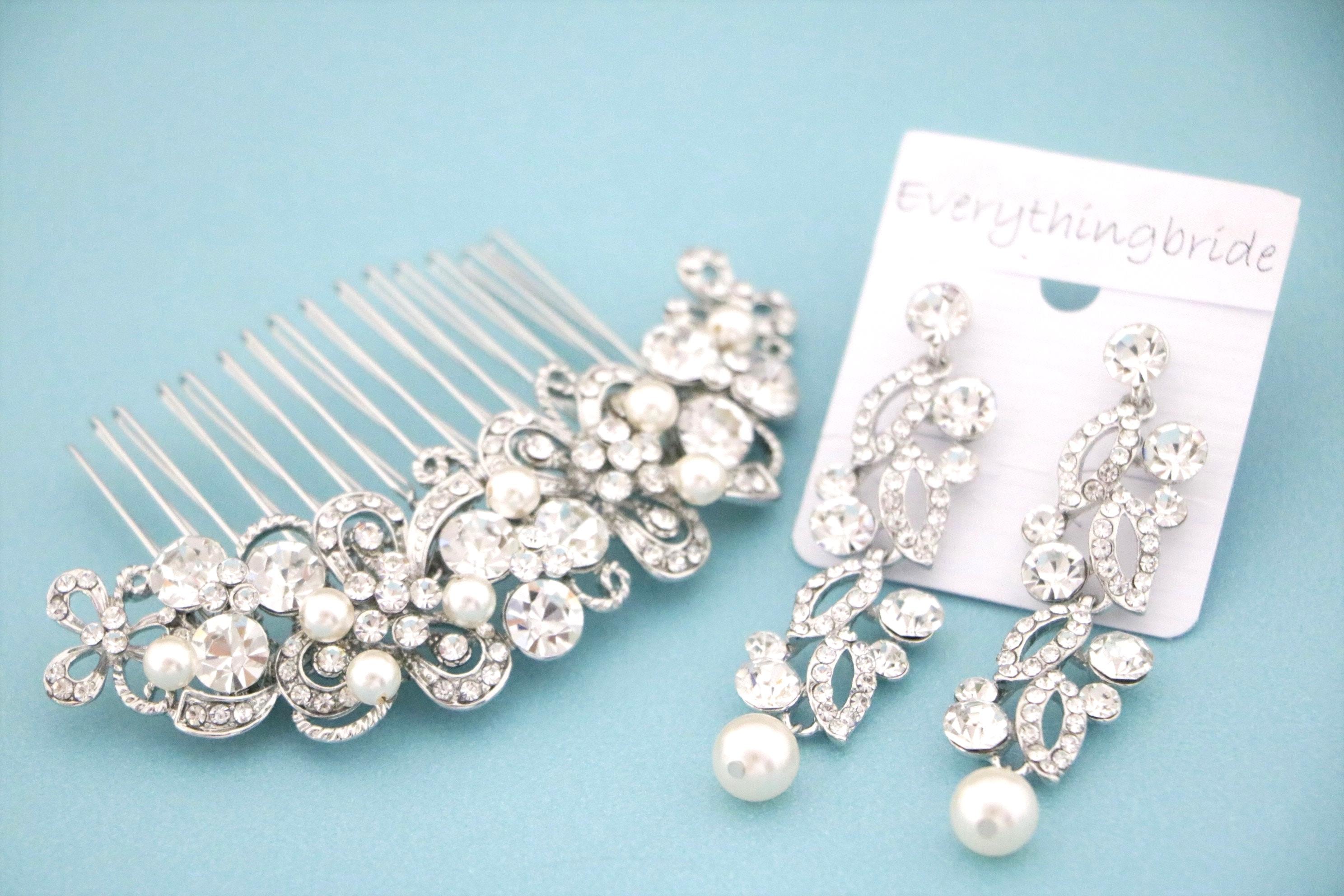 bridal hair comb and silver earrings set, wedding hair piece, bridal hair piece, bridesmaid gifts, bridesmaid jewelry set, wedding hair comb