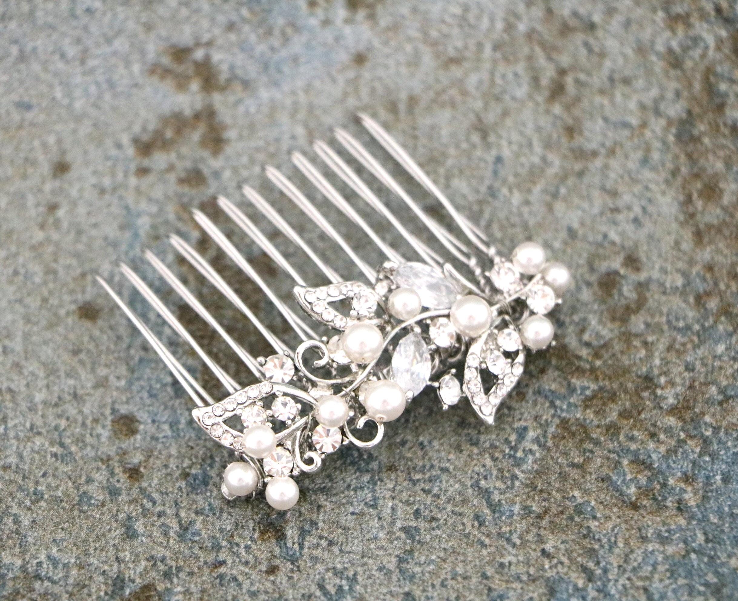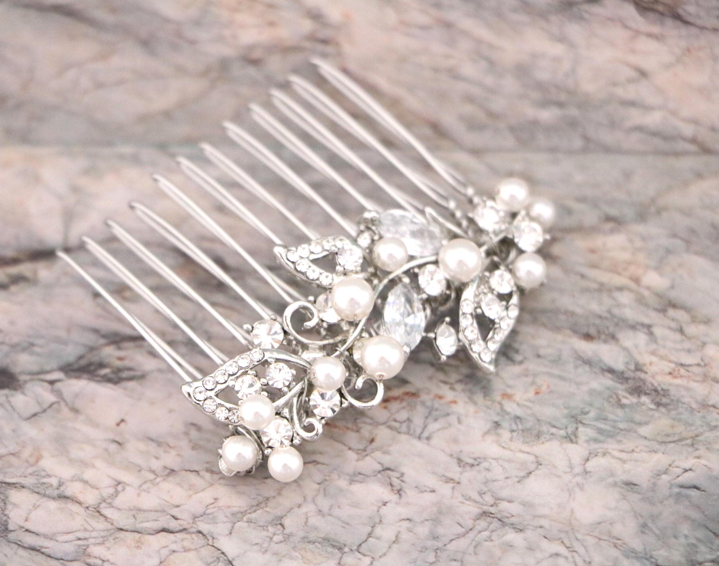 Pearl Wedding Comb, small wedding hair comb, floral crystal rhinestone hair comb, Amanda Crystal and Pearl Wedding Comb