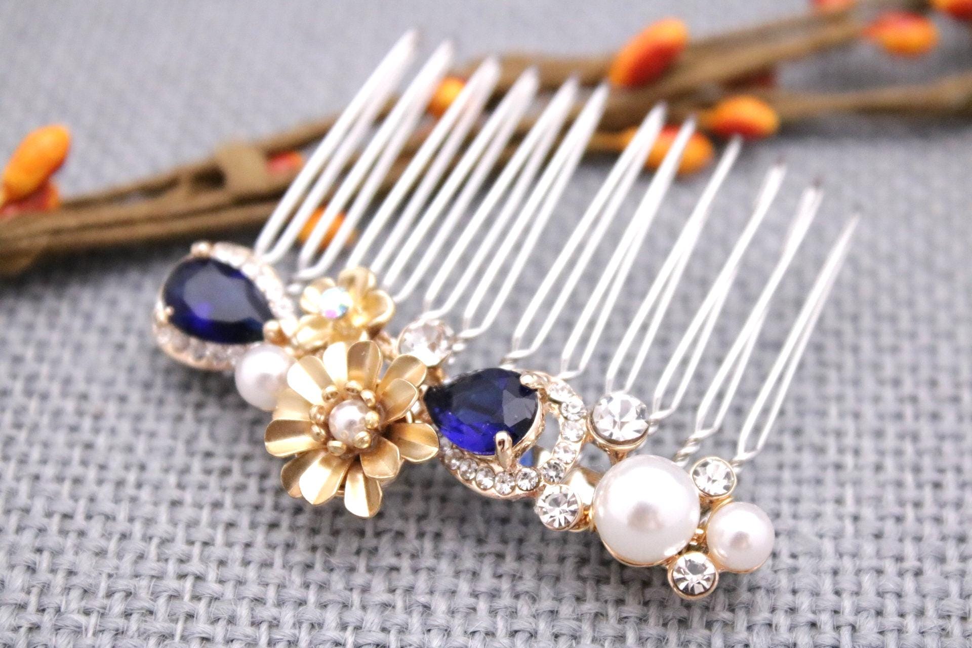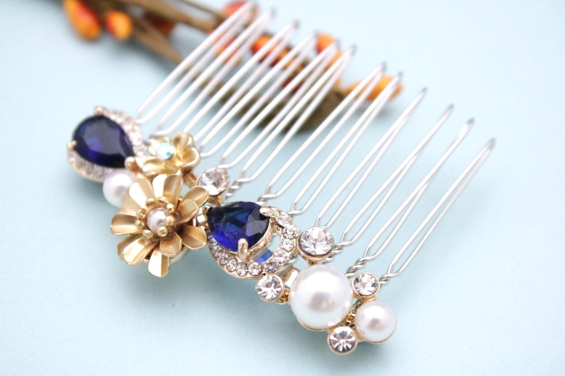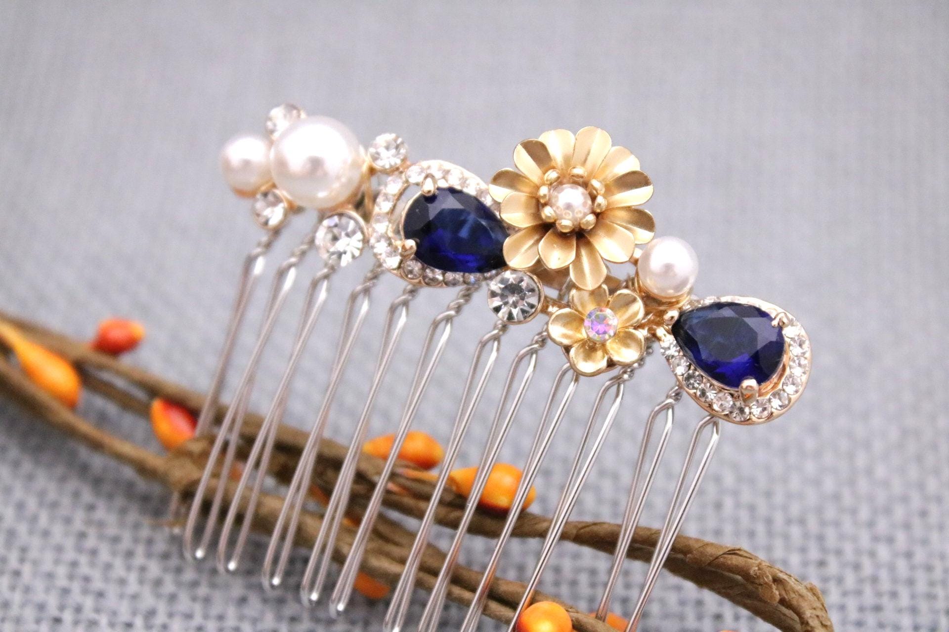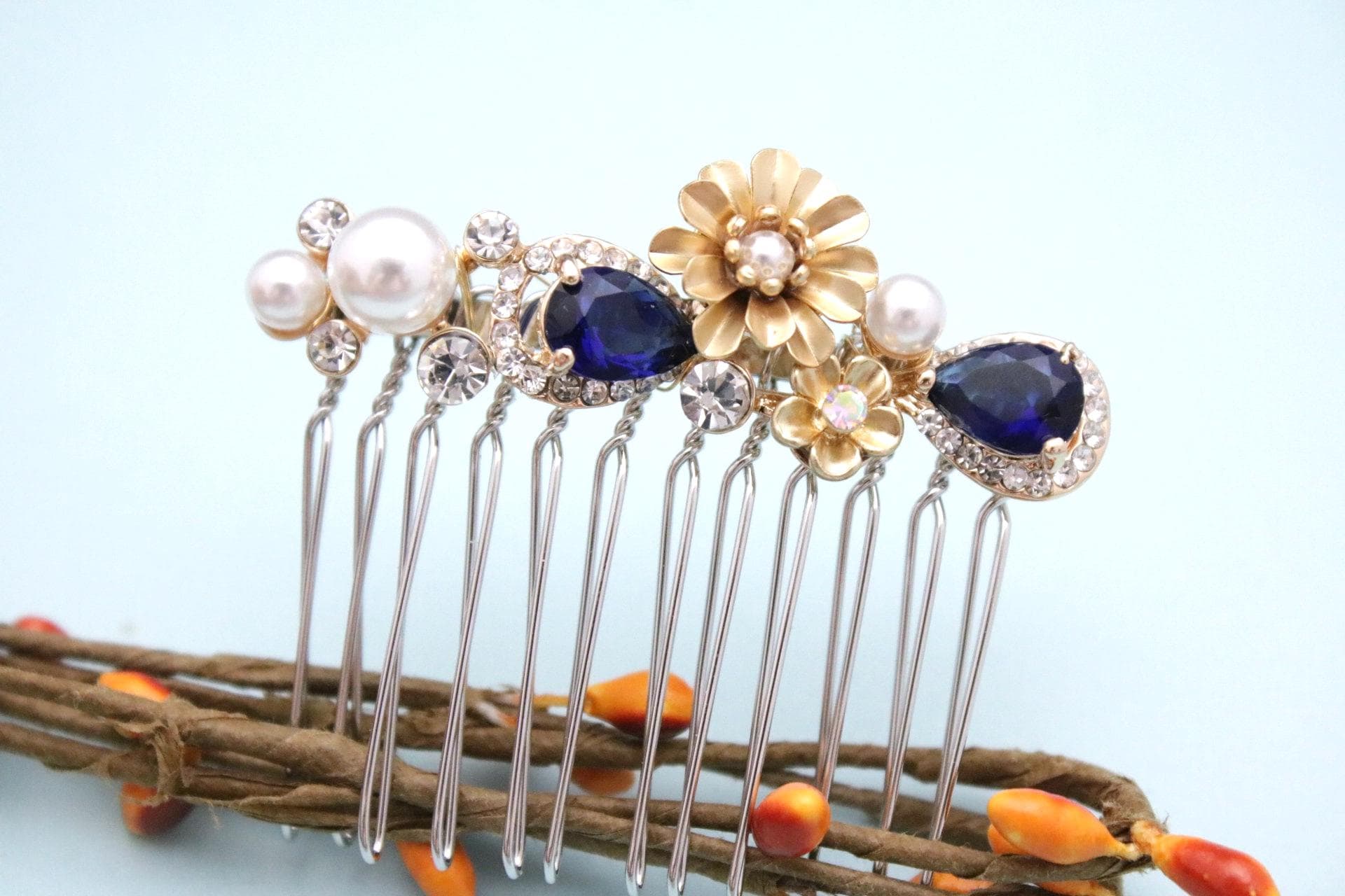 Navy Rhinestone Hair Comb Clip Barrette Navy Rhinestone Hair Piece ,Blue Crystal Rhinestone Hair Comb