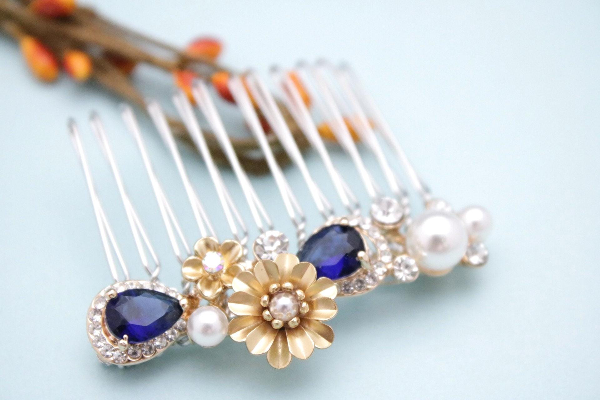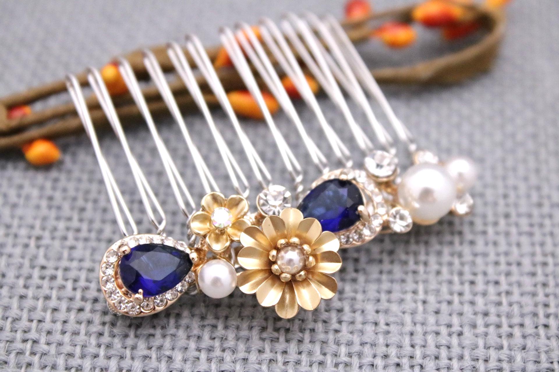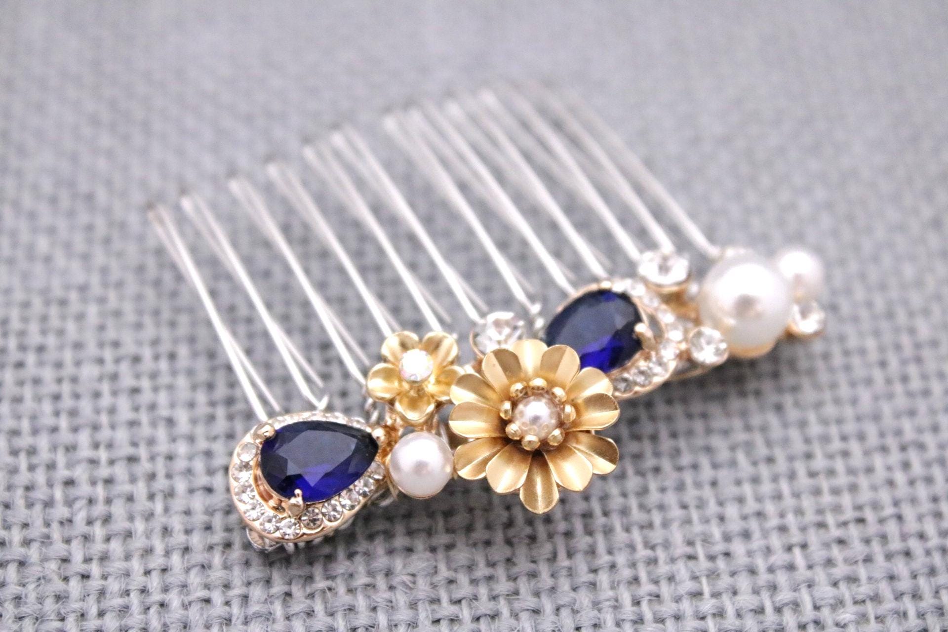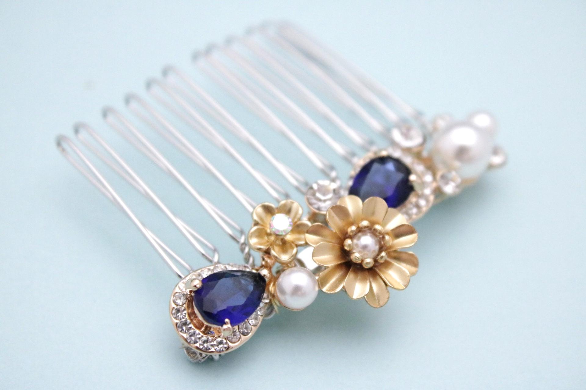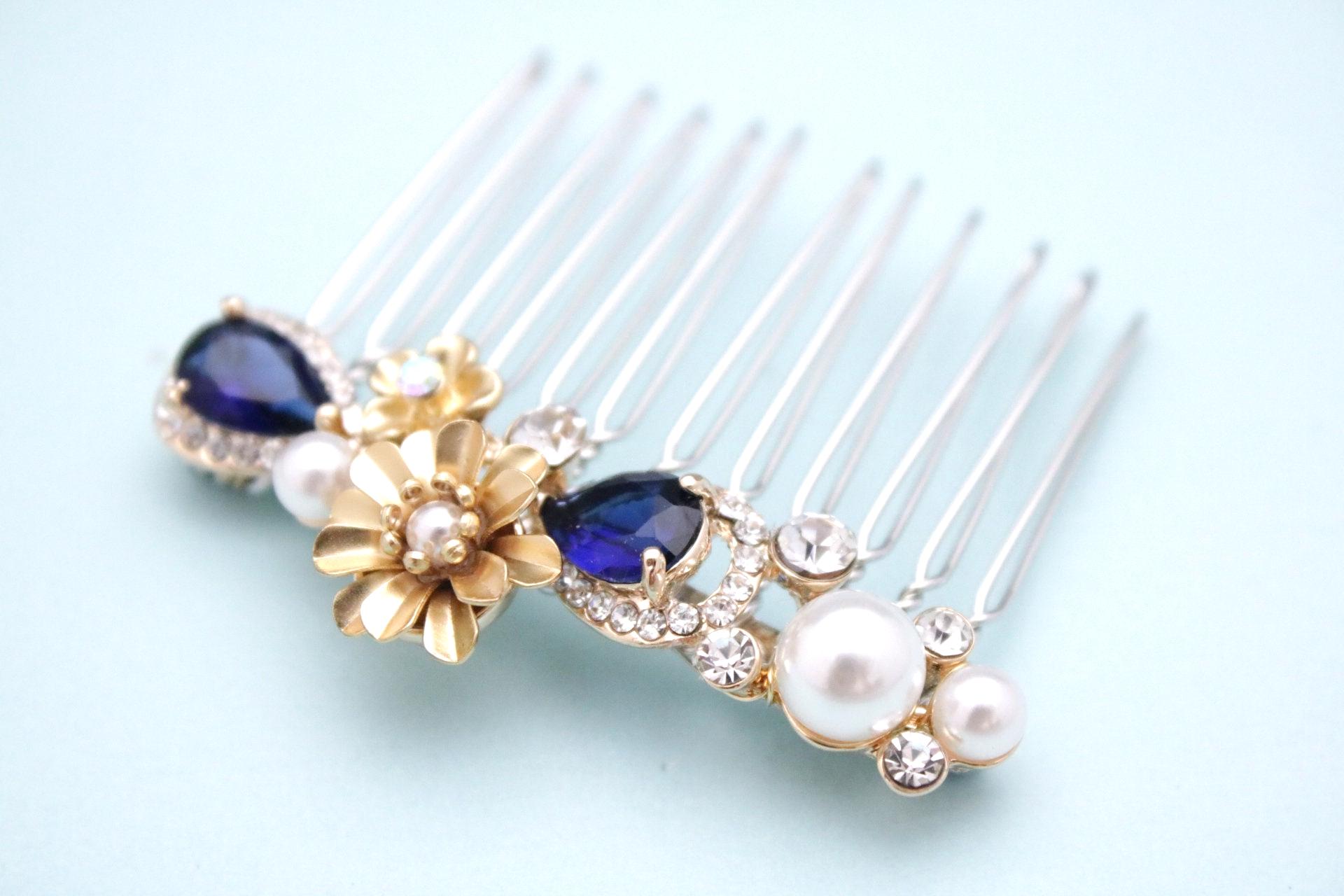 Navy Rhinestone Hair Comb Clip Barrette Navy Rhinestone Hair Piece ,Blue Crystal Rhinestone Hair Comb
