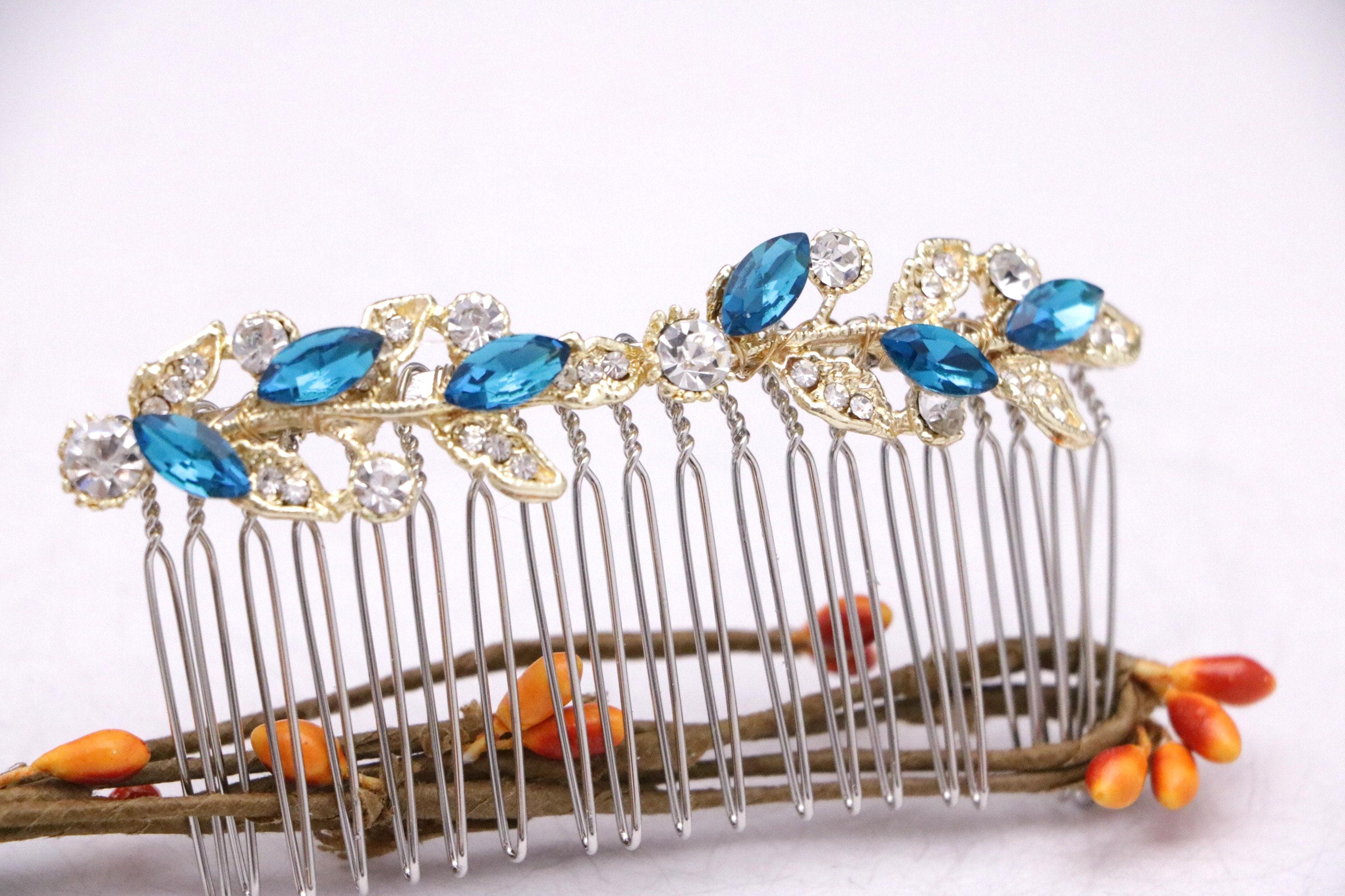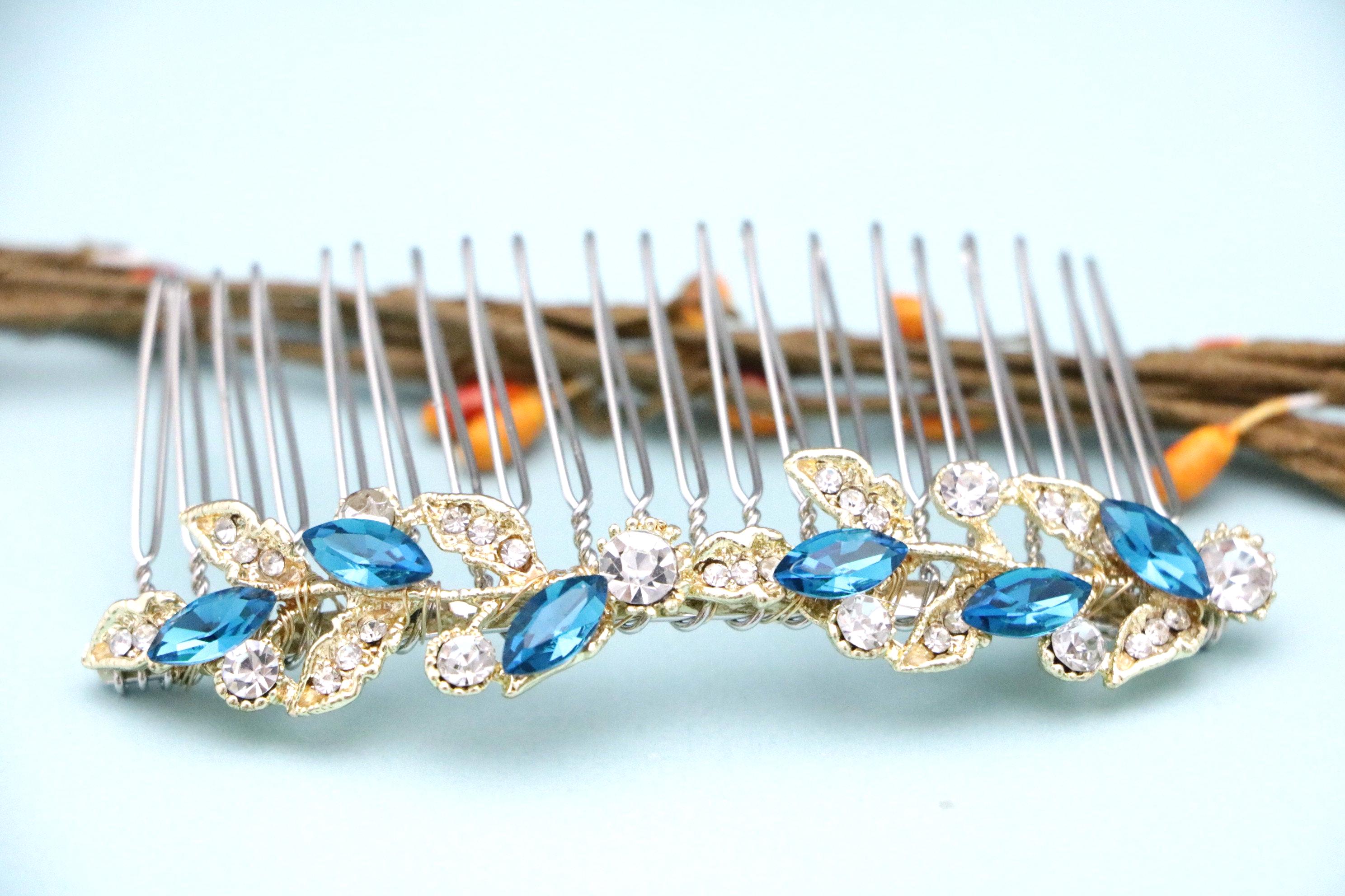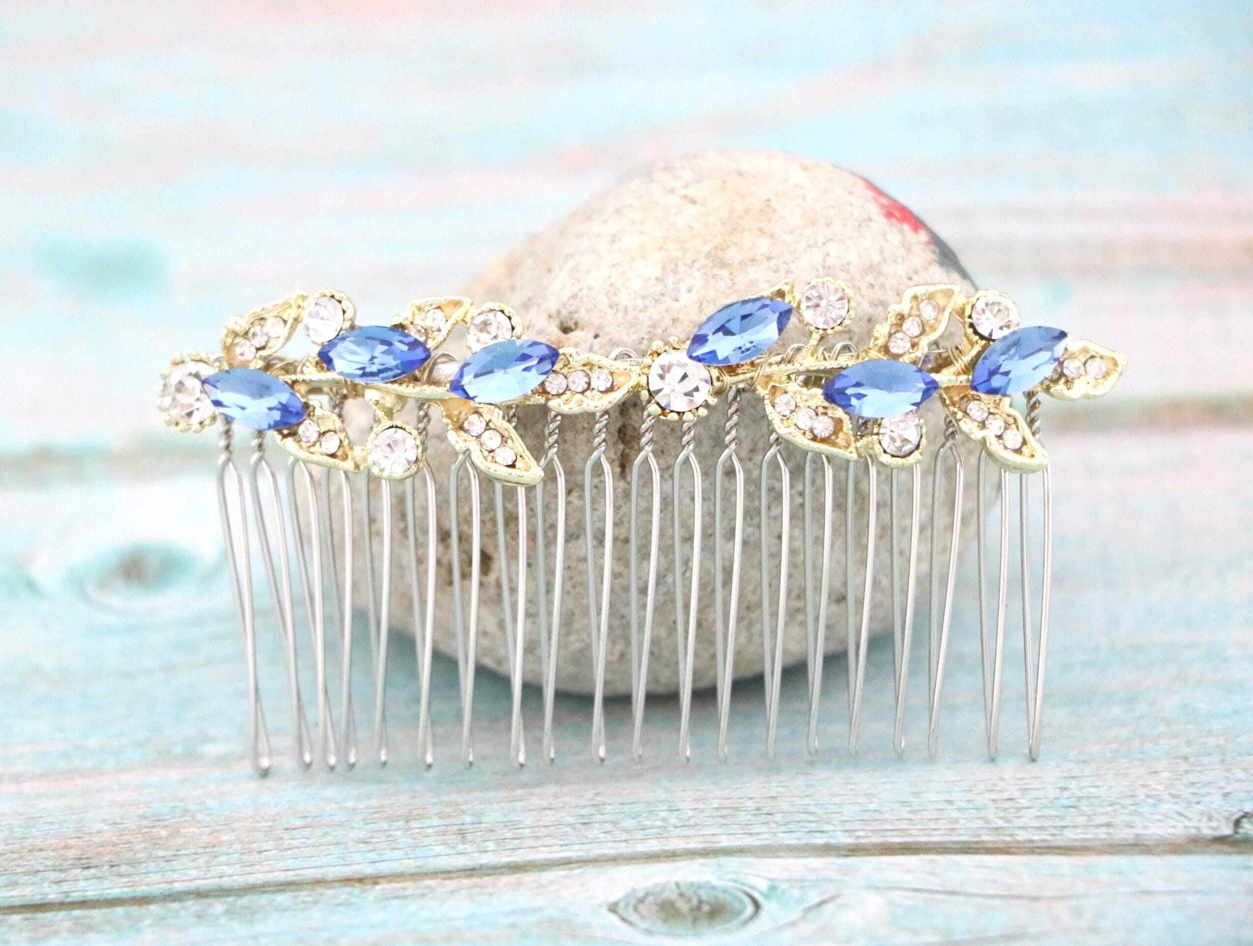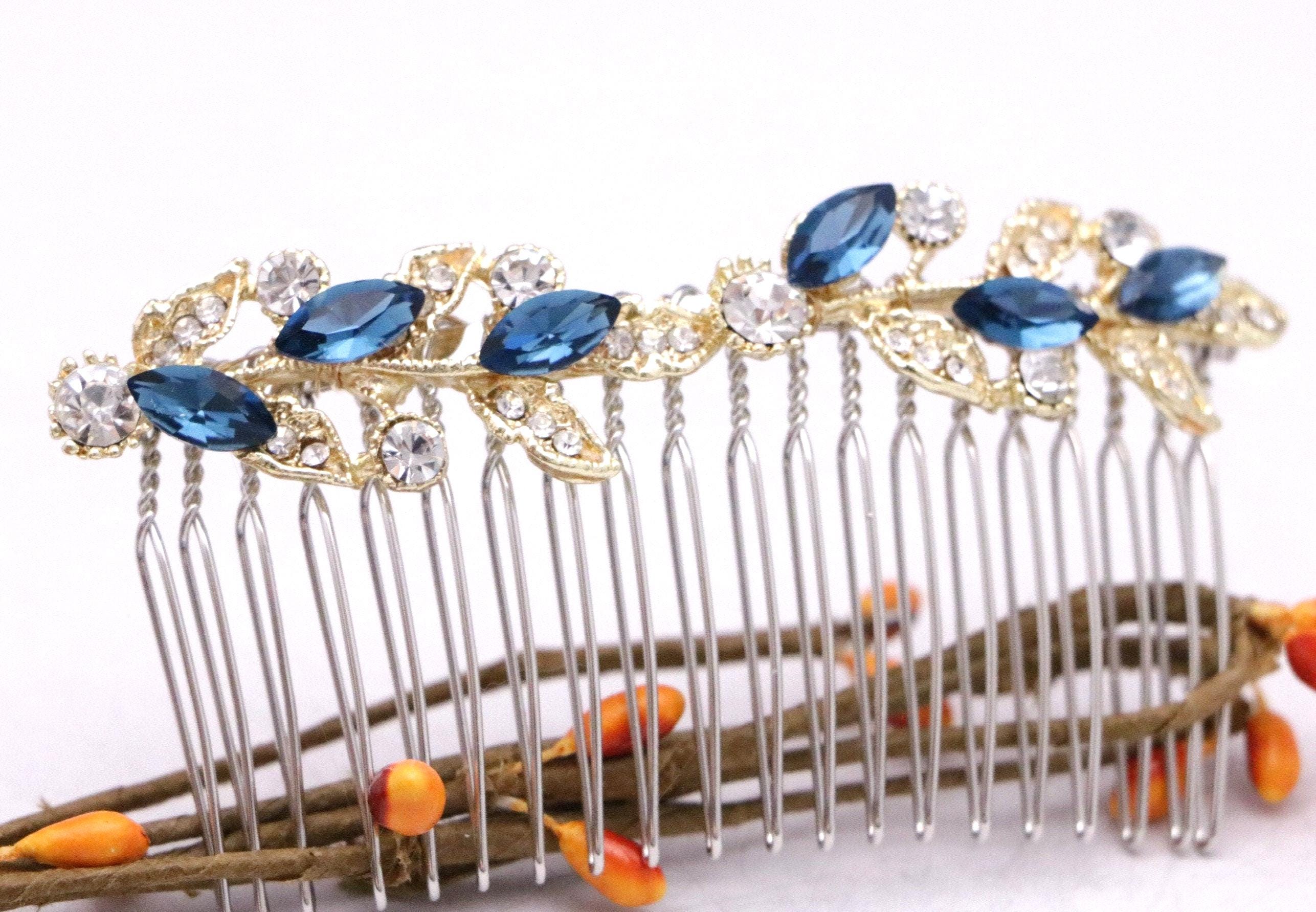 Blue Bridal Comb, Rhinestone Wedding Hair Comb, Vintage Bride Hair Accessory, Navy Rhinestone Comb, Bridal Hair Piece, Wedding Headpiece