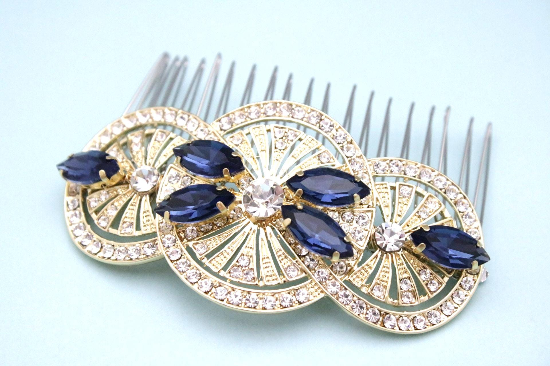 This beautiful Clear rhinestone and Montana Crystal hair comb is a perfect compliment for the wedding party and can easily fit into any hair style. The Rhinestone part measured approximately 3.25 X 1.25 inches.